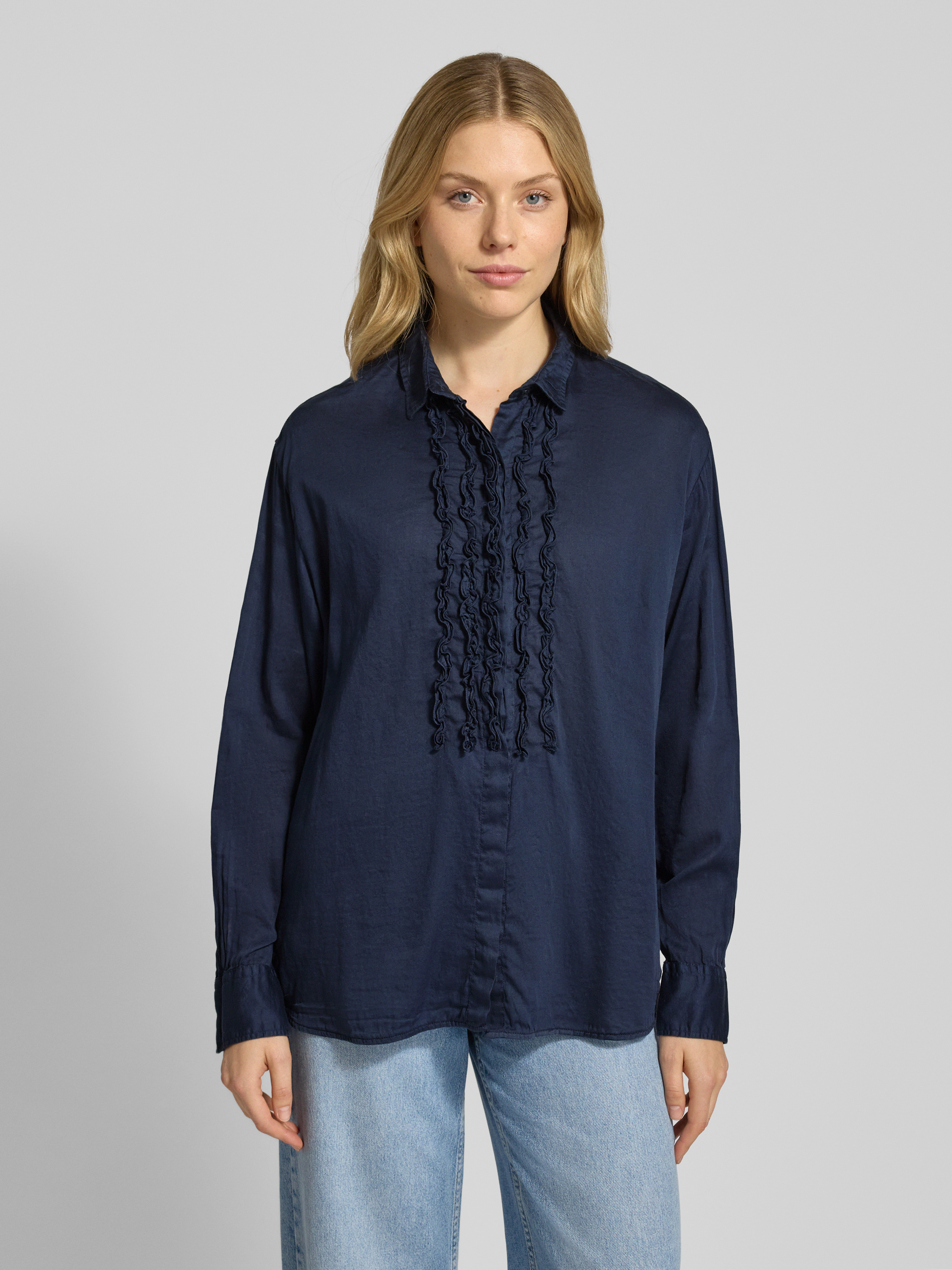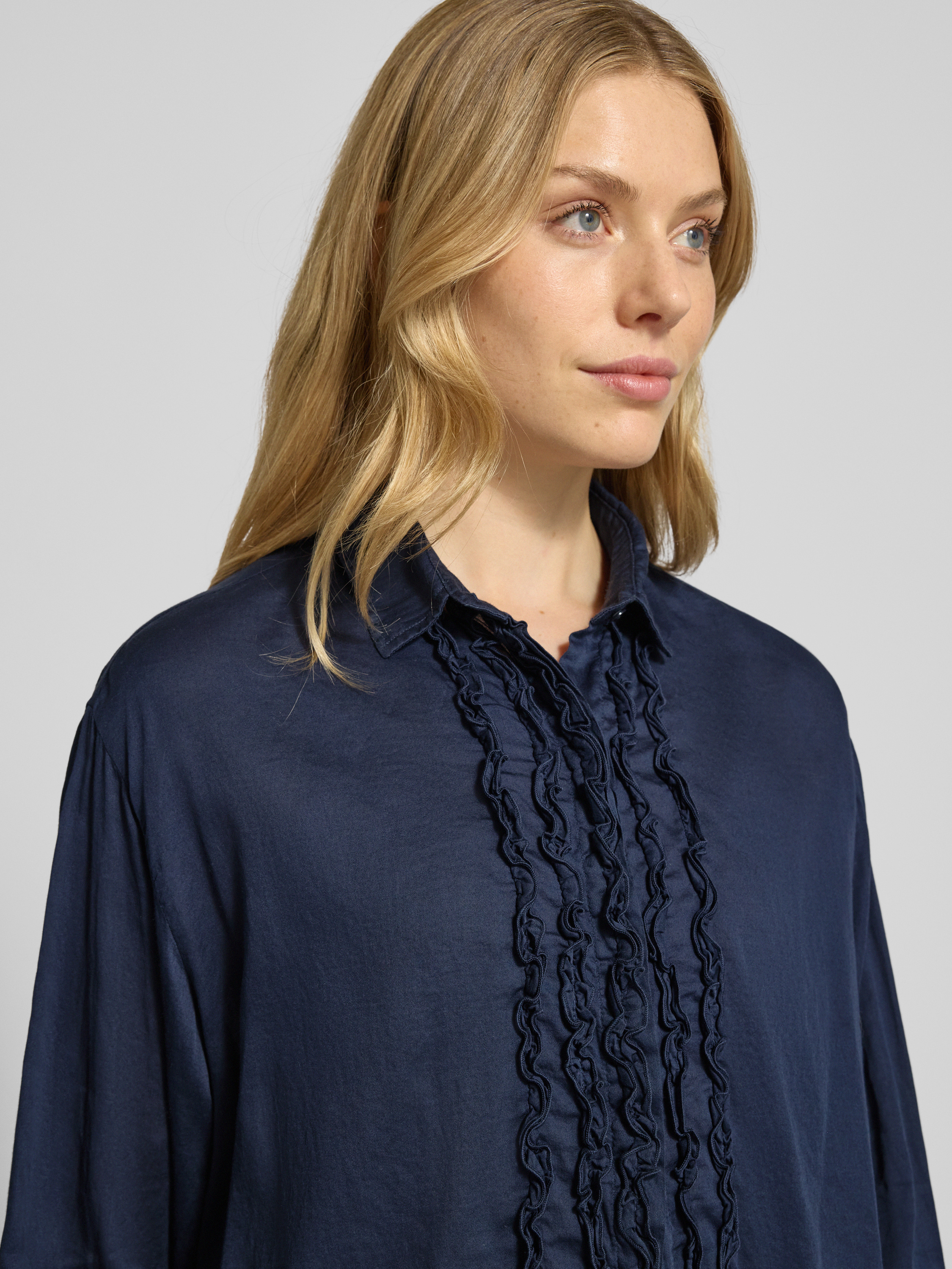 Die Damen Hemdbluse DANA von 0039 Italy besteht aus reiner Baumwolle und liegt angenehm leicht auf der Haut. Durch den lockeren Schnitt und den klassischen Hemdblusenkragen entsteht ein entspanntes Tragegefühl, das vielseitig kombiniert werden kann. Dezente Details wie der Zierbesatz runden den Look stimmig ab.