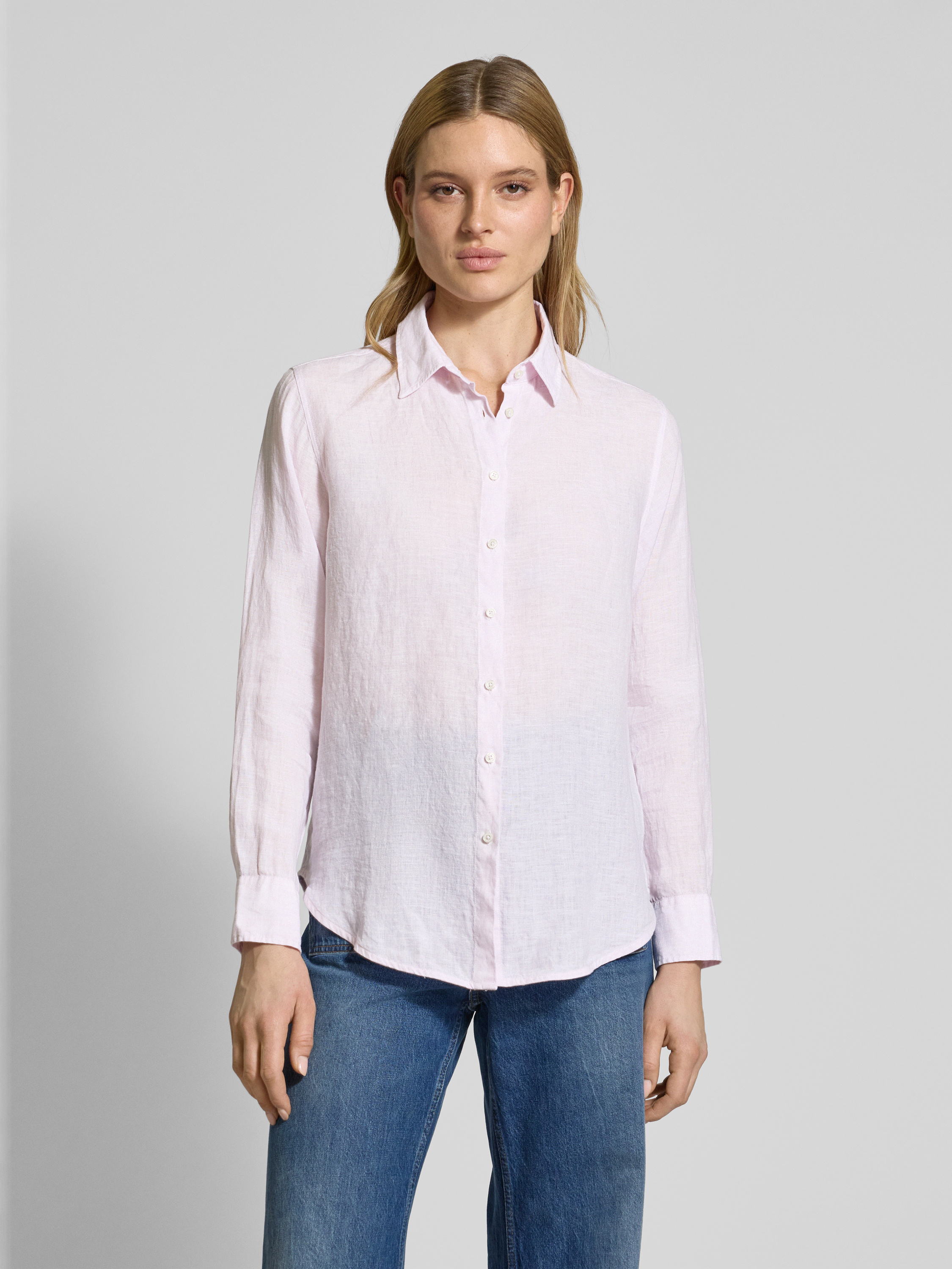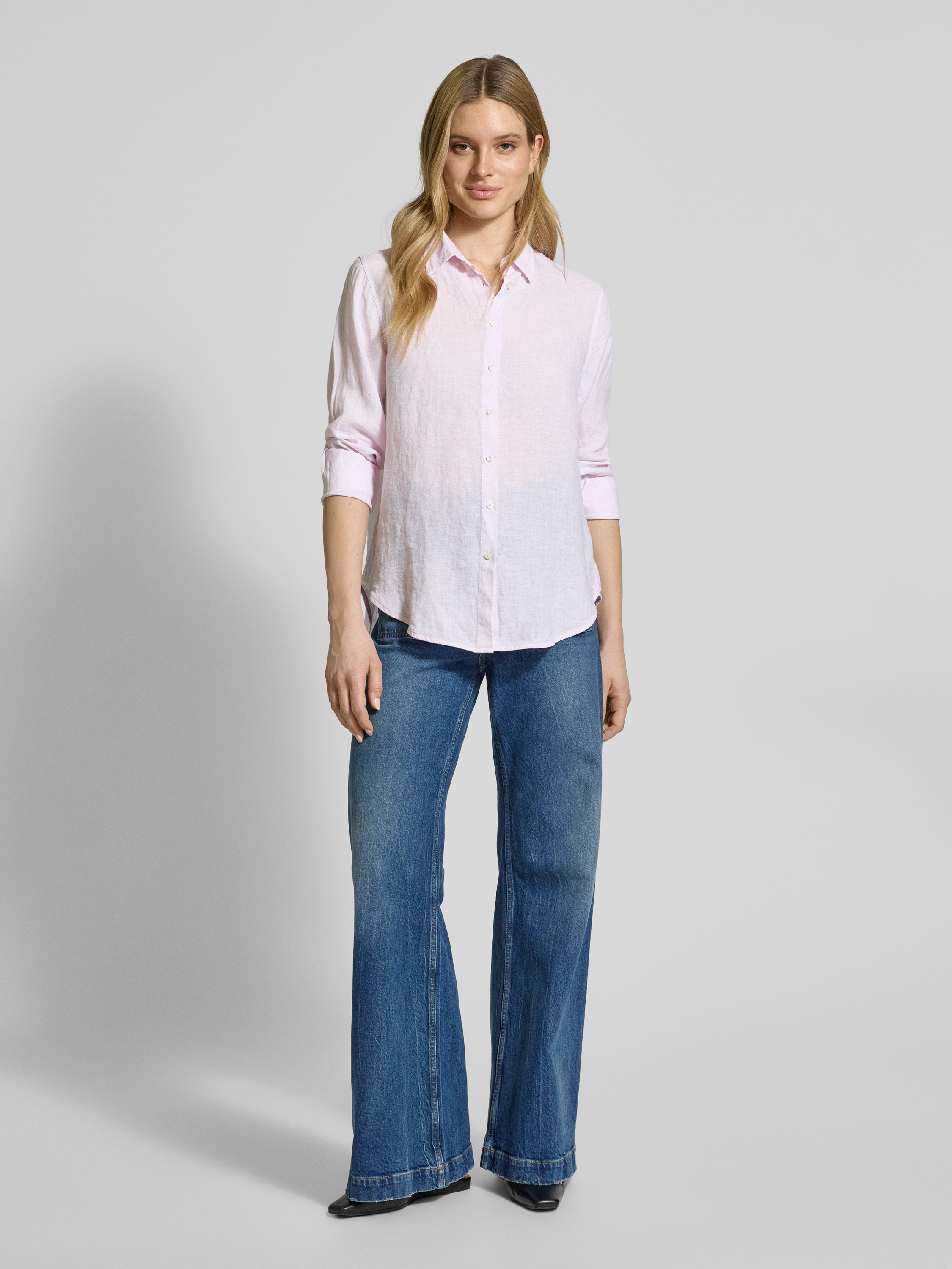 0039 ItalyRegular Fit Leinenhemdbluse mit durchgehender Knopfleiste in hellrosa