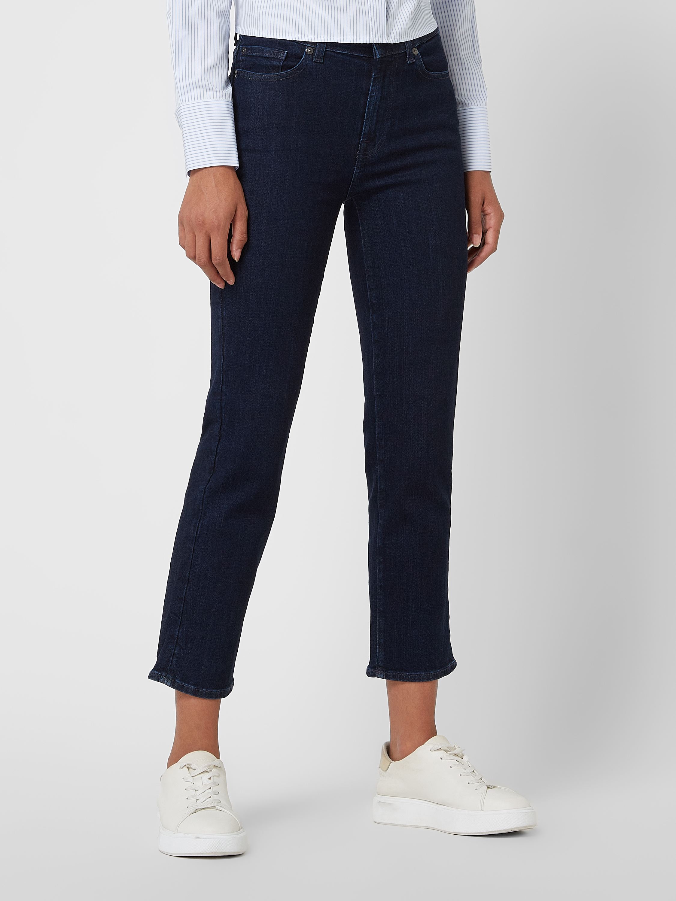 Die Straight Fit Jeans mit Stretch-Anteil Modell 'Soho' von 7 For All Mankind vereint Komfort und Stil durch einen Baumwoll-Elasthan-Mix. Der gerade Schnitt und das verkürzte Bein sorgen für eine moderne Silhouette, während das 5-Pocket-Design funktionale Details bietet. Ideal für vielseitige Outfits im Alltag.