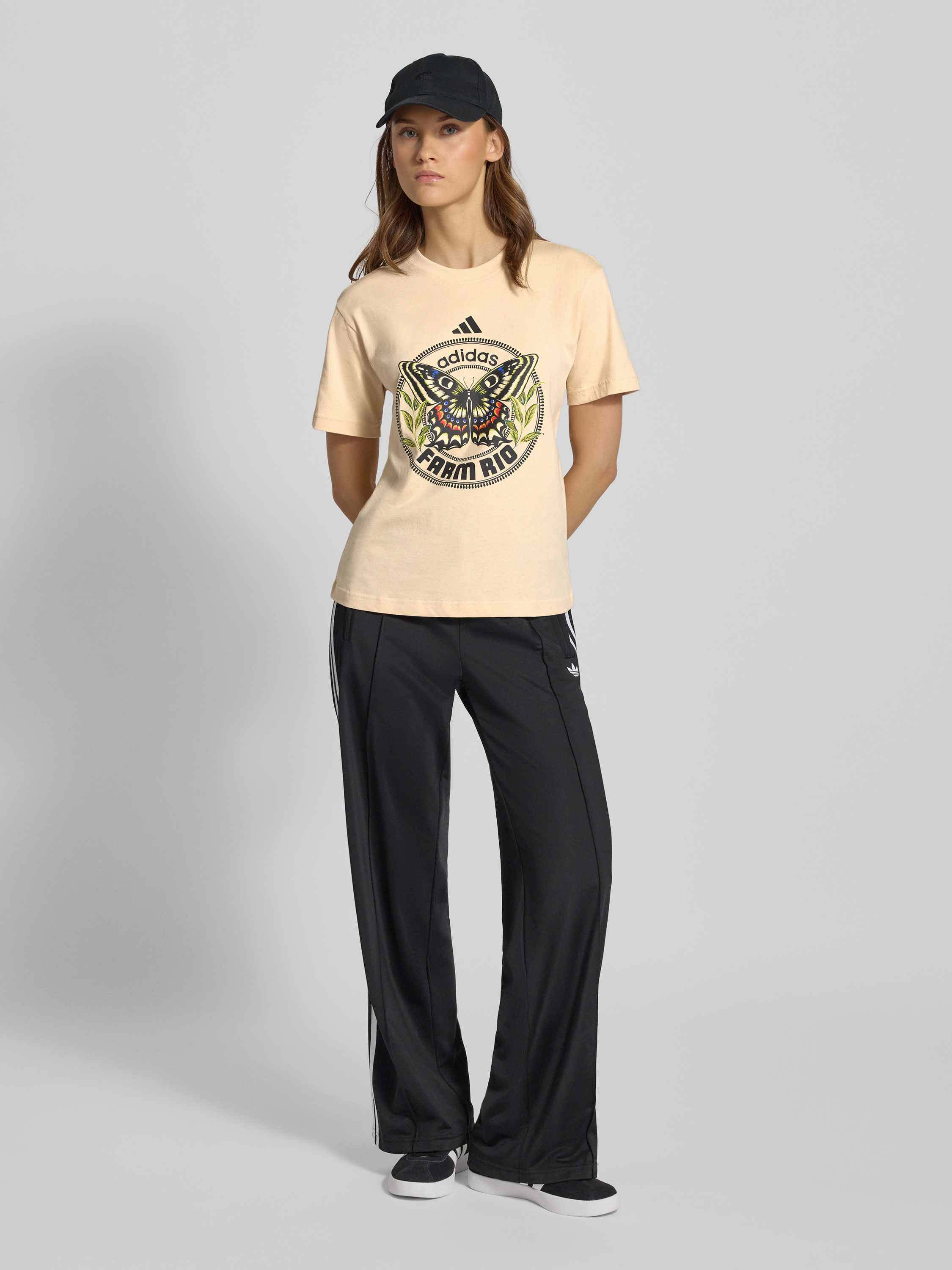 adidas SportswearT-Shirt mit Motiv-Print und Rundhalsausschnitt in beige