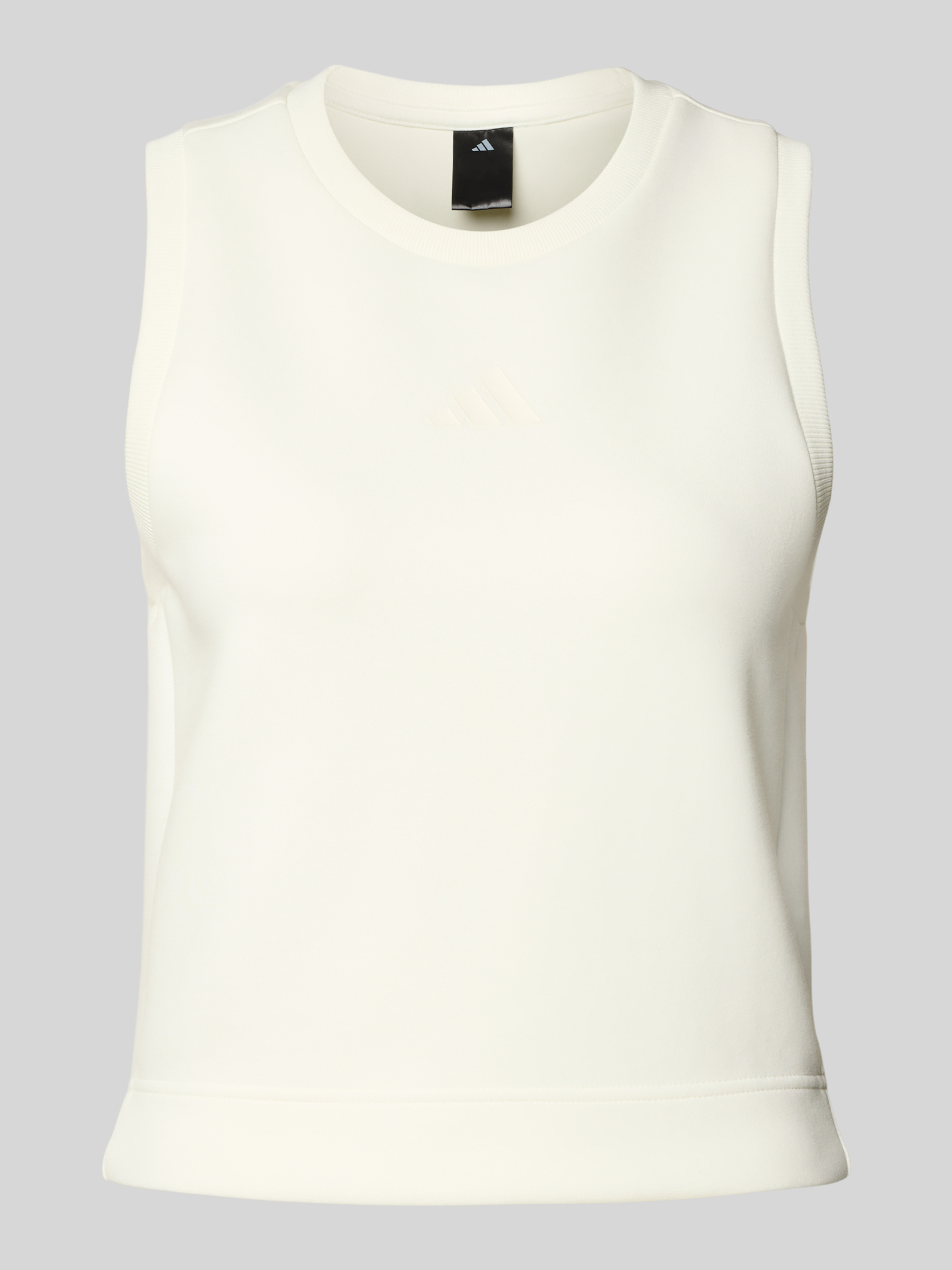 adidas SportswearTop mit Label-Print und Rundhalsausschnitt in offwhite