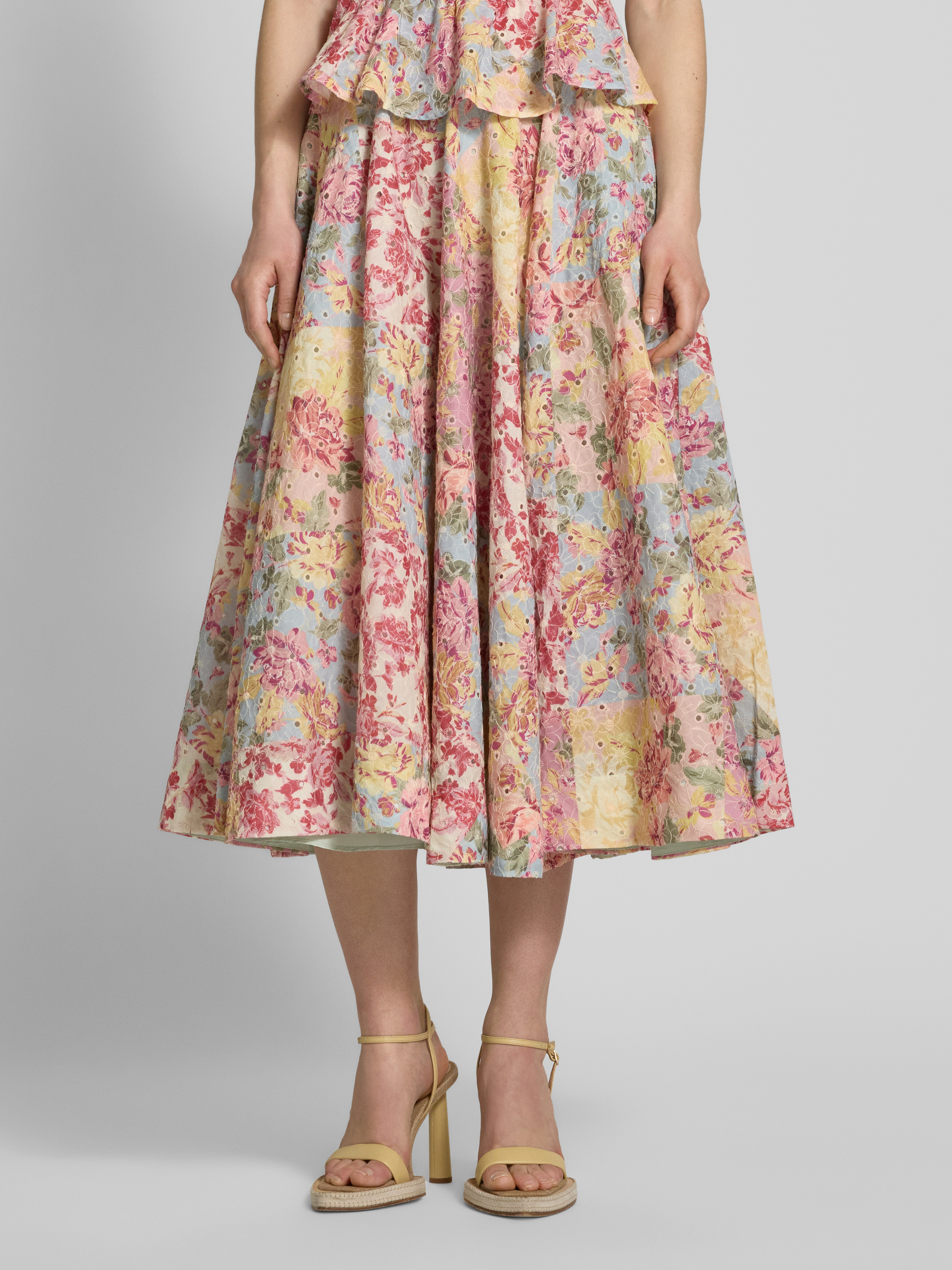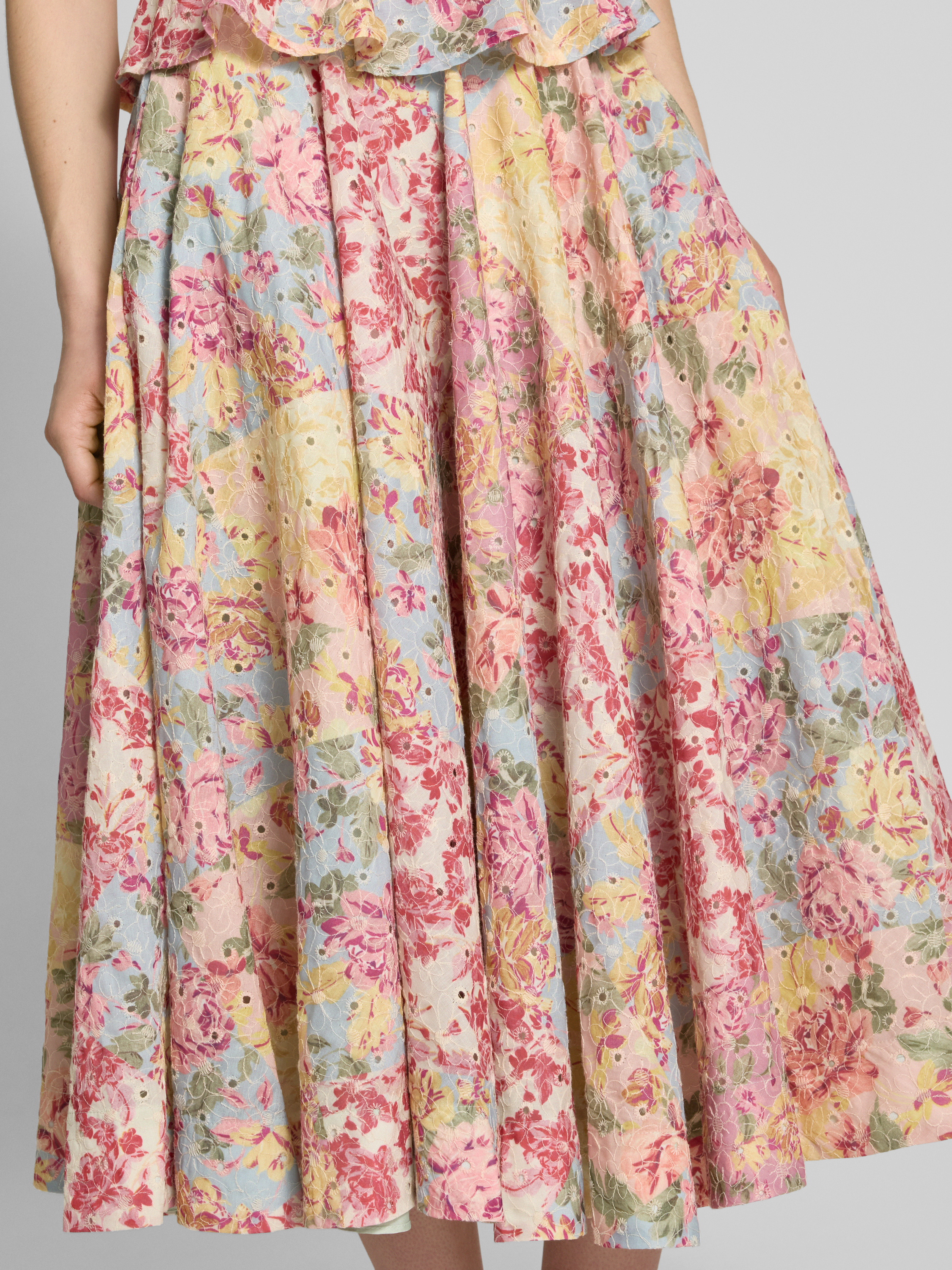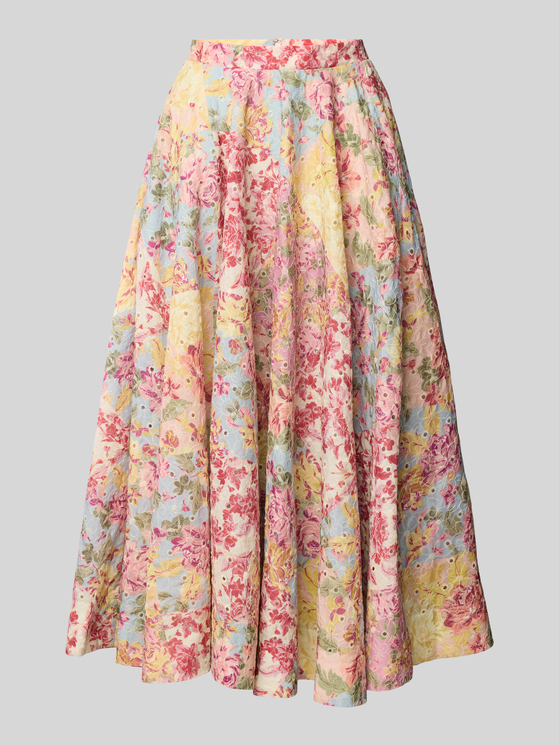 Der Damen Midirock von Adlysh überzeugt in einer charmanten A-Linie mit filigraner Lochstickerei. Das hochwertige Design bietet durch seine angenehme Länge vielseitige Kombinationsmöglichkeiten für unterschiedliche Anlässe. Die strukturierte Form sorgt für eine harmonische Silhouette und betont sanft die Figur.