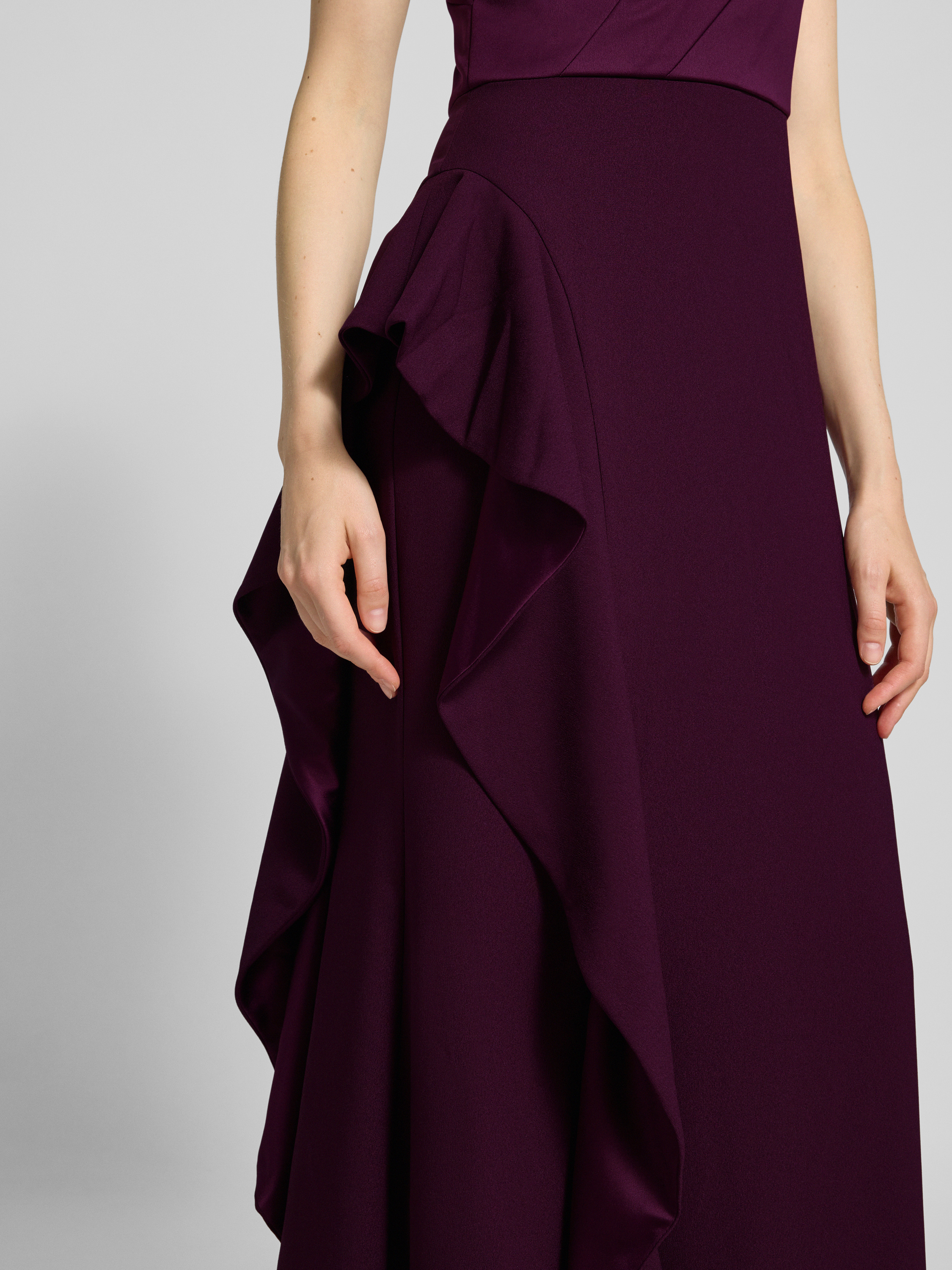 Das Abendkleid von Adrianna Papell aus fließendem Satin bringt durch seinen One-Shoulder-Look und die raffinierten Volants Bewegung ins Spiel. Der gerade Schnitt sorgt für eine angenehme Passform, während das Maxikleid dezent Eleganz vermittelt. So eignet es sich ideal für festliche Anlässe.