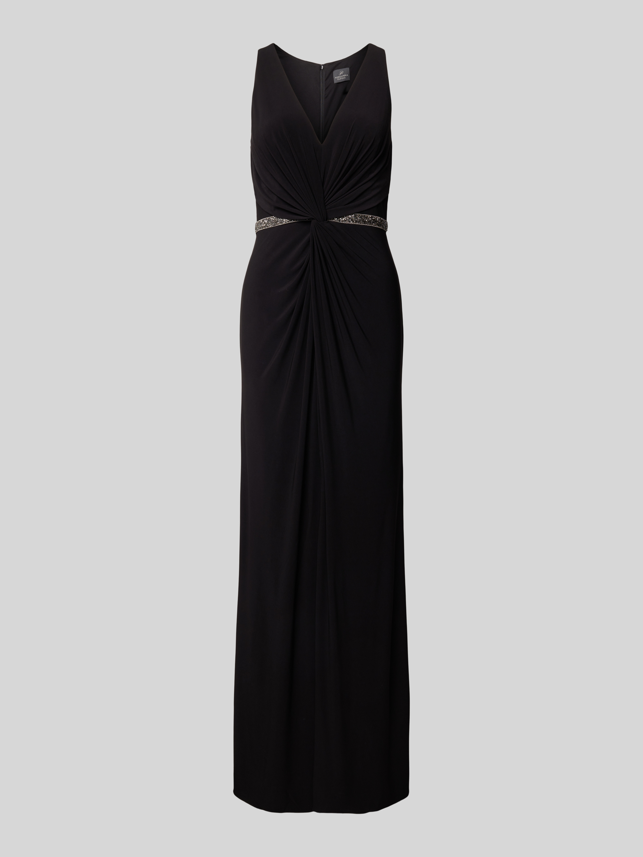 Das Damenkleid von Adrianna Papell fällt durch seinen fließenden Material-Mix angenehm auf und betont mit tailliertem Schnitt sowie V-Ausschnitt die Silhouette. Das Knotendetail sorgt für einen besonderen Akzent, während die Maxilänge dem Look einen festlichen Rahmen verleiht. So entsteht ein stimmiges Gesamtbild.