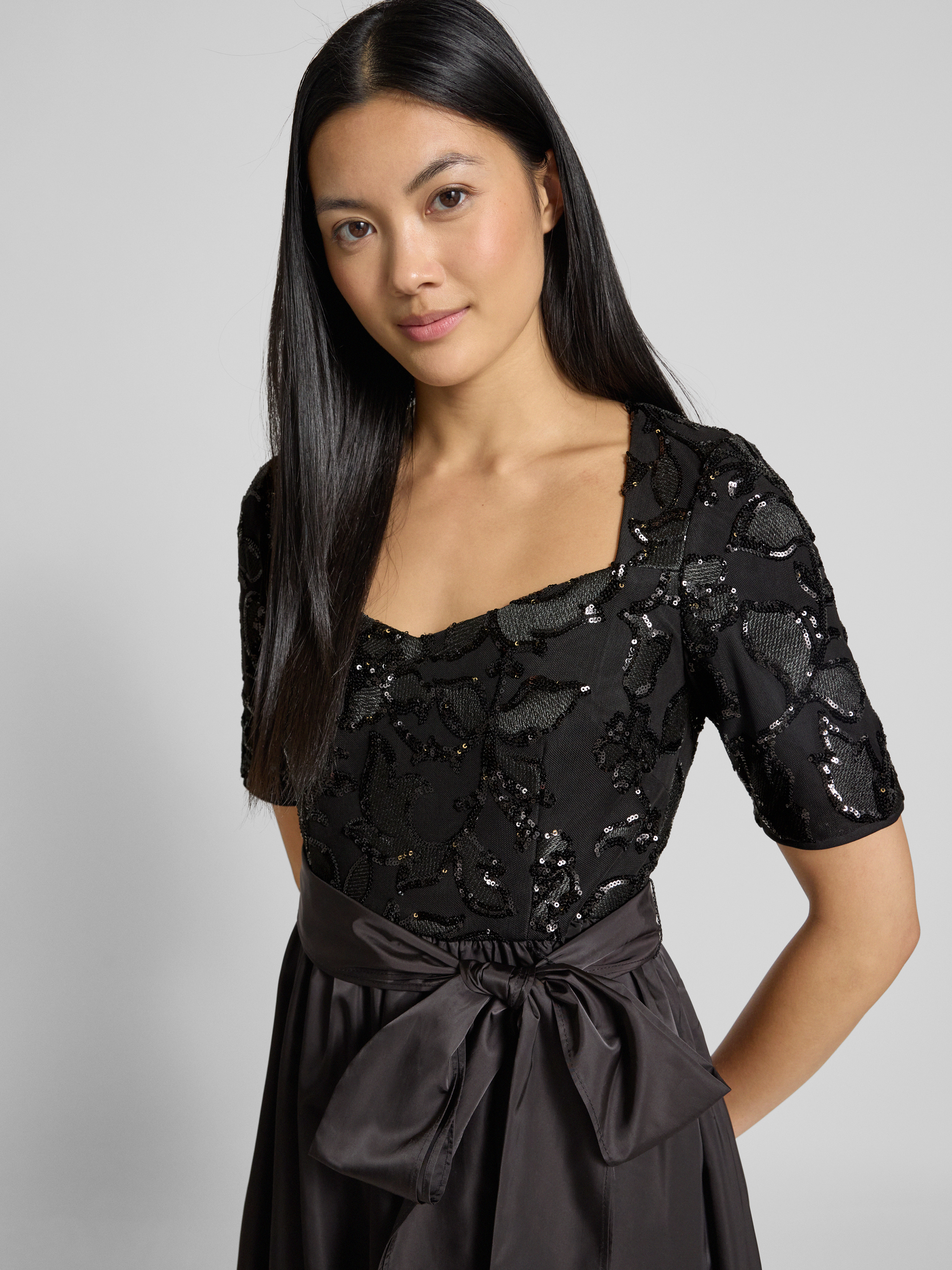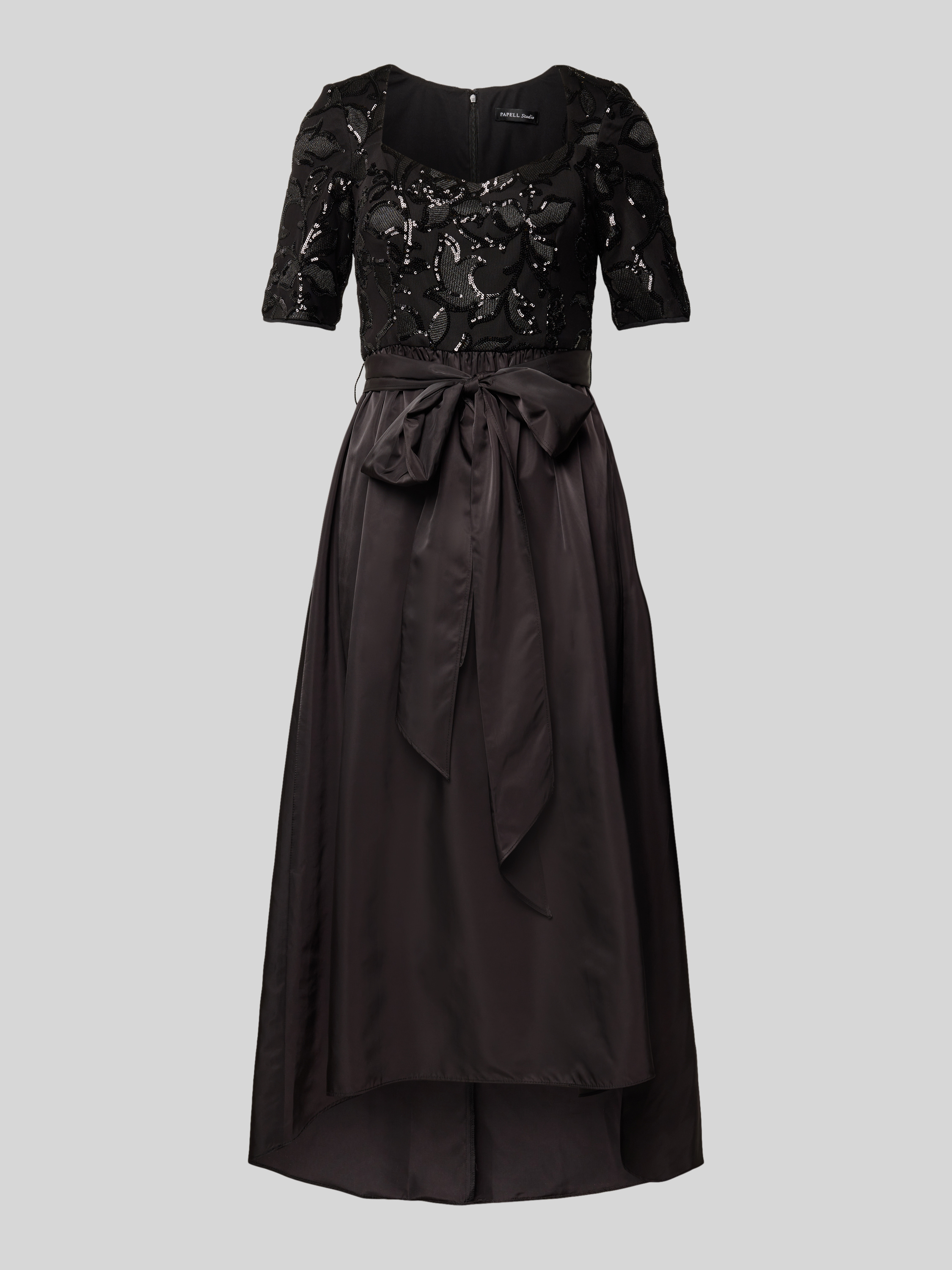 Das Abendkleid von Adrianna Papell zeichnet sich durch einen taillierten Schnitt und einen schmeichelnden Karree-Ausschnitt aus. Der Material-Mix mit Stretch-Anteil sorgt dafür, dass das Midikleid angenehm sitzt und Bewegungsfreiheit ermöglicht. Pailletten und Bindegürtel setzen dezente Akzente, wodurch man sich vielseitig gekleidet fühlt.