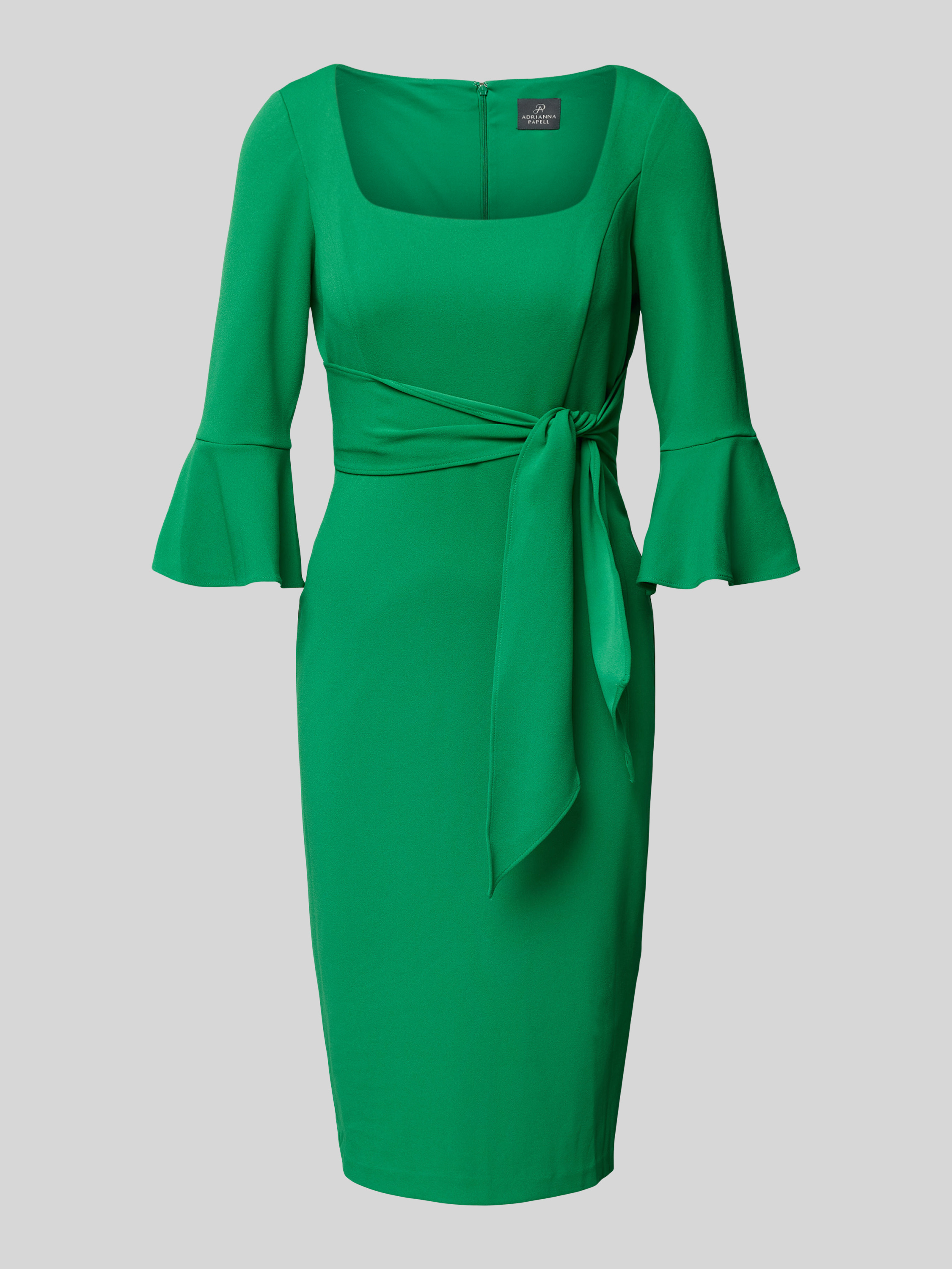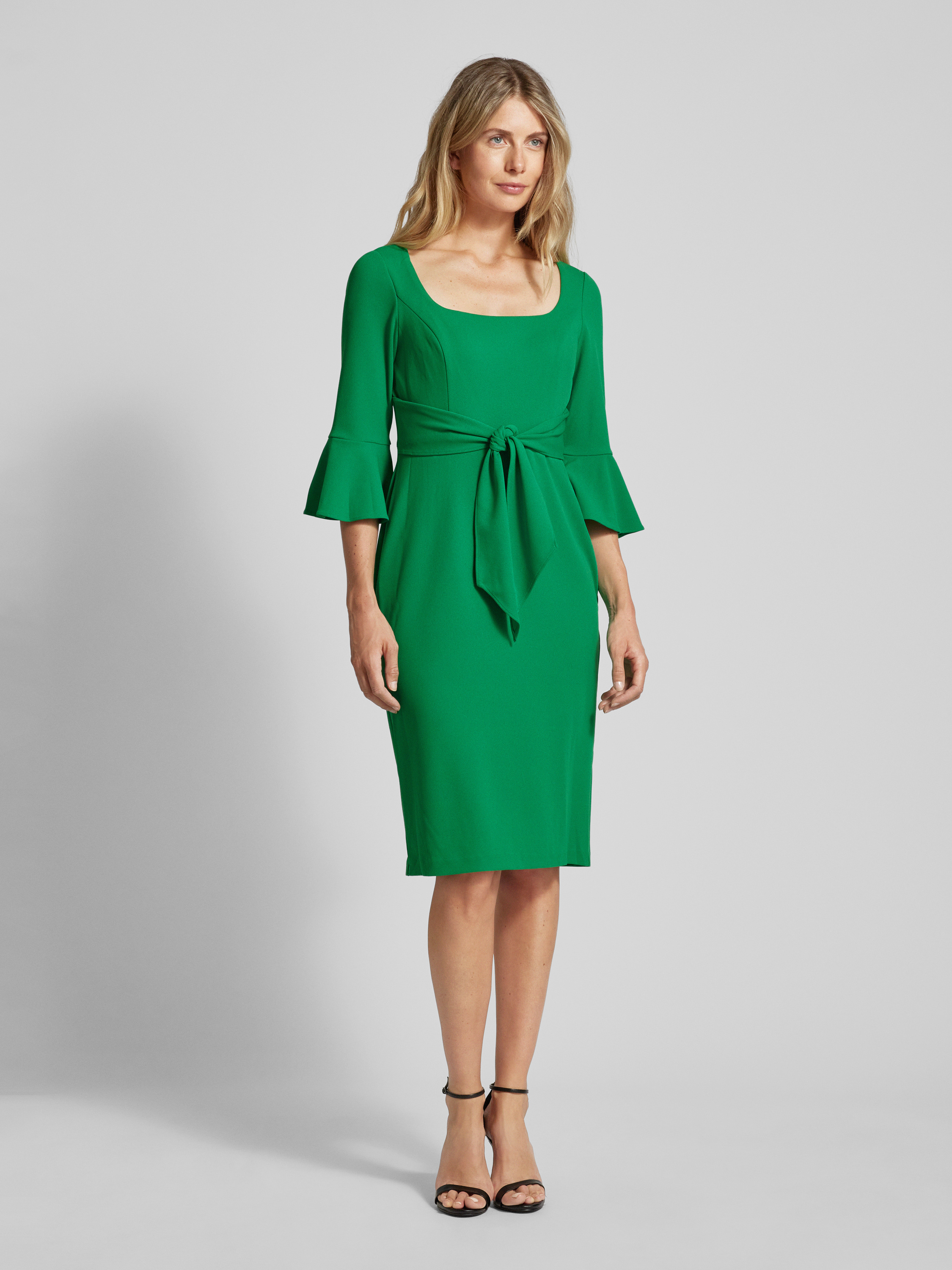Das Adrianna Papell Cocktailkleid mit Bindegürtel kombiniert gekonnt einen taillierten Schnitt mit einem eleganten Karree-Ausschnitt und Trompetenärmeln. Der Material-Mix mit Stretch-Anteil sorgt für angenehme Bewegungsfreiheit. Mit der knielangen Länge eignet es sich ideal für besondere Anlässe.