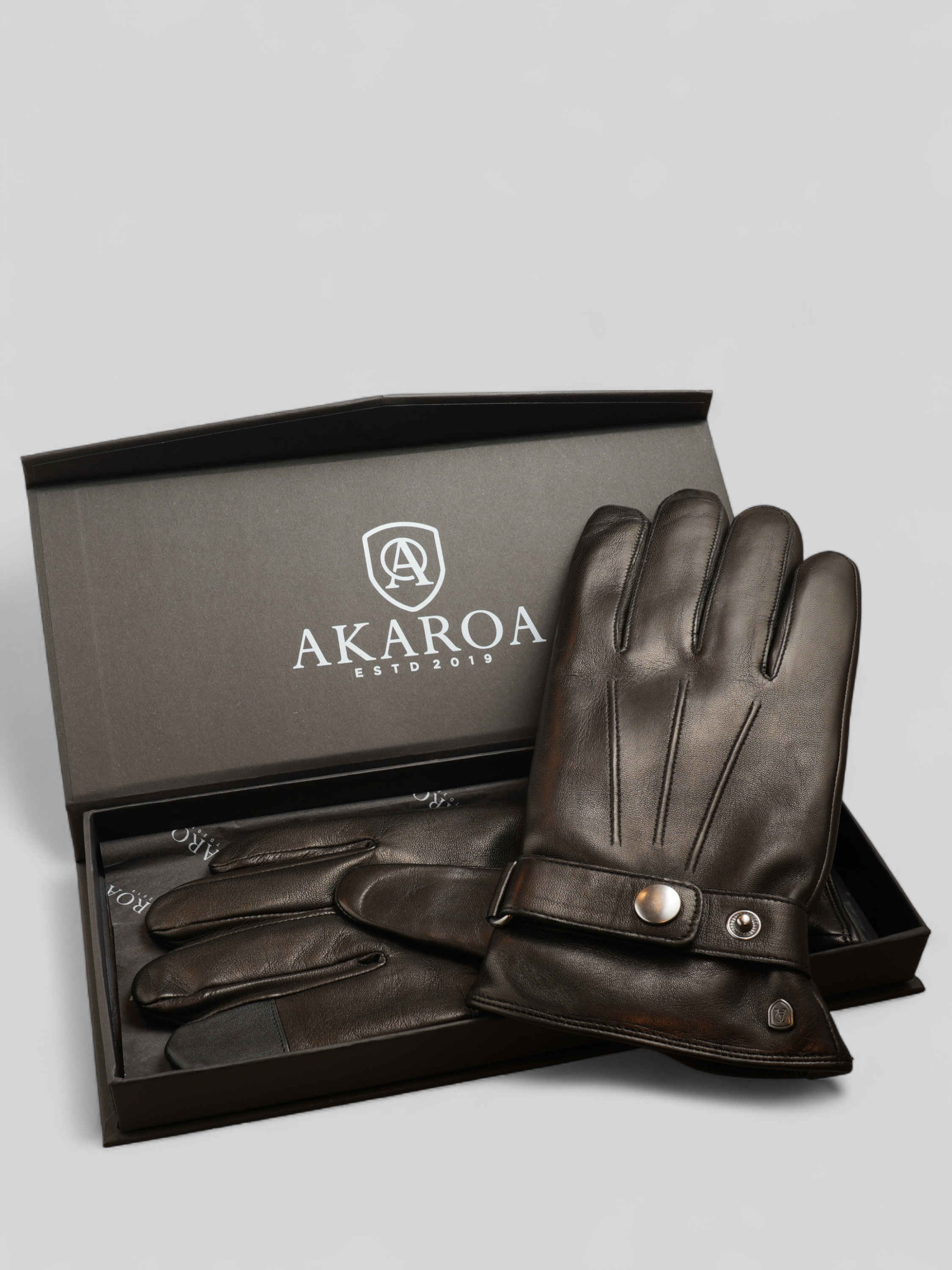 Die Herren Handschuhe von Akaroa Modell 'RON' aus reinem Schafsleder schmiegen sich angenehm an die Hände und sorgen für ein geschmeidiges Tragegefühl. Die Touchscreenfunktion erleichtert die Bedienung digitaler Geräte unterwegs, während dezente Ziernähte dem Design eine besondere Note verleihen.