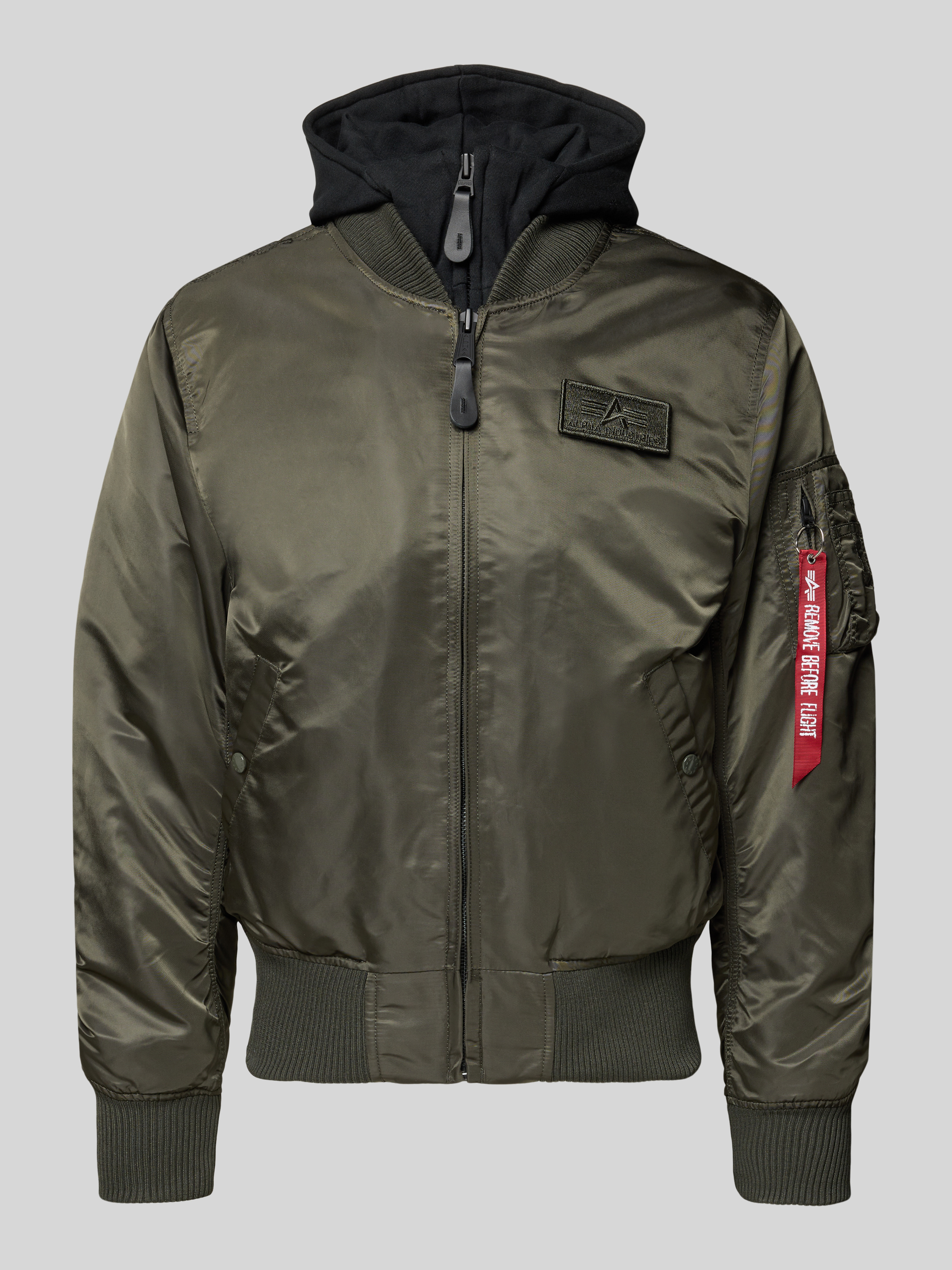 Alpha IndustriesBomberjacke mit Kapuze und Label-Stitching in dunkelgruen