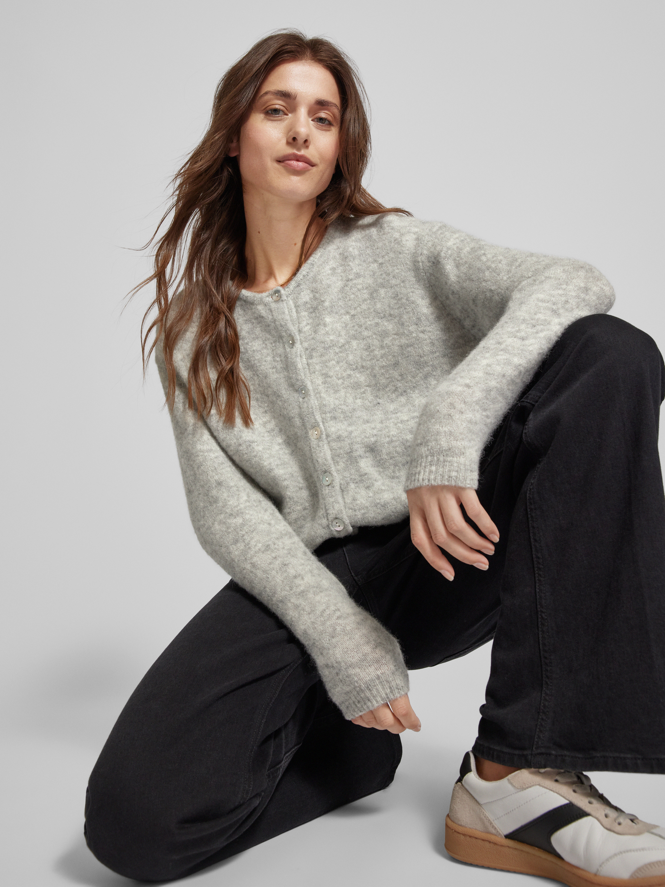 American VintageStrickjacke mit überschnittenen Schultern Modell 'VITOW' in hellgrau melange