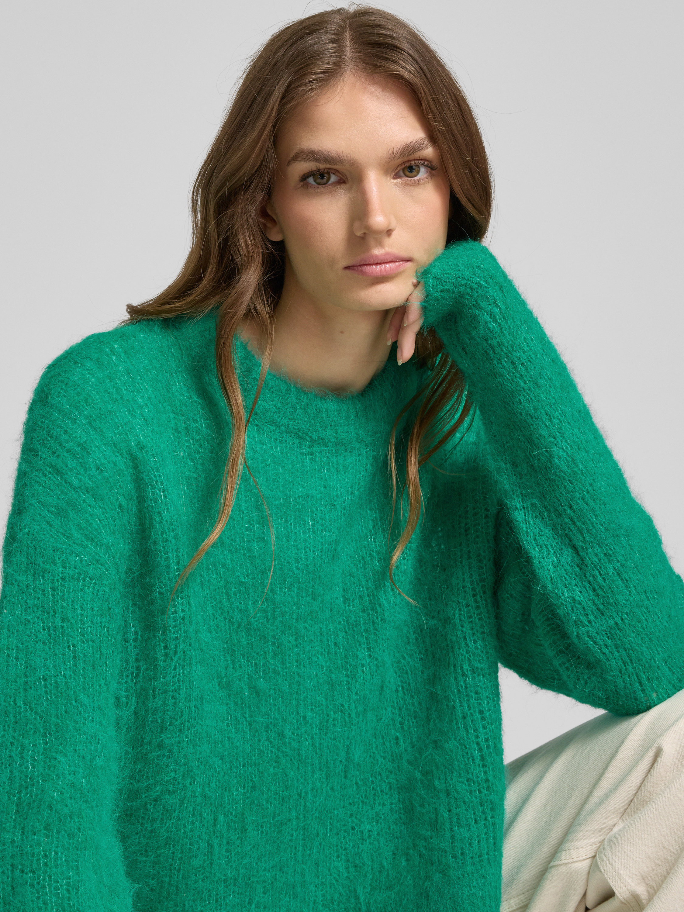 American VintageStrickpullover mit gerippten Abschlüssen Modell 'BYMI' in gruen