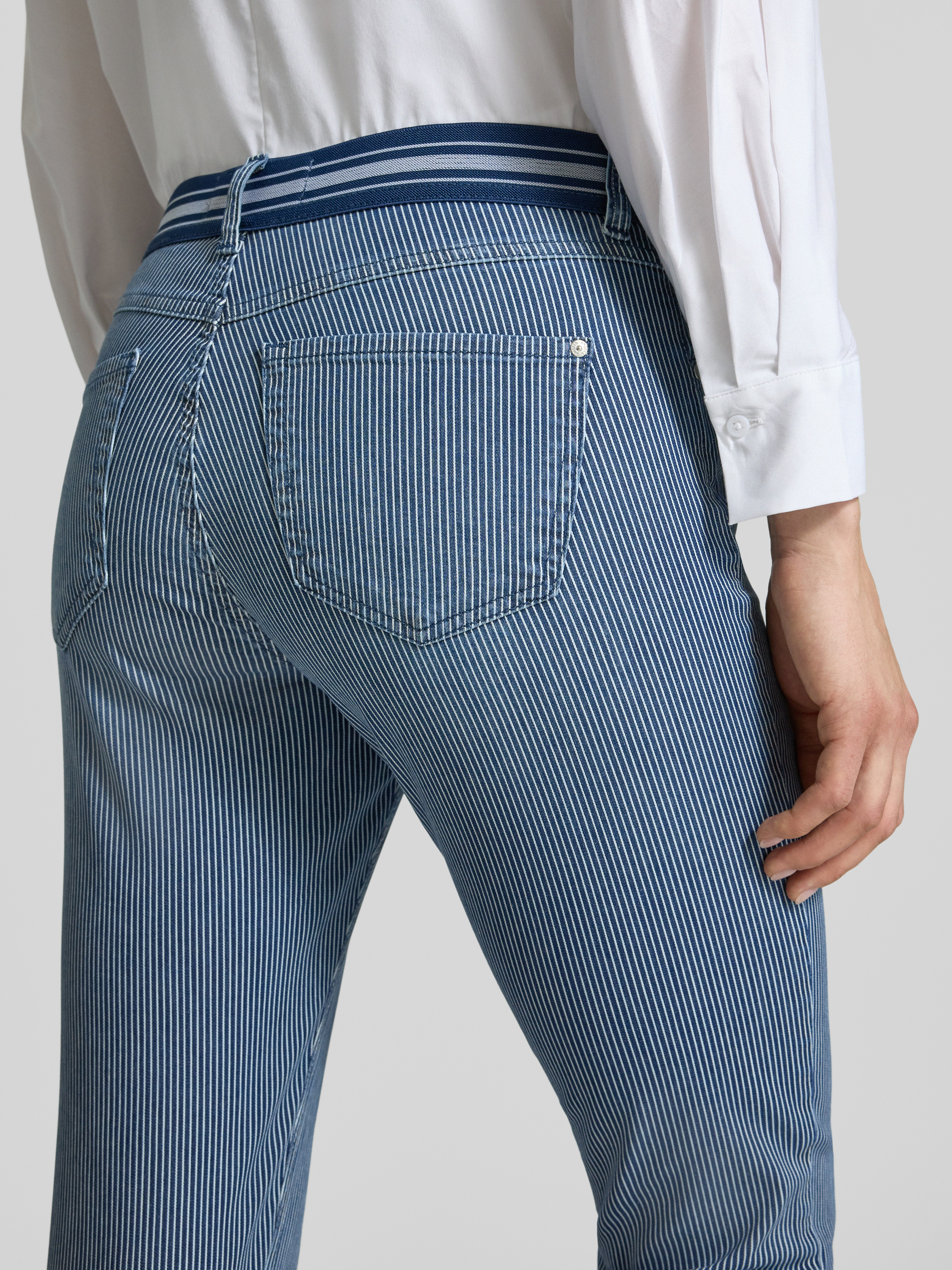Die Caprijeans von Angels, Modell 'Ana', zeichnet sich durch ihren schmalen Schnitt aus und liegt angenehm am Bein an. Dank des Baumwoll-Mix mit Stretch-Anteil passt sie sich flexibel an verschiedene Bewegungen an. Praktische Eingrifftaschen unterstreichen die alltagstaugliche Gestaltung dieser Hose.