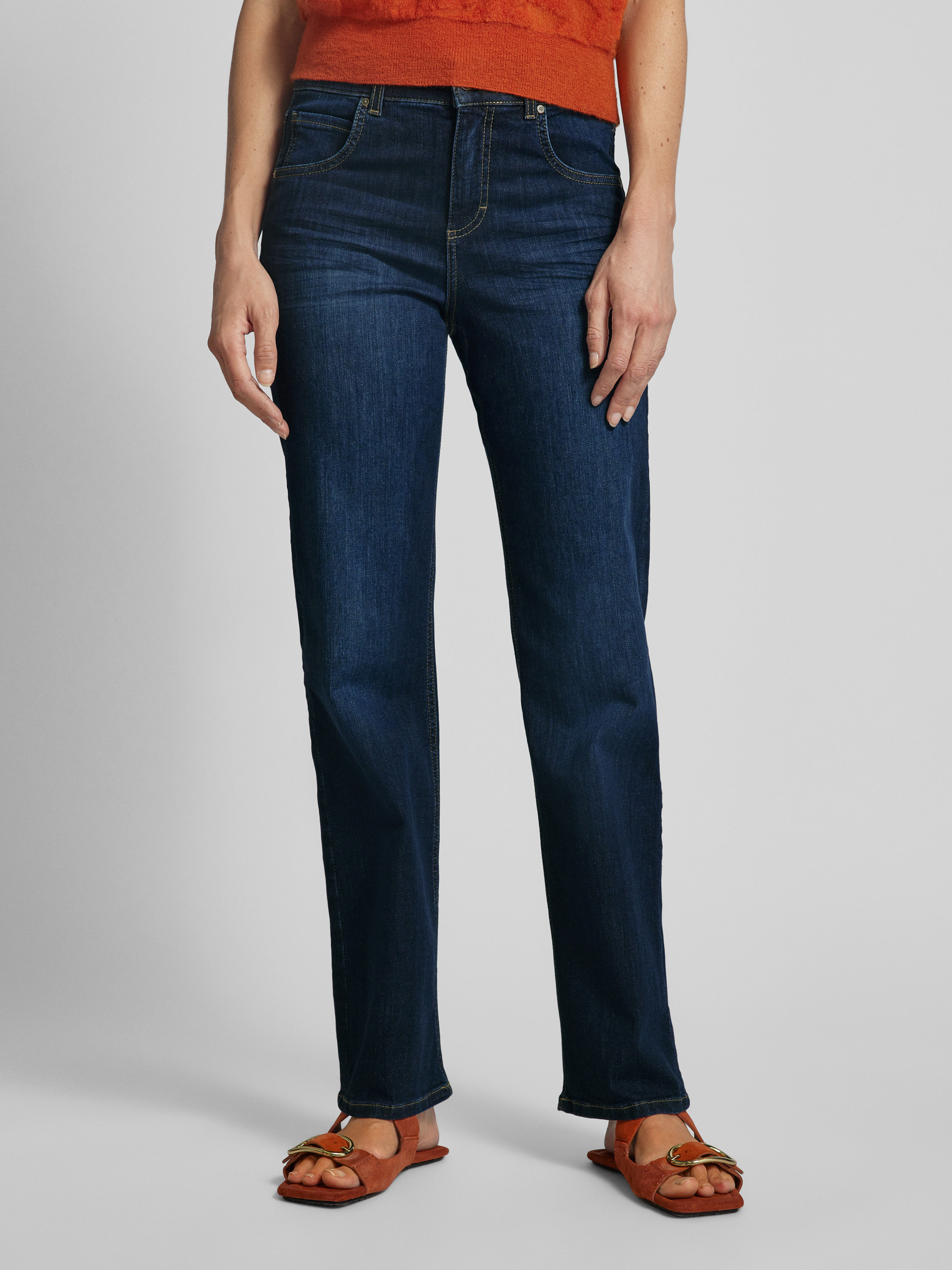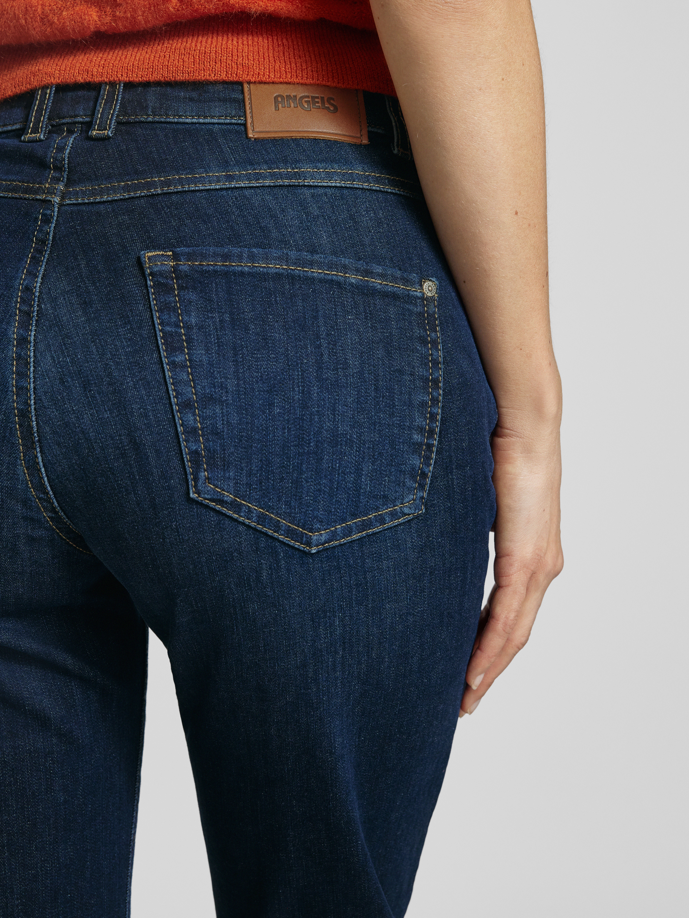 Die Regular Fit Jeans im 5-Pocket-Design Modell 'LARA' von Angels kombiniert stilvollen Komfort mit einem elastischen Baumwoll-Mix, der sich angenehm anfühlt. Der Schnitt bietet Bewegungsfreiheit und die Gürtelschlaufen ermöglichen individuelle Anpassungen. Ideal für vielseitige Alltagsoutfits geeignet.