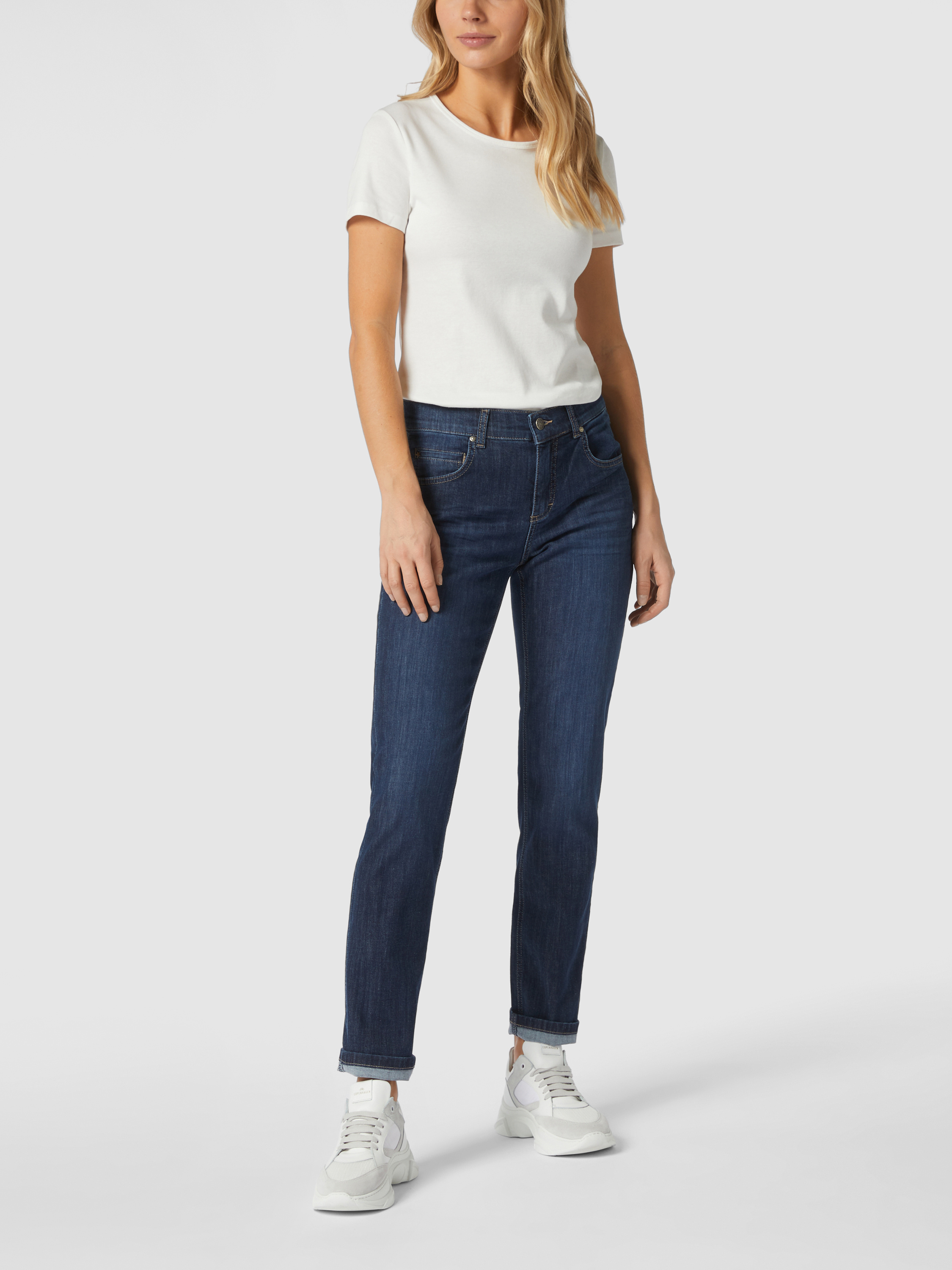Die Jeans von ANGELS ist aus einer leichten Baumwollmischung mit Stretch-Anteil gefertigt. Sie kommt im Regular Fit mit Label-Patch am Bund. Die Passform betont die Figur, ohne eng anzuliegen. Gut zu wissen: Angels übernimmt Verantwortung. Für die Umwelt und zahlreiche Arbeitsplätze. Alle Hosen des Labels entstehen in Europa - vom ersten Entwurf bis hin zur Endkontrolle.