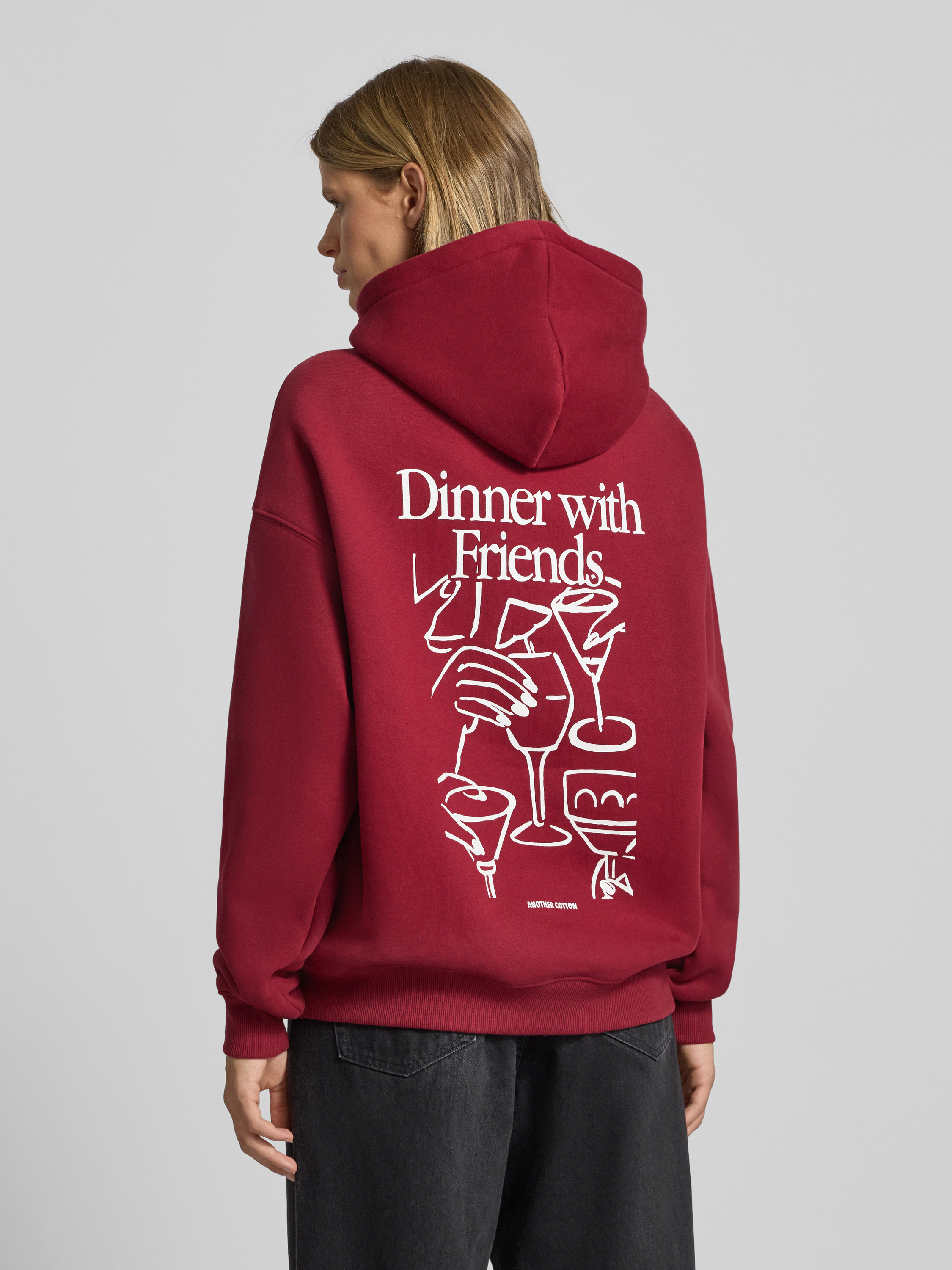 ANOTHER COTTON LABOversized Hoodie mit Statement-Print Modell 'Dinner' in bordeaux