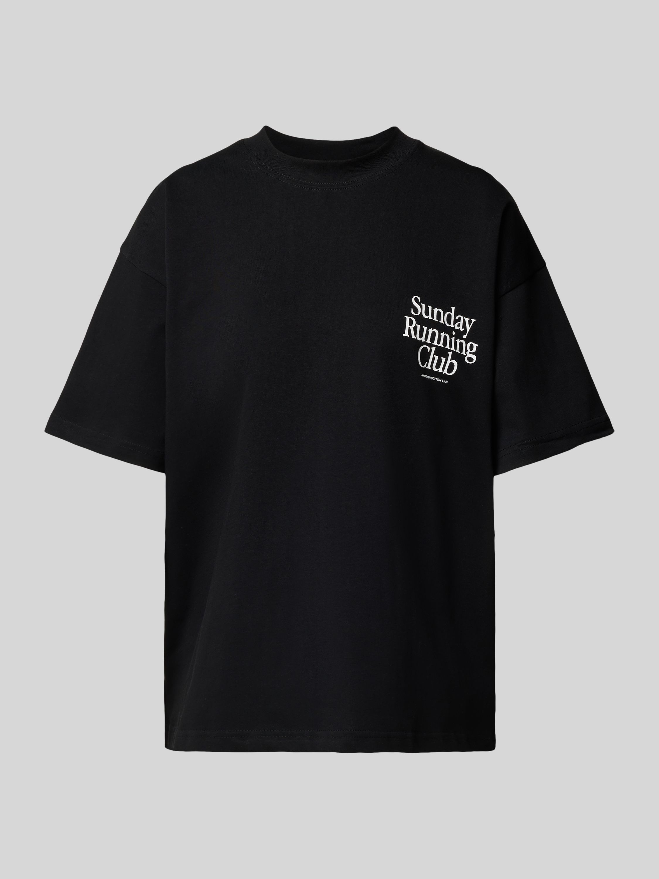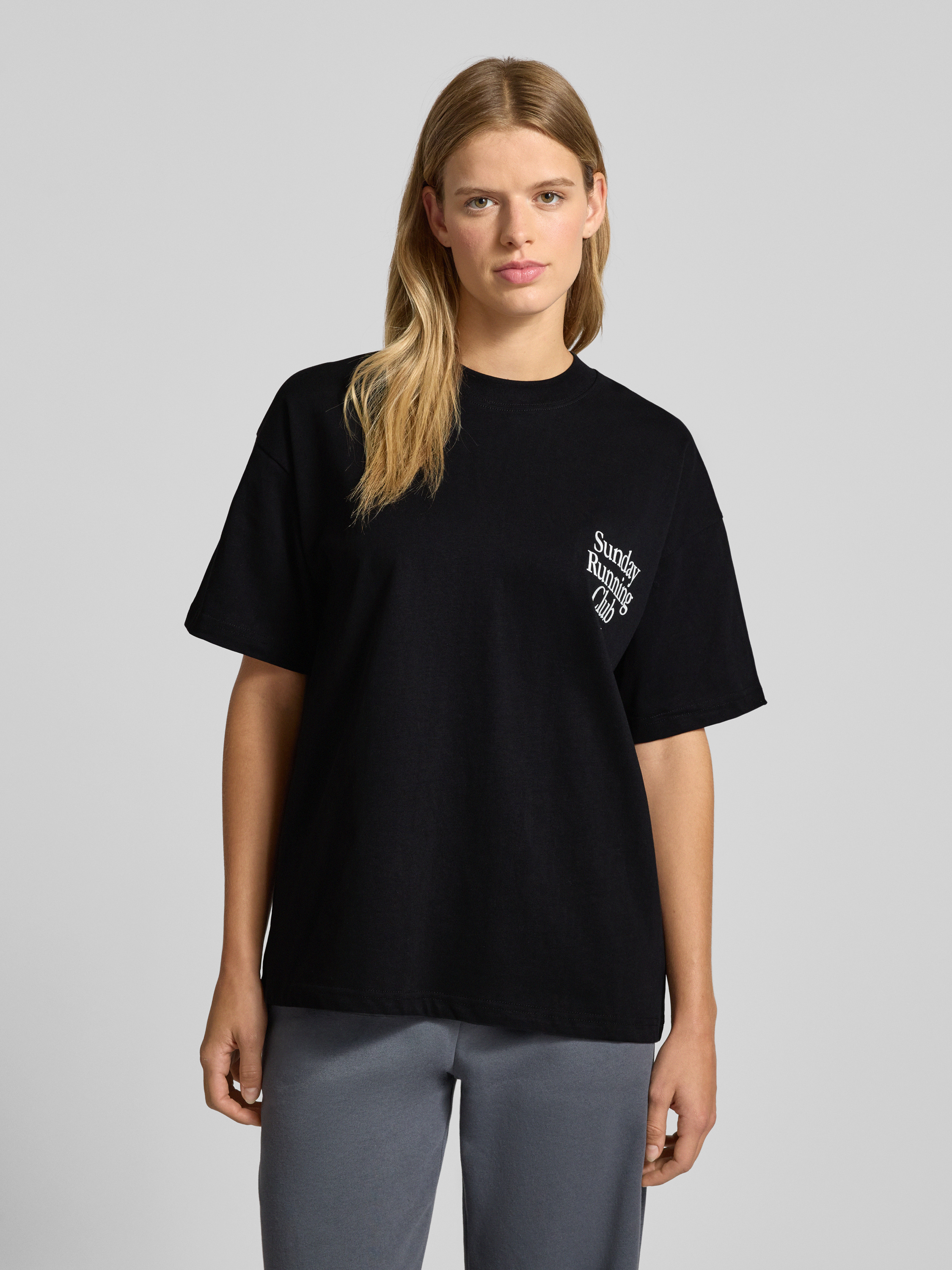 ANOTHER COTTON LABOversized T-Shirt mit Statement-Print und Rundhalsausschnitt in black