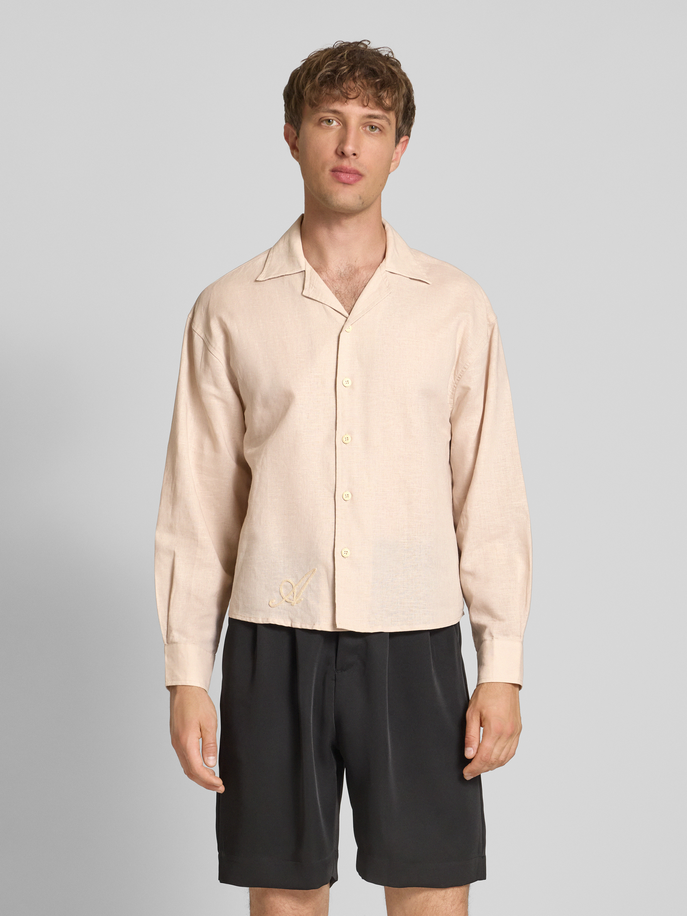 ANOTHER COTTON LABRelaxed Fit Leinenhemd mit Logo-Stitching in beige