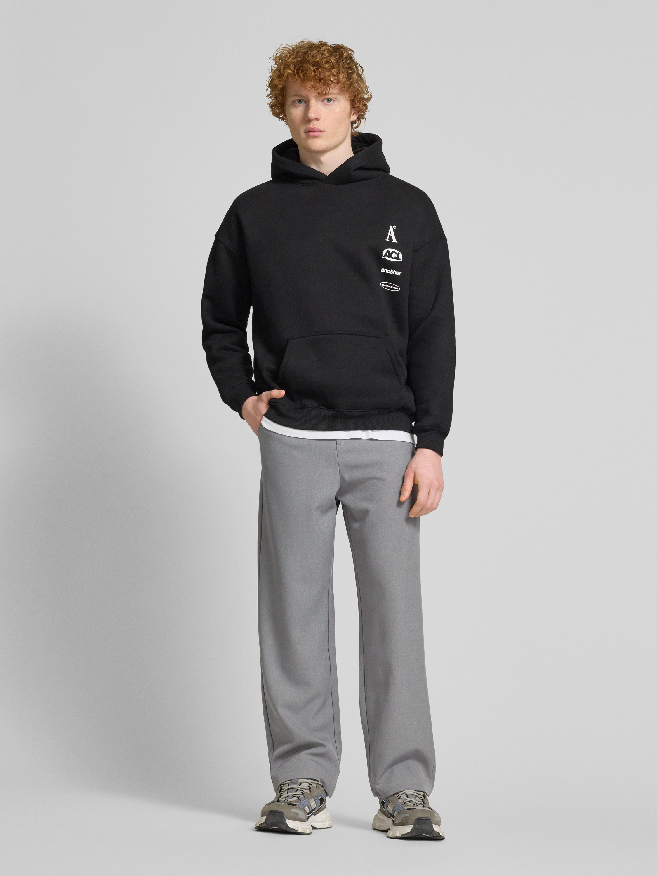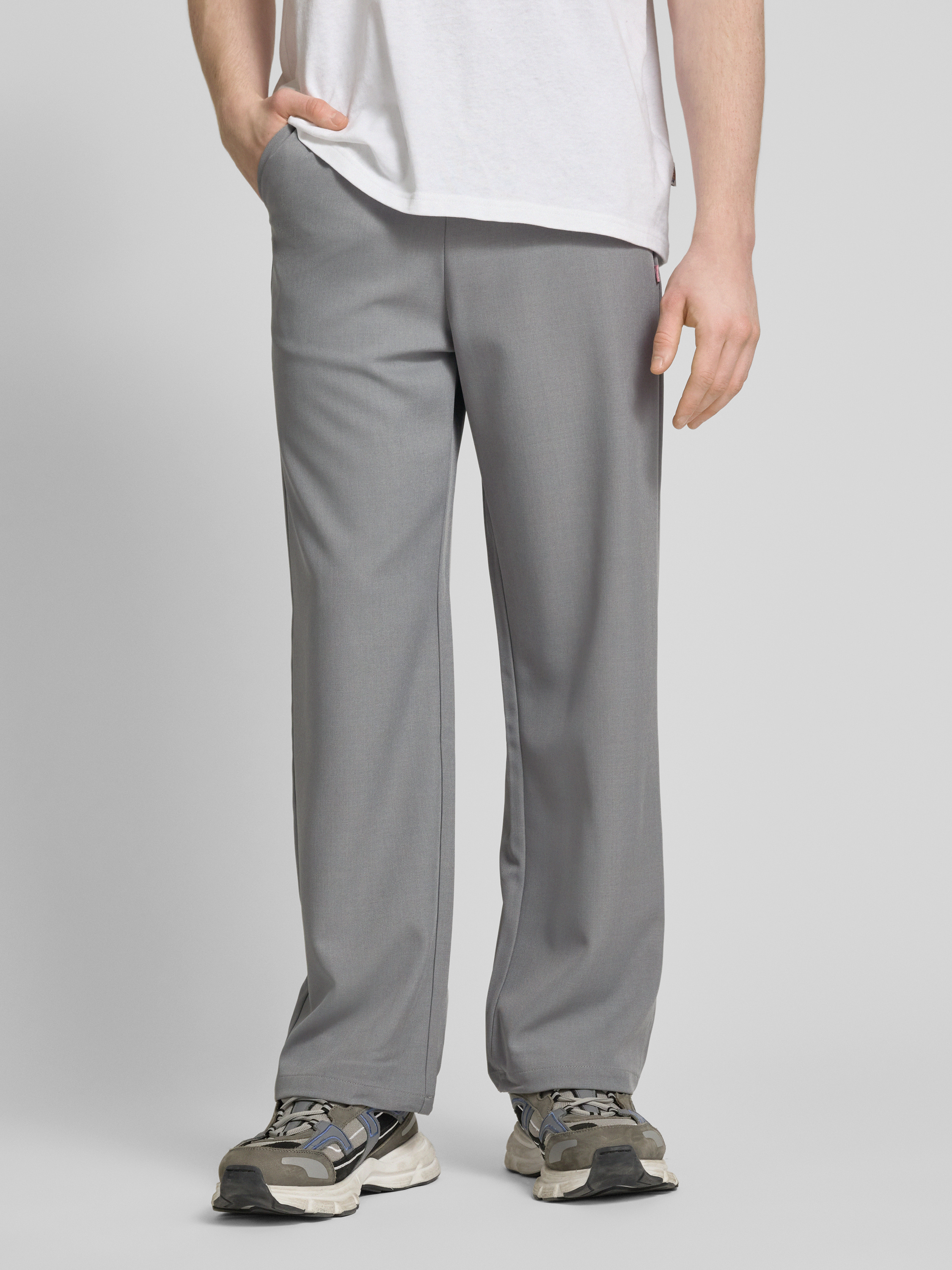 ANOTHER COTTON LABStraight Leg Stoffhose mit Label-Detail in dunkelgrau melange
