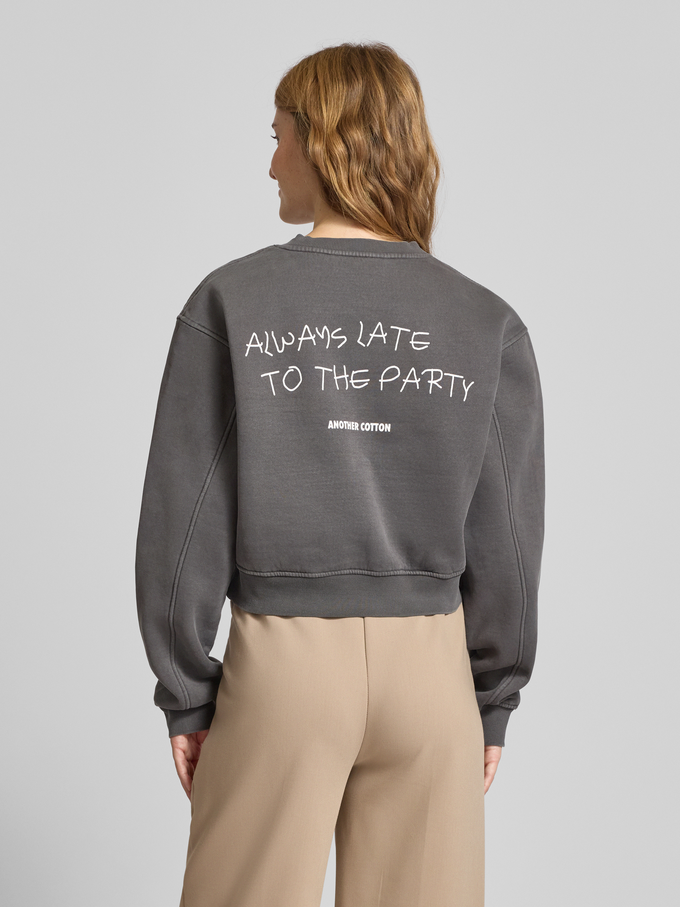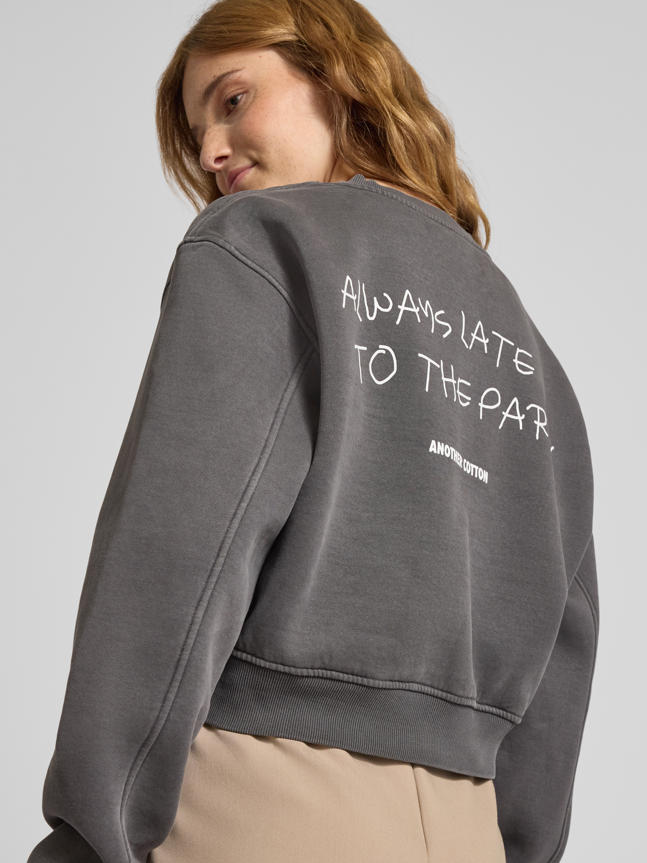 ANOTHER COTTON LABSweatshirt mit Label-Print Modell 'Always Late' in mittelgrau