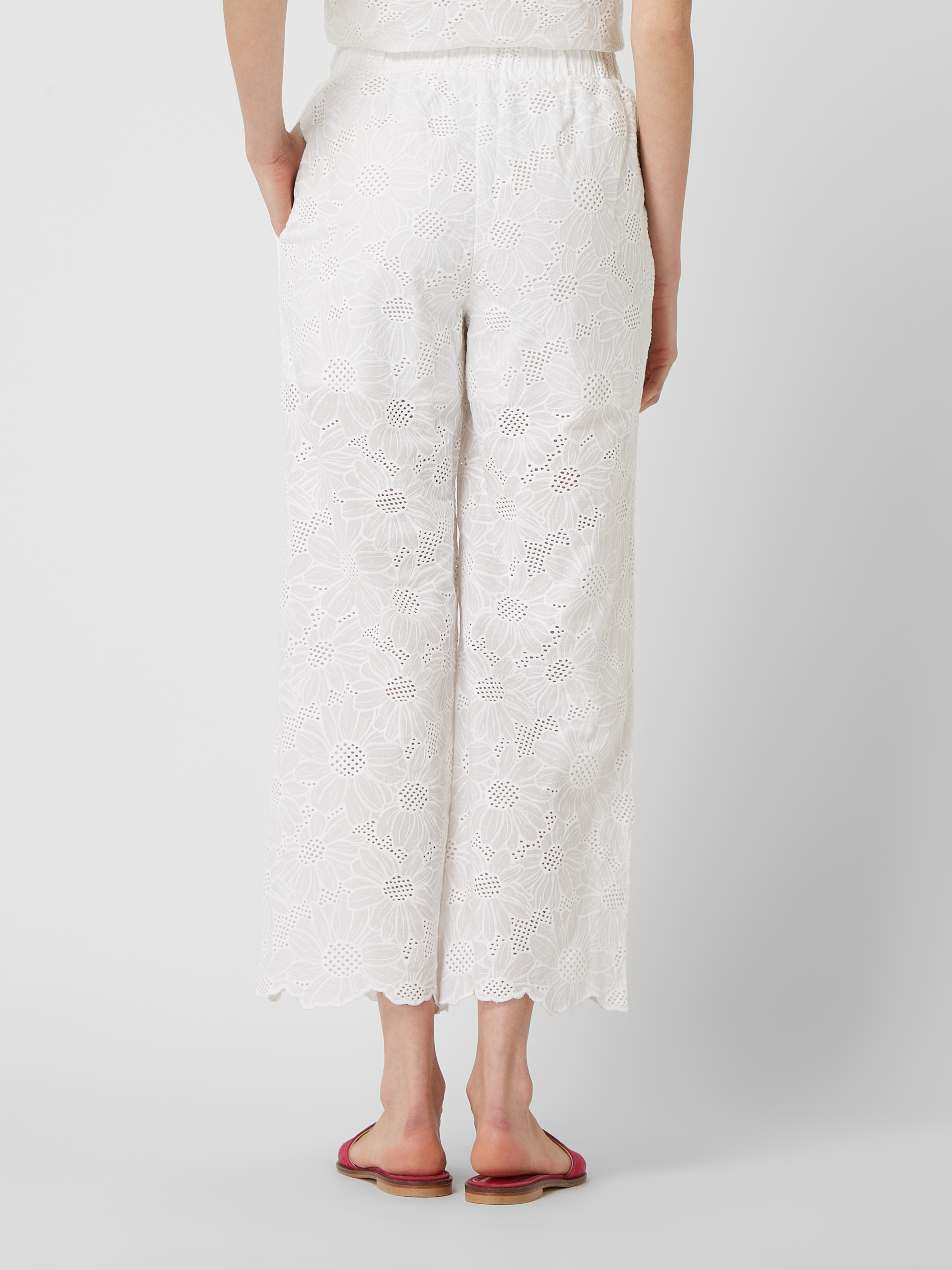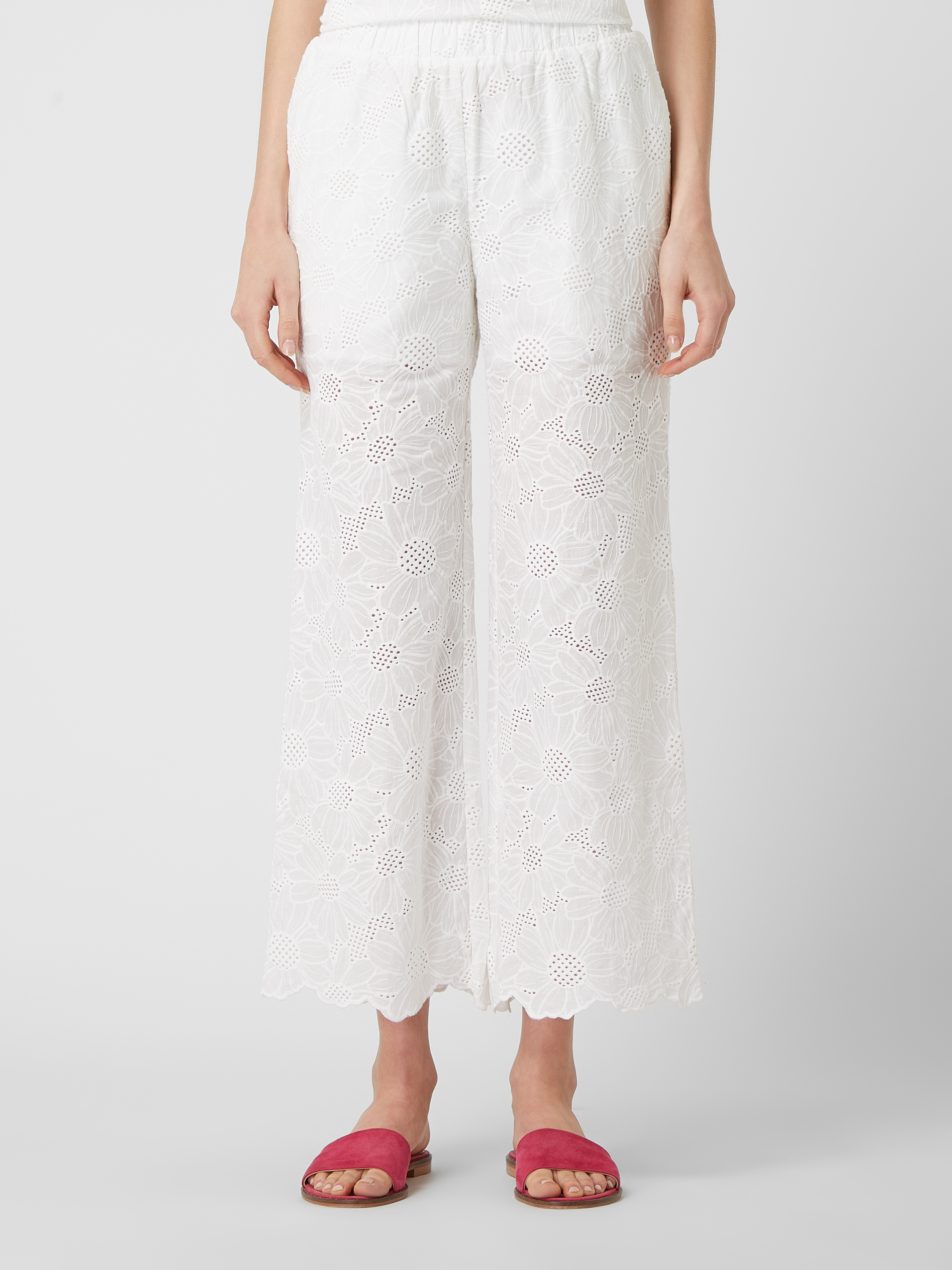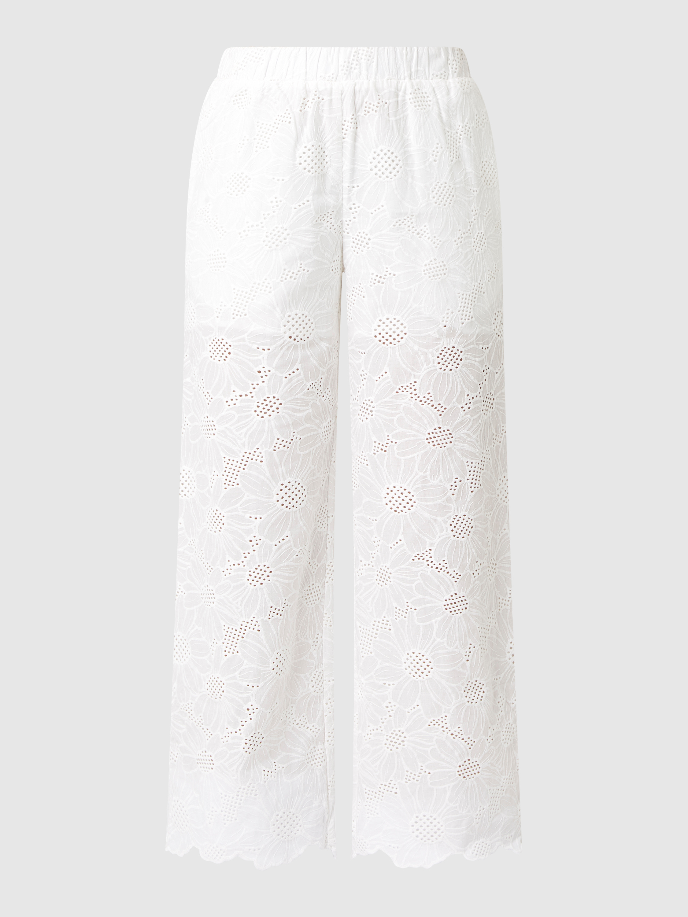 Die Damen Culotte von APART aus reiner Baumwolle vereint Leichtigkeit und Eleganz. Mit ihrem lockeren Schnitt und weiten, verkürzten Beinen bietet sie Bewegungsfreiheit und Komfort. Die Lochspitze und der Muschelsaum verleihen dem Design eine stilvolle Note, während seitliche Eingrifftaschen praktische Details hinzufügen.