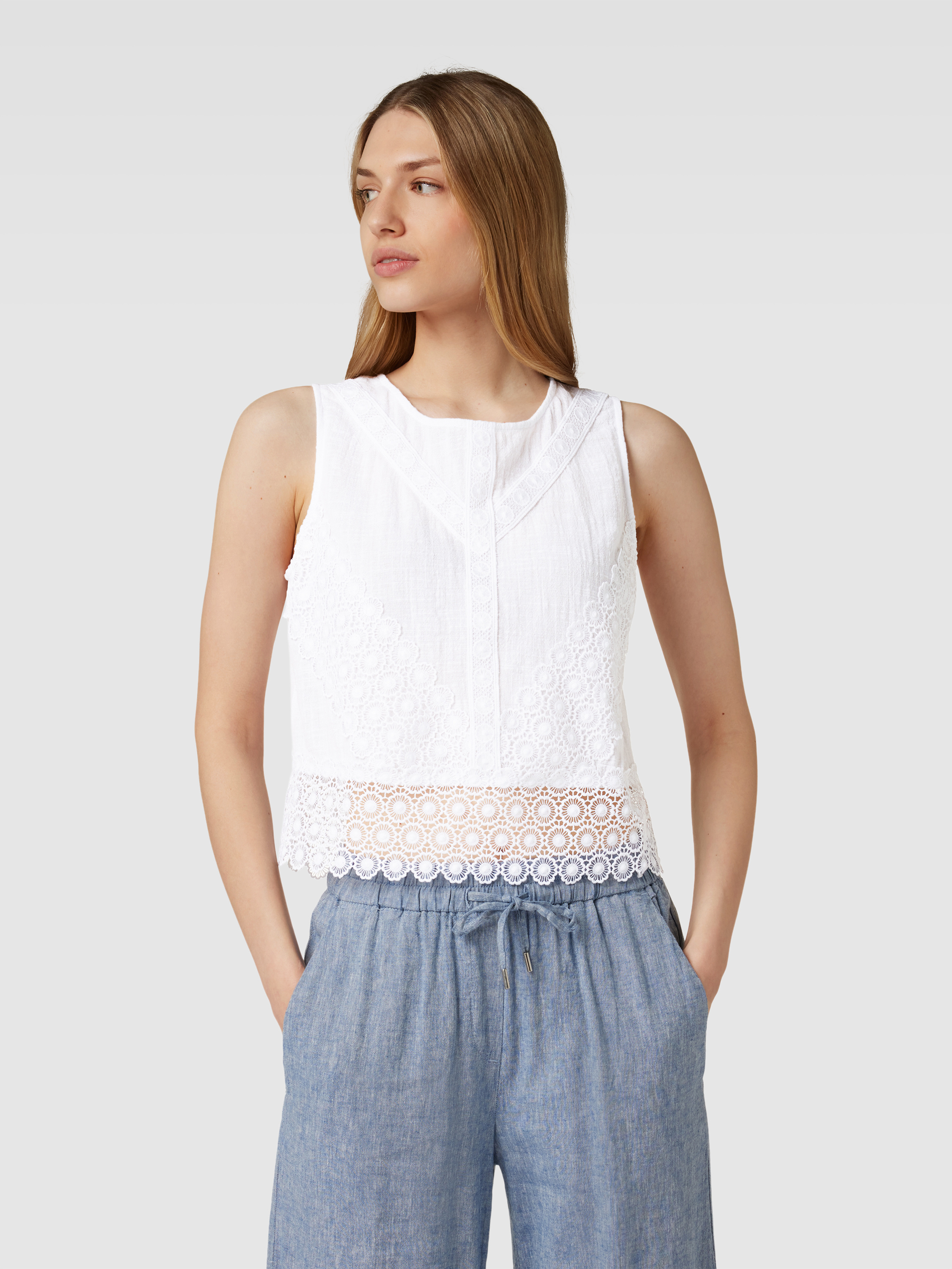 Blusenshirt mit Spitzenbesatz in offwhite