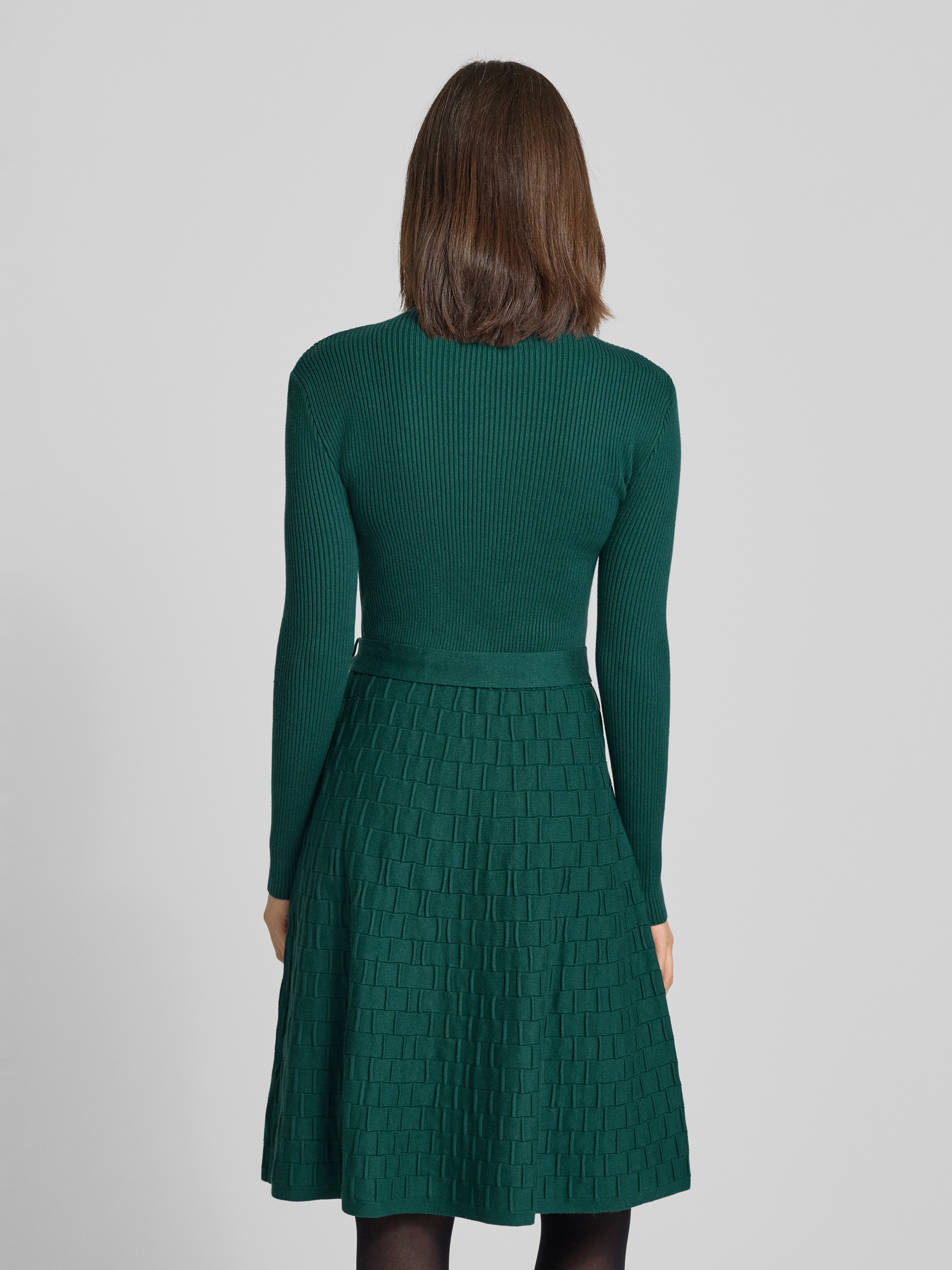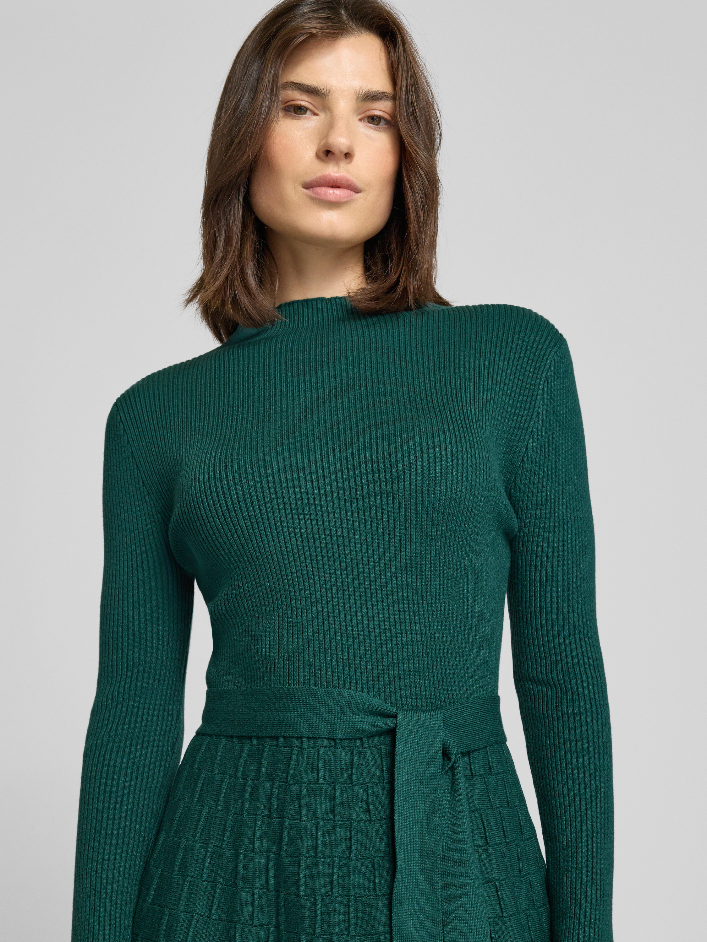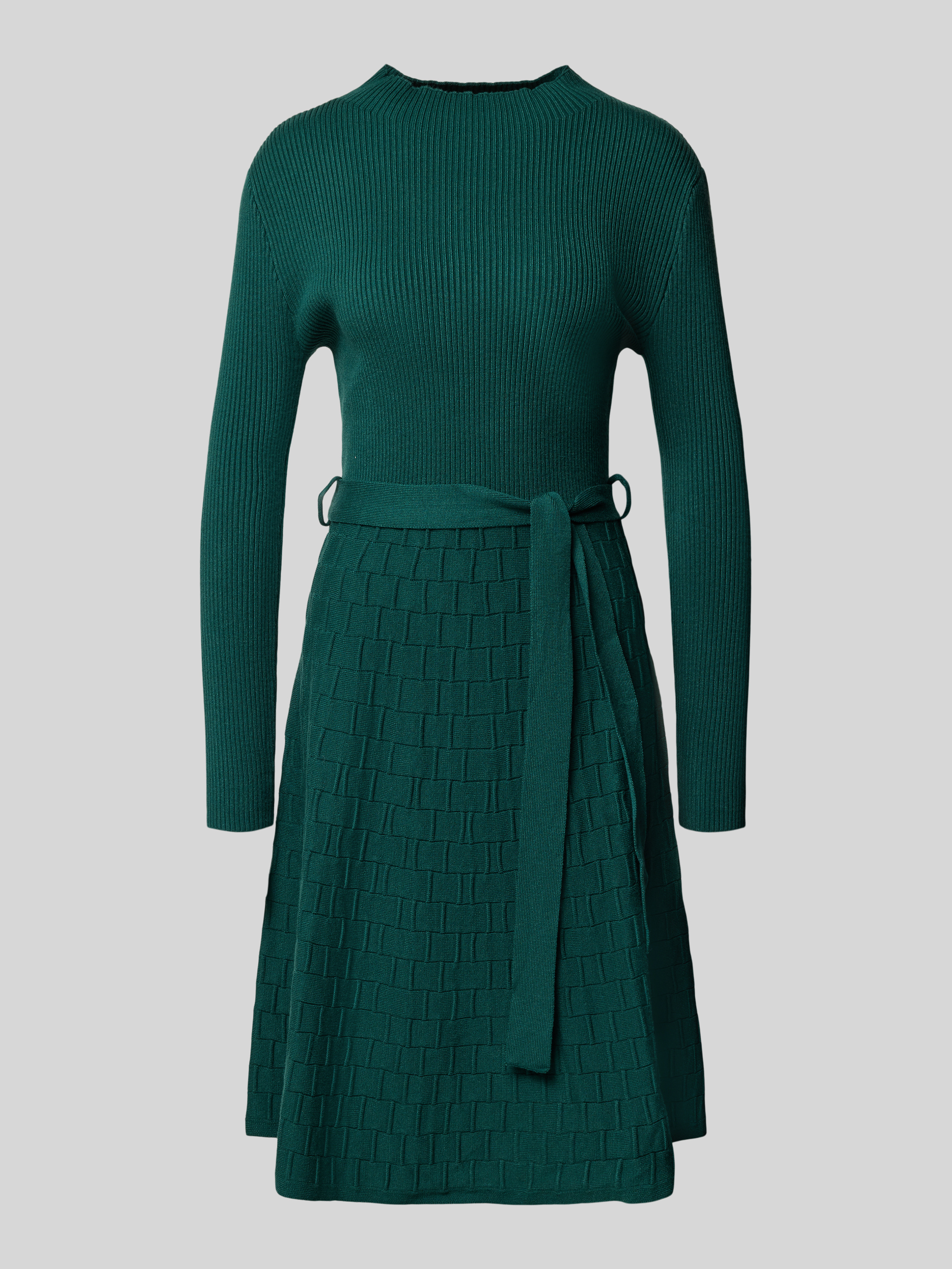 Das Damen Kleid von Apricot zeigt sich in Strick-Optik und taillierter Passform, wodurch die Silhouette dezent betont wird. Dank des Viskose-Mix trägt es sich angenehm und bleibt auch an langen Tagen formstabil. Der weite Stehkragen und das abnehmbare Stoffband runden das strukturierte Design ab.