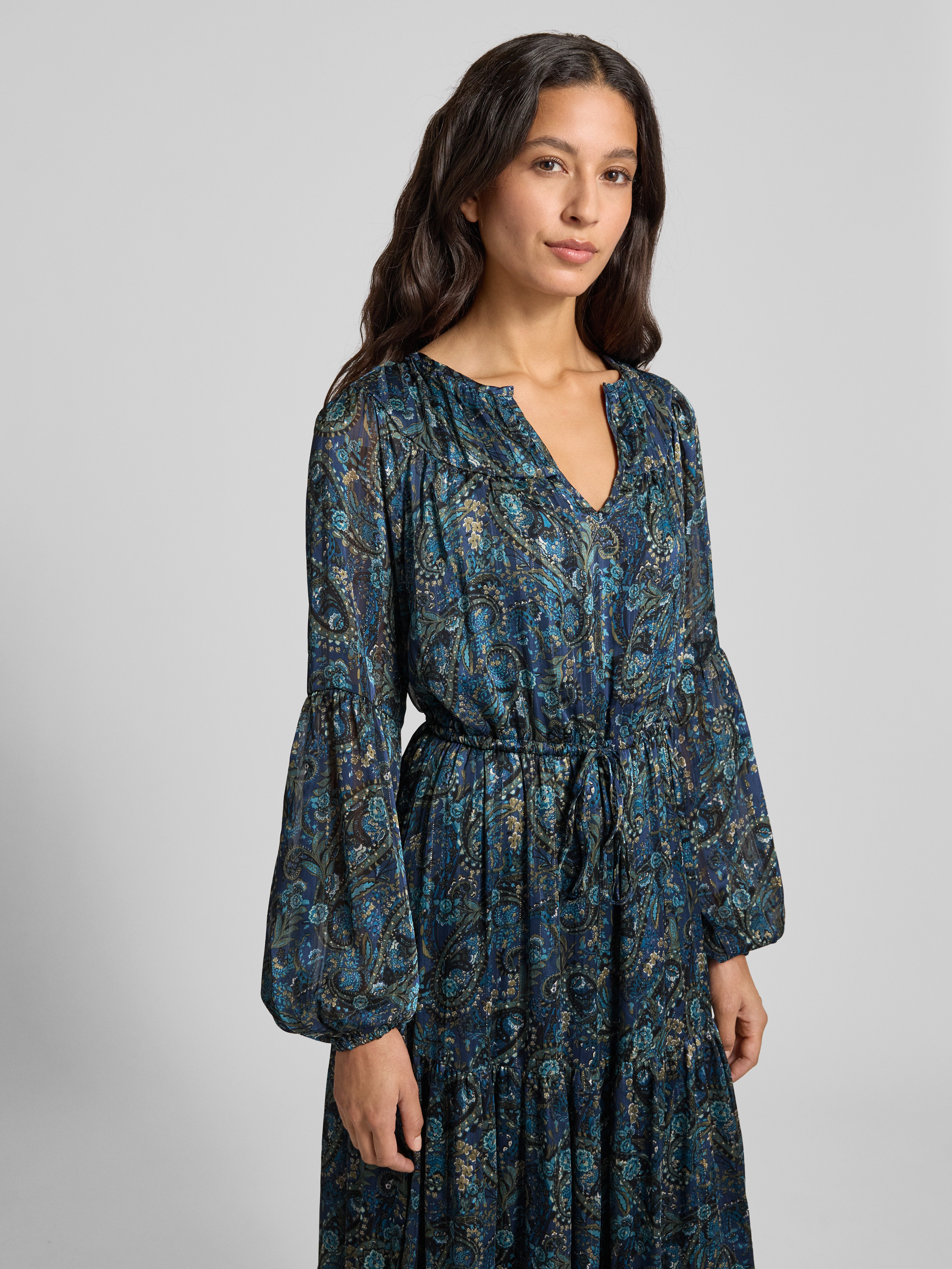 Das Damen Midikleid von Apricot zeigt ein lebendiges Allover-Paisley-Print, das der taillierten Passform einen besonderen Akzent verleiht. Der Tunika-Ausschnitt und der Tunnelzug sorgen gemeinsam mit dem langärmeligen Design für angenehmen Tragekomfort im Alltag. Falten-Optik und eingefasste Ärmelabschlüsse runden den lockeren, zugleich strukturierten Look harmonisch ab.