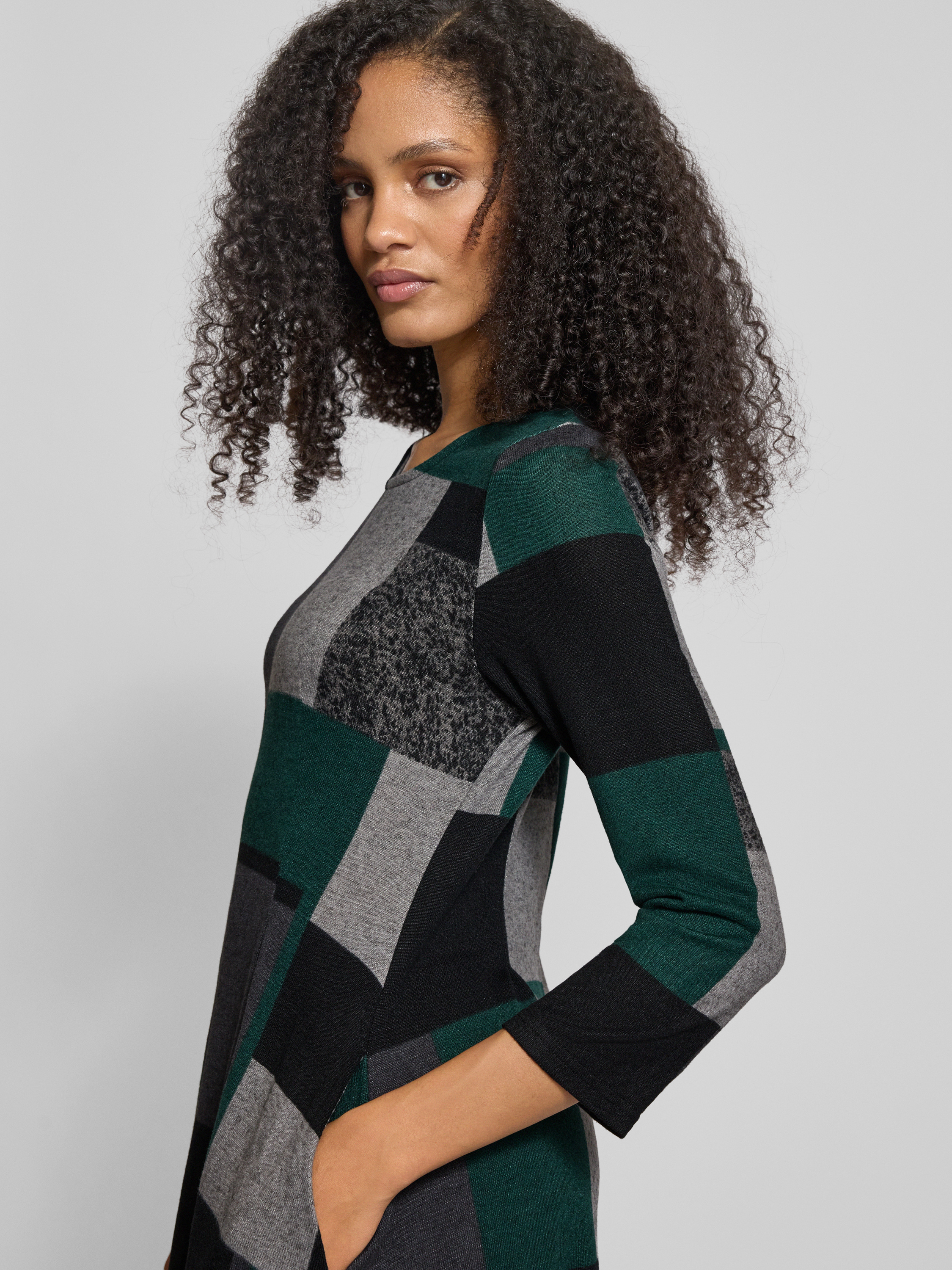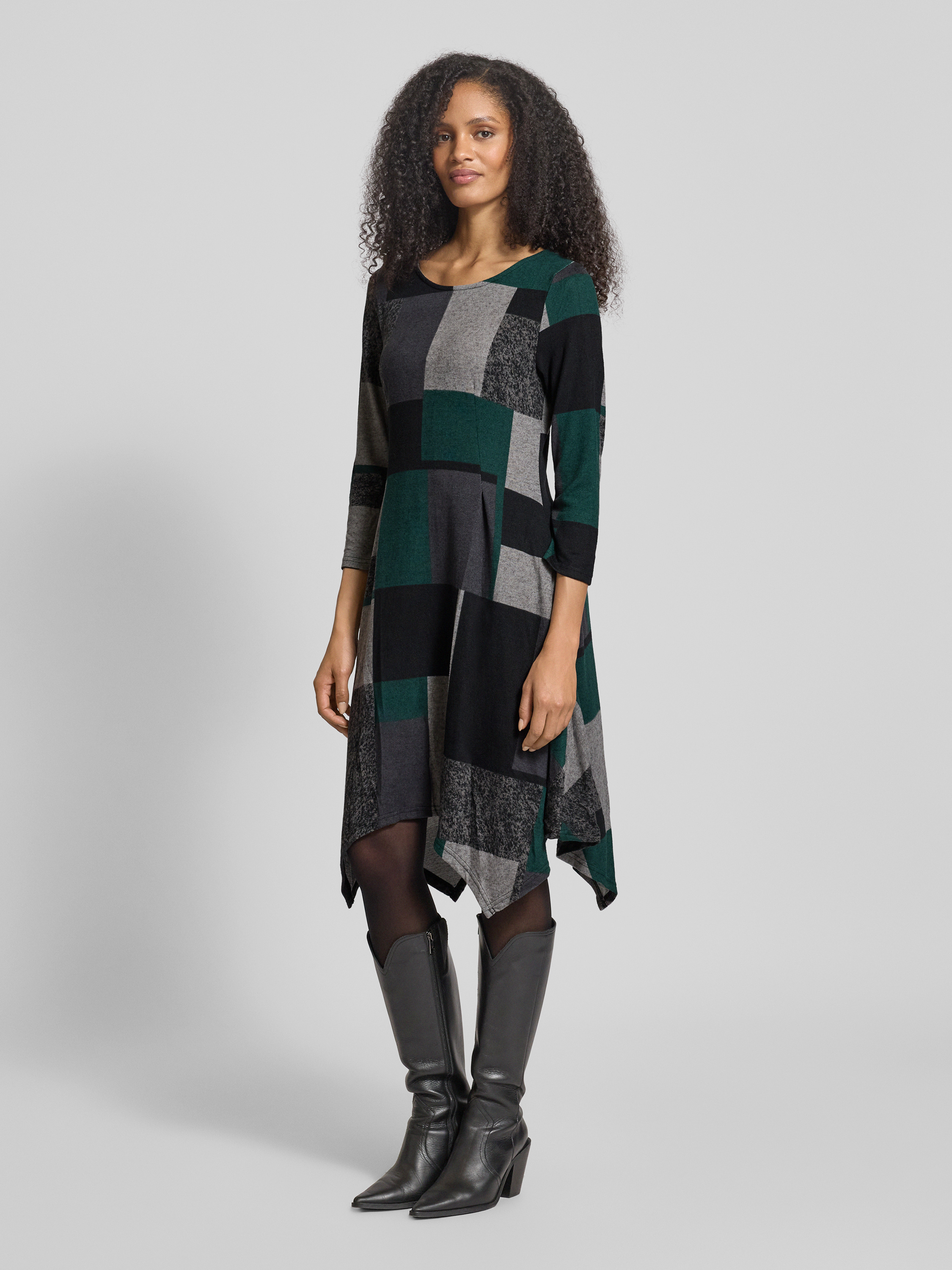 Das Apricot Minikleid mit Rundhalsausschnitt zeichnet sich durch einen taillierten Schnitt aus, der eine feminine Silhouette betont und Bewegungsfreiheit ermöglicht. Durch den Material-Mix mit Stretch-Anteil passt sich das Kleid angenehm an. Die 3/4-Ärmel runden das Erscheinungsbild stilvoll ab.