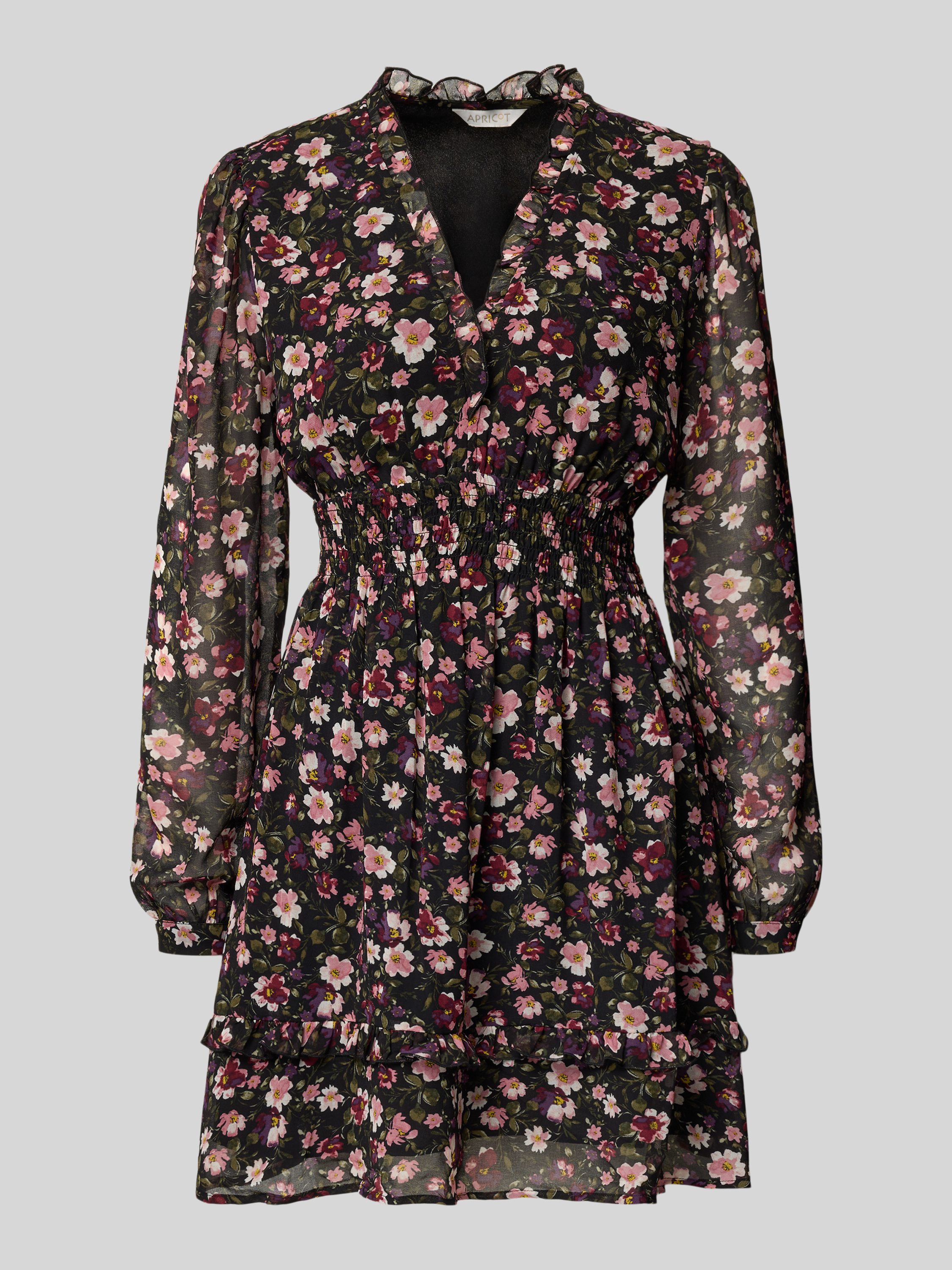 Das Damen Minikleid von Apricot fällt durch seinen floralen Allover-Print und das Smock-Detail angenehm ins Auge. Die taillierte Passform mit V-Ausschnitt und Rüschenbesatz lässt sich bequem tragen, während eingefasste Ärmelabschlüsse und blickdichter Unterrock für ein angenehmes Tragegefühl sorgen. So eignet sich das Langarm Design, um unkompliziert feminine Akzente im Alltag zu setzen.