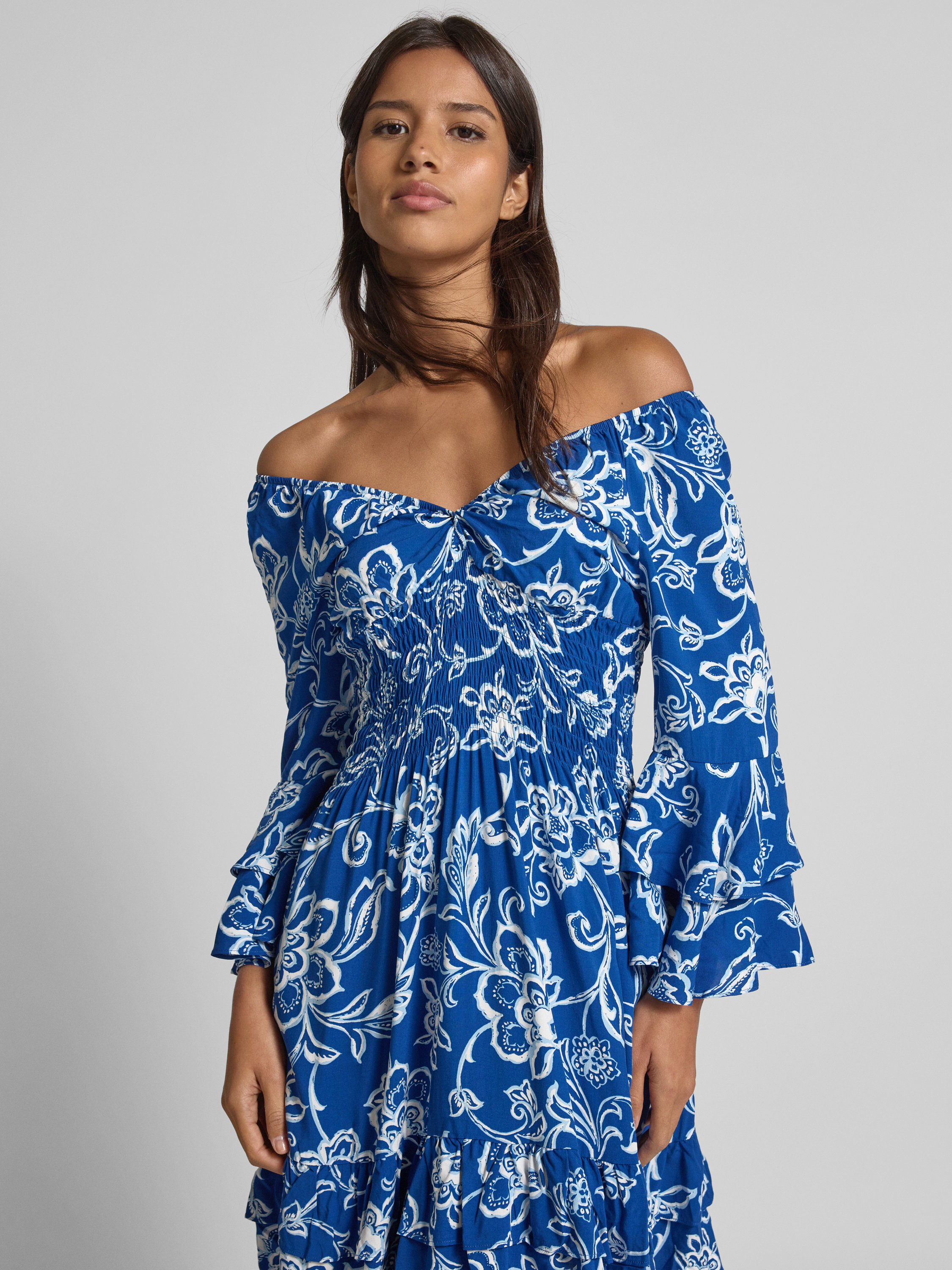 Das Minikleid von Apricot verbindet feminine Eleganz mit einem taillierten Schnitt und einem V-Ausschnitt, der für eine schmeichelhafte Silhouette sorgt. Die reine Viskose verleiht dem Kleid ein angenehm leichtes Tragegefühl, während Volants und Smok-Details dem Design eine besondere Note geben. Ideal für stilvolle Anlässe.