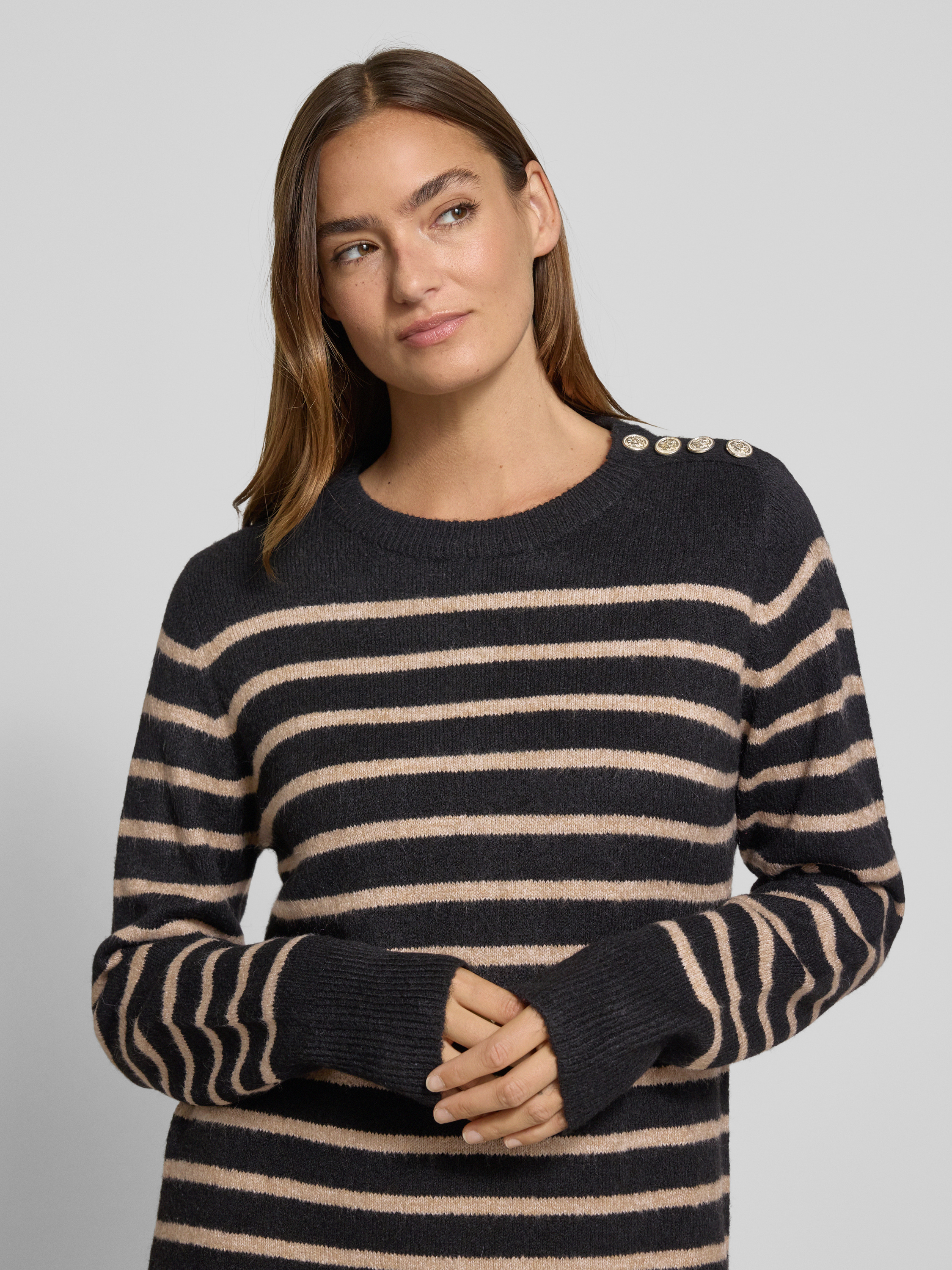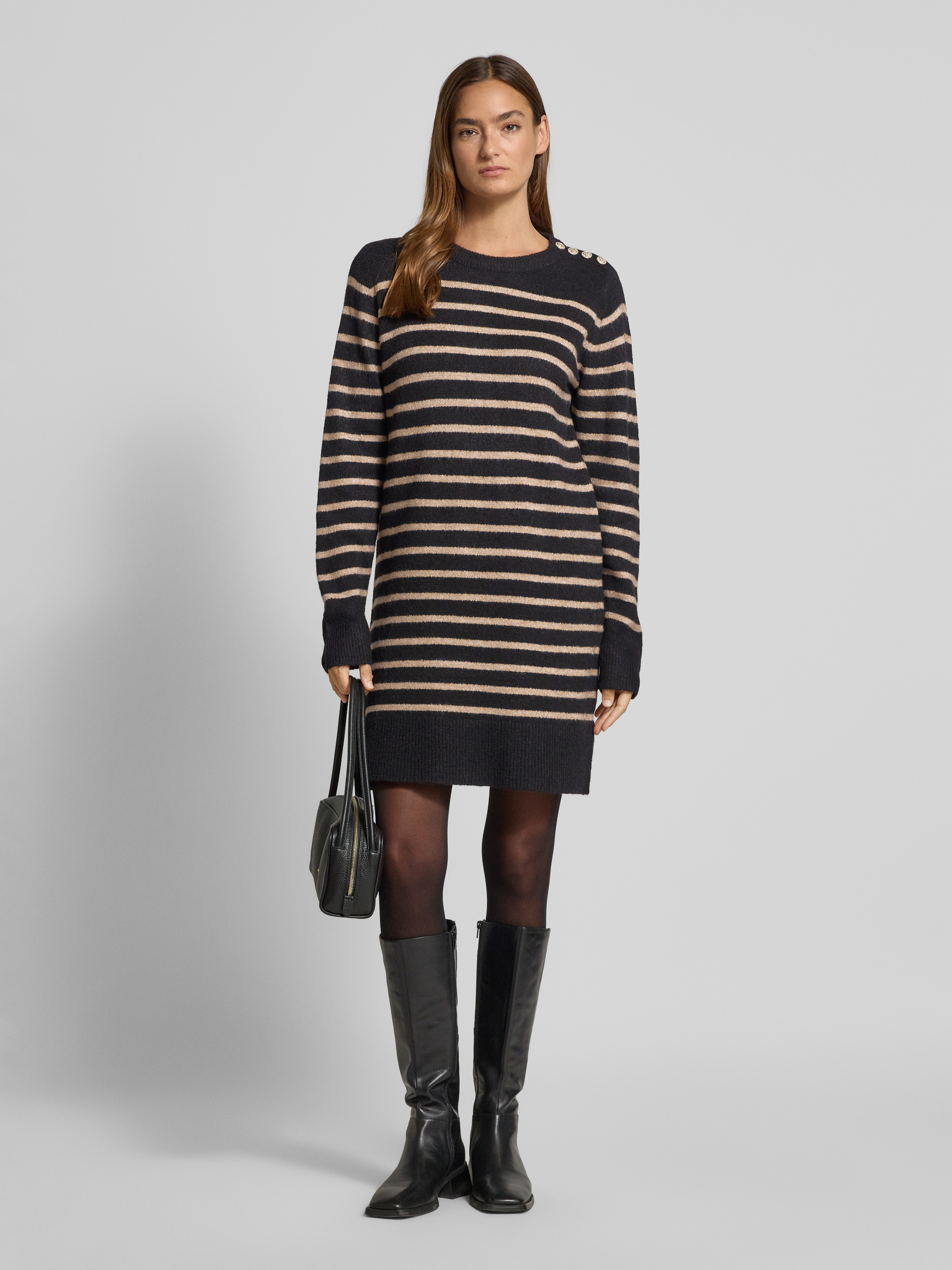 Das Damen Regular Fit Kleid von Apricot zeichnet sich durch einen elastischen Material-Mix aus, der Bewegungsfreiheit unterstützt und angenehm auf der Haut liegt. Dank Strick-Optik, Knielänge und langärmeligem Design lässt sich der Look vielseitig gestalten. Zierknöpfe und Rundhalsausschnitt runden das Gesamtbild harmonisch ab.