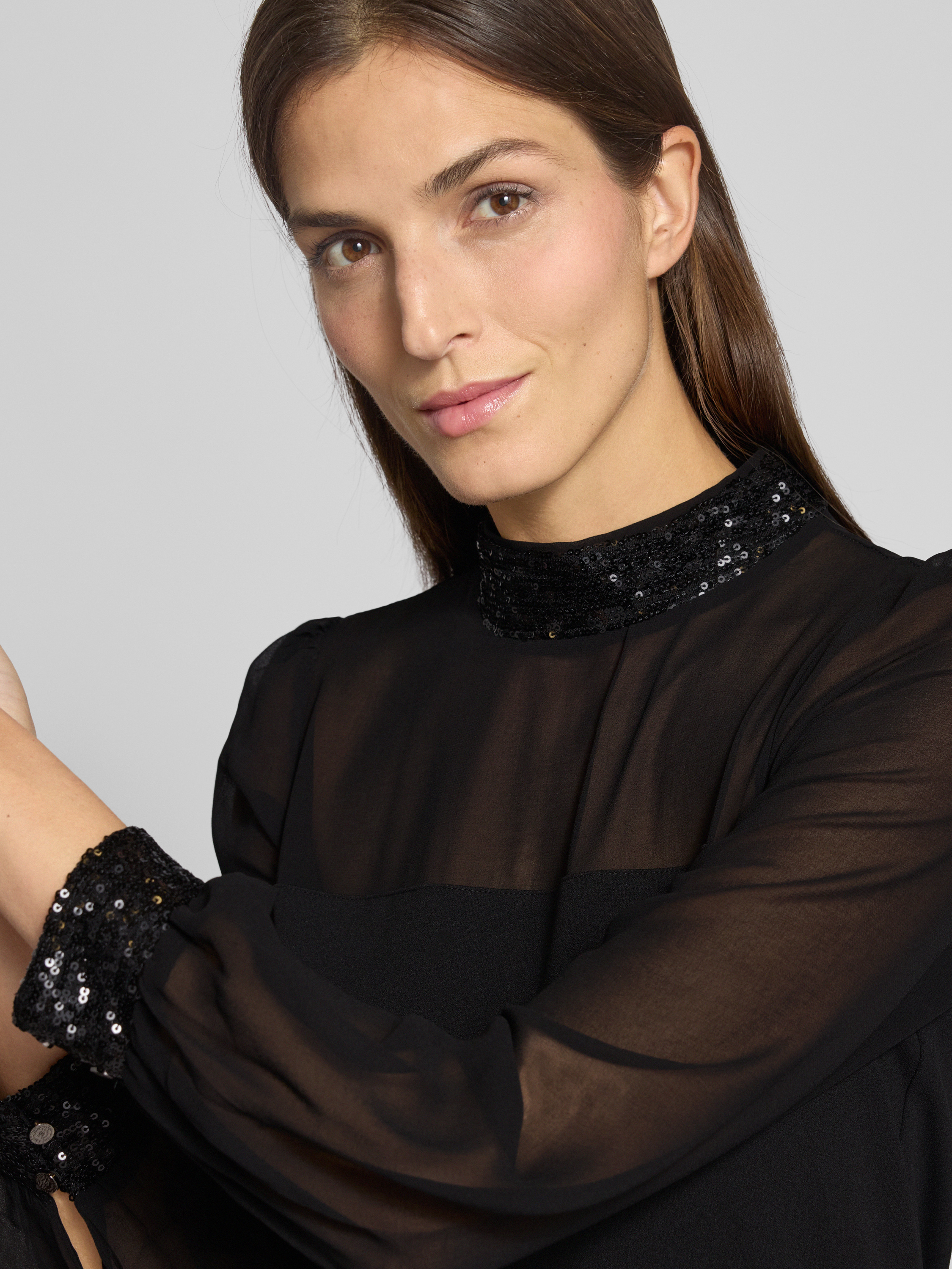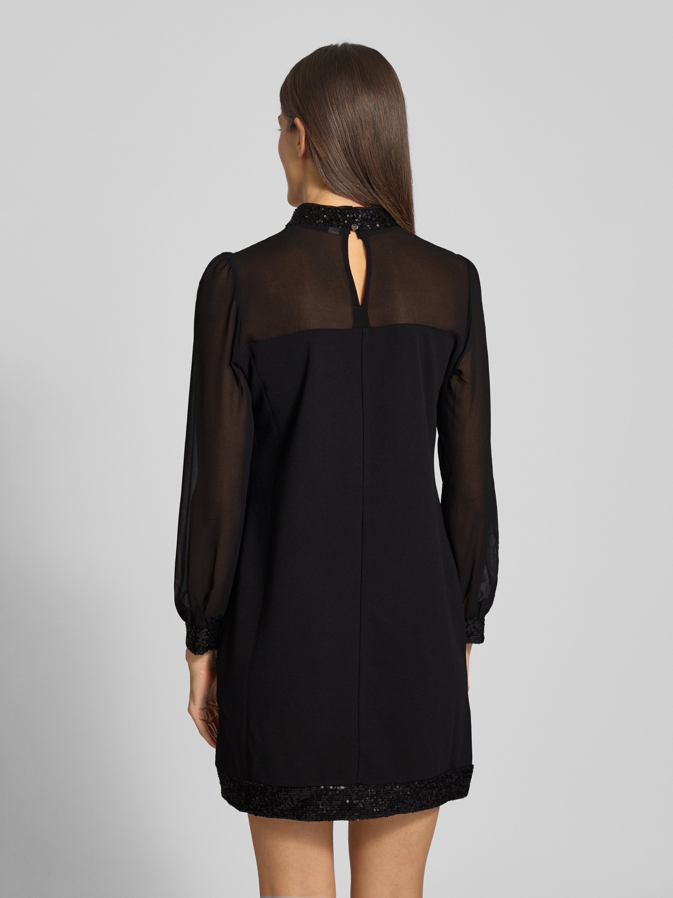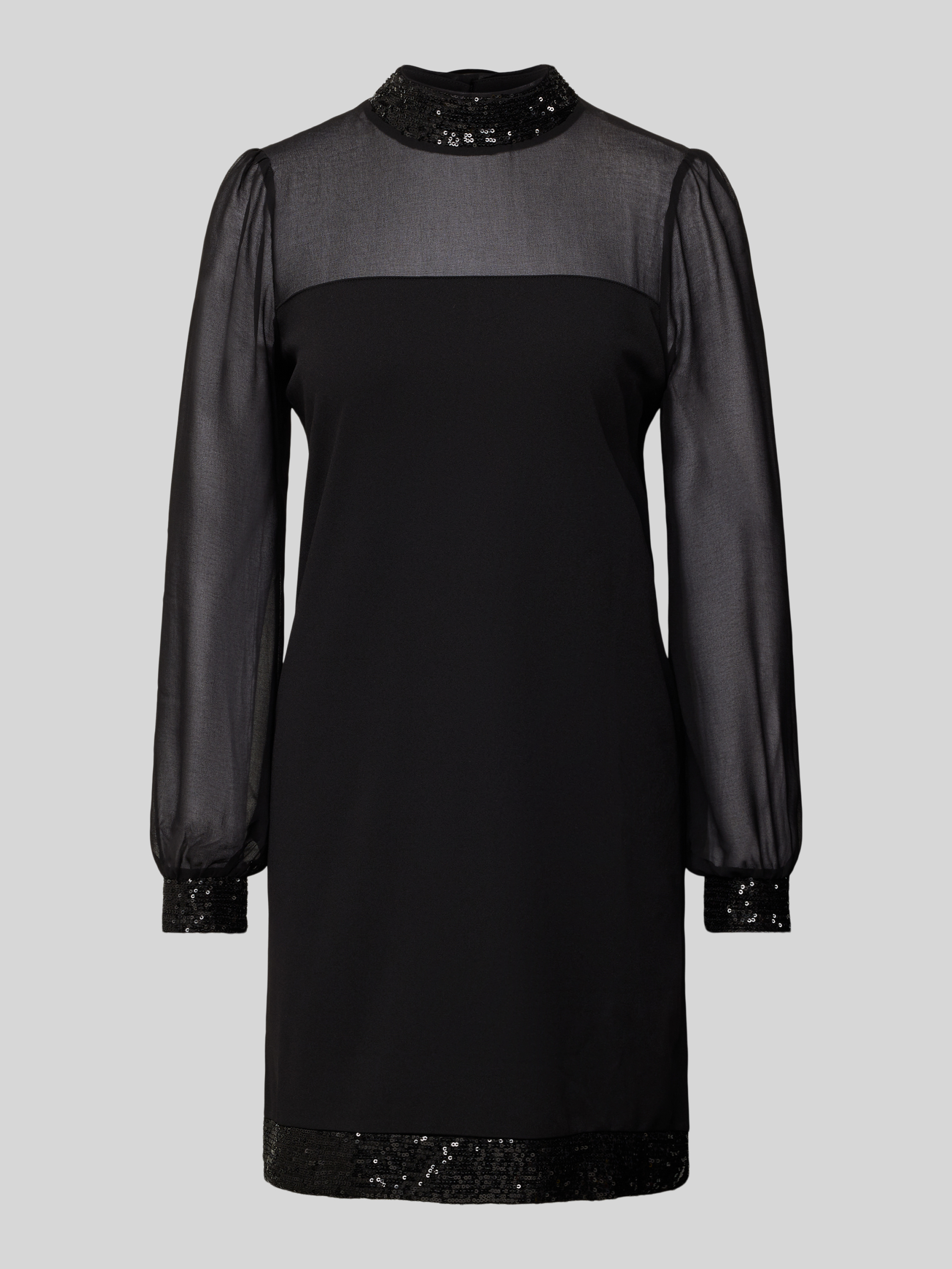 Das Damen Minikleid von Apricot kombiniert einen geraden Schnitt mit einem semitransparenten Material-Mix und Stretch-Anteil, wodurch es angenehm zu tragen ist. Pailletten sorgen dezent für optische Akzente, während der Stehkragen dem Look eine moderne Note verleiht. Durch die luftige Beschaffenheit eignet sich das Minikleid für vielseitige Anlässe.