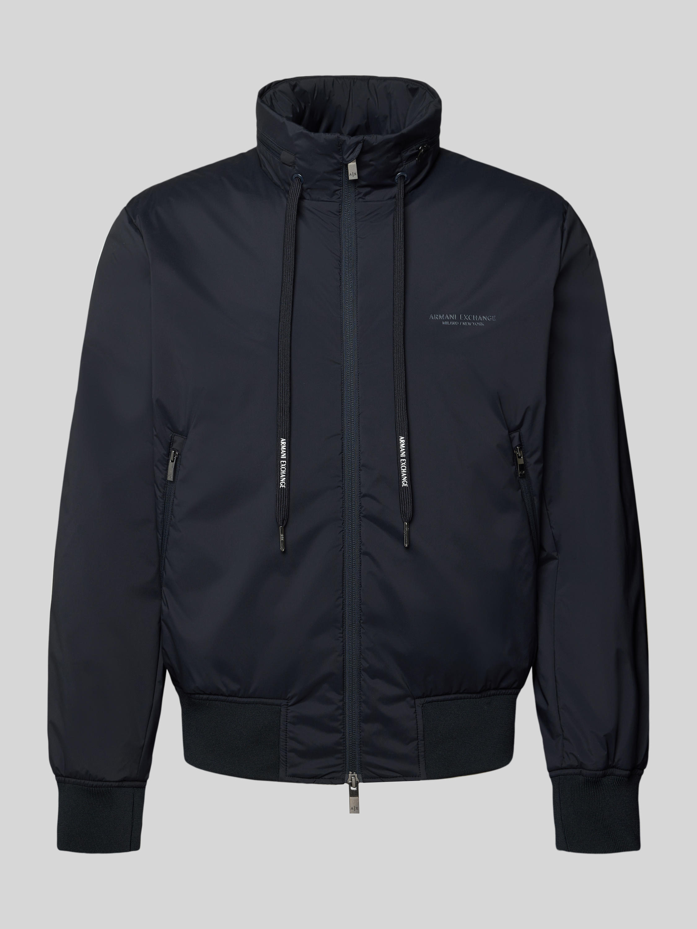 Der Herren Blouson mit Stehkragen von ARMANI EXCHANGE sitzt im Regular Fit angenehm locker und sorgt durch den Material-Mix mit Stretch-Anteil für Bewegungsfreiheit im Alltag. Mit dem Tunnelzug lässt sich die Passform individuell anpassen, während gerippte Abschlüsse für einen sportiven Akzent stehen. Dezente Label-Details runden das Erscheinungsbild ab und machen den Blouson mit Stehkragen vielseitig kombinierbar.