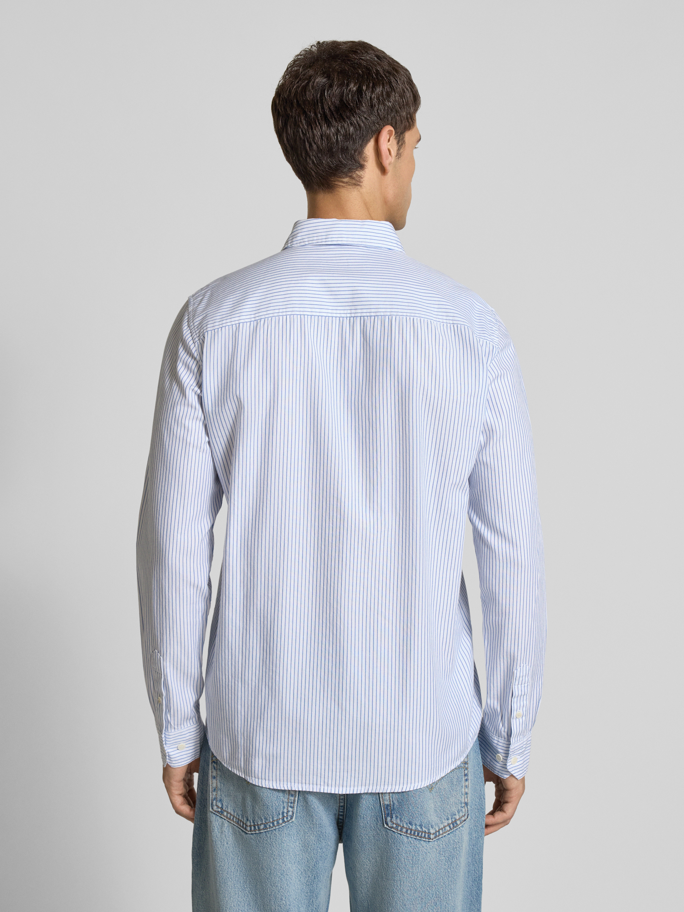 Das Herren Freizeithemd von Armedangels, Modell 'Quaasa', aus reiner Baumwolle, bietet durch den Regular Fit eine angenehme Passform. Der Button-Down-Kragen verleiht dem gestreiften Allover-Muster eine dezente Eleganz. Leicht abgerundet, eignet es sich ideal für entspannte Freizeitaktivitäten.