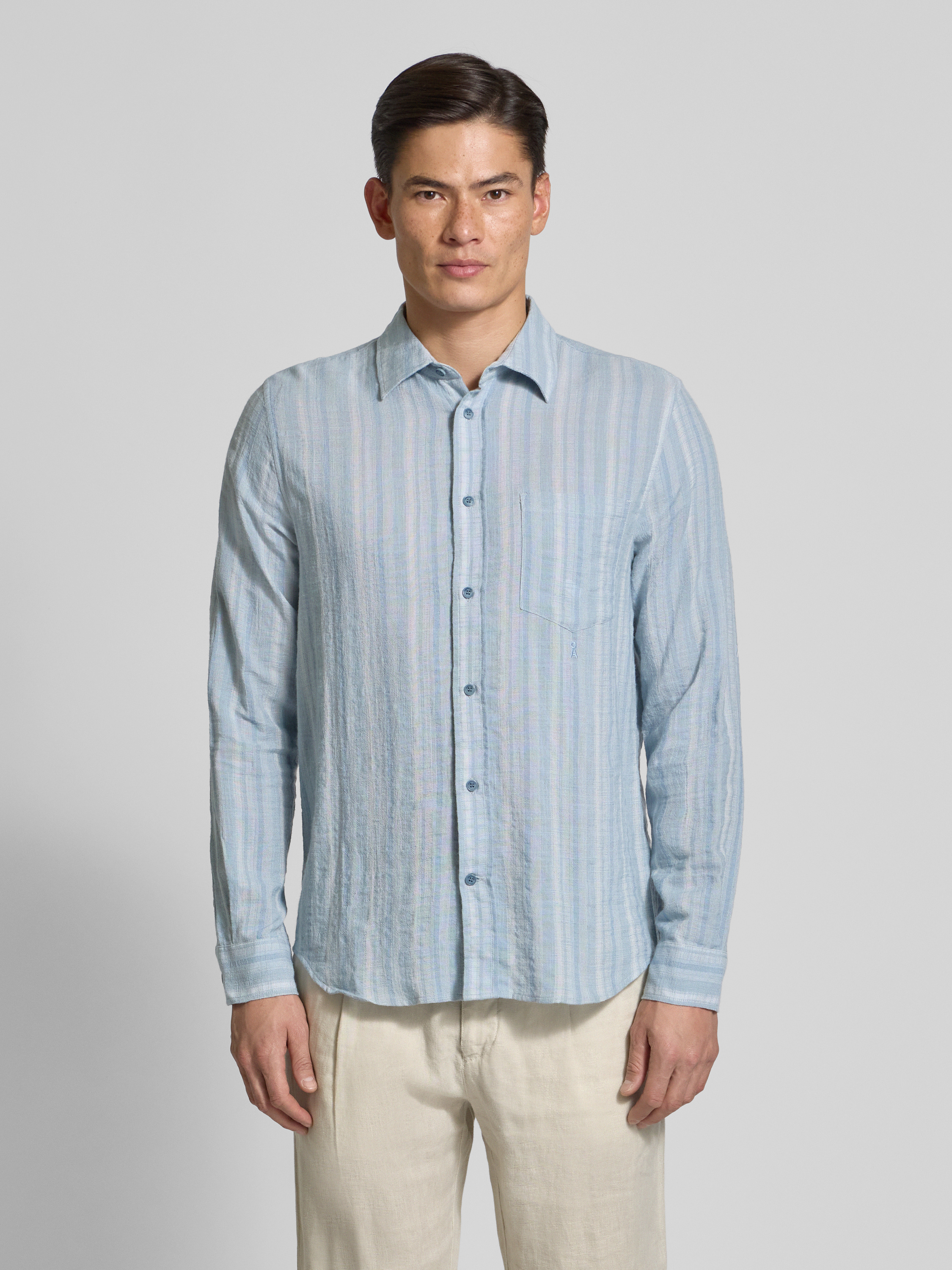 Das Relaxed Fit Freizeithemd von Armedangels vereint lässigen Stil mit Komfort und bietet durch den Baumwoll-Viskose-Mix ein angenehm weiches Tragegefühl. Ein gestreiftes Allover-Muster verleiht dem Hemd einen besonderen Look, während der Kentkragen und die Brusttasche klassische Details hinzufügen. Ideal für entspannte Tage.