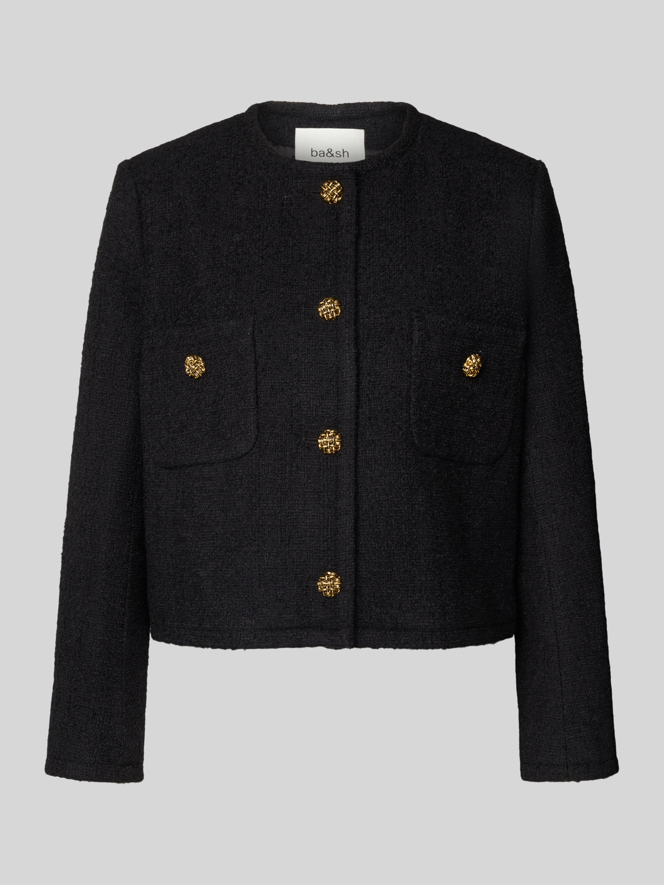 Der Damen Blazer von Bash, Modell Meredith, verbindet einen angenehmen Regular Fit mit einem sorgfältigen Baumwoll-Mix und feinem Lanawoll-Anteil. Die klassische Silhouette wird durch Brusttaschen und einen Rundhalsausschnitt ergänzt, wodurch sich vielseitige Kombinationsmöglichkeiten ergeben. So entsteht ein Kleidungsstück, das im Alltag durch Komfort überzeugt.