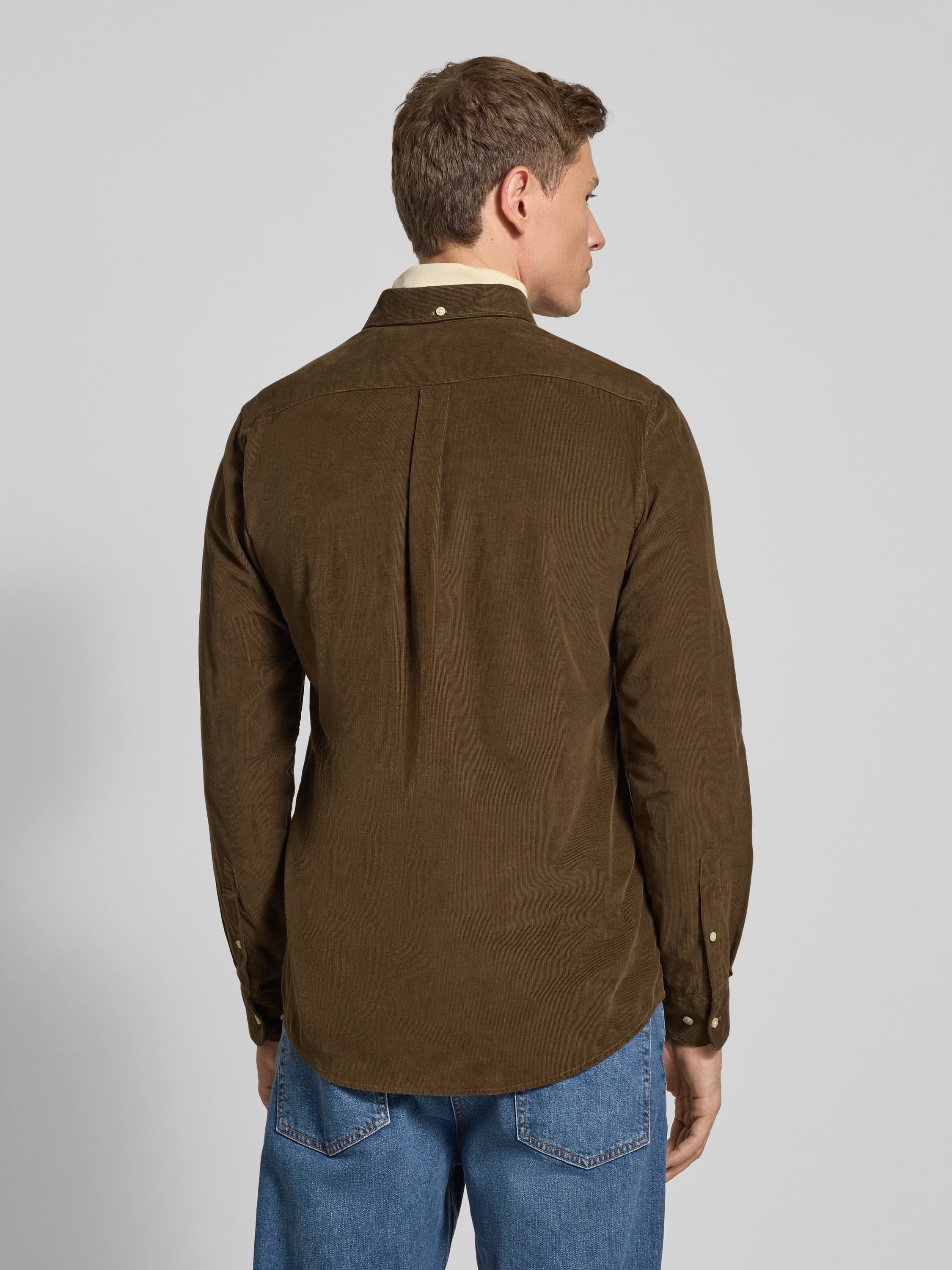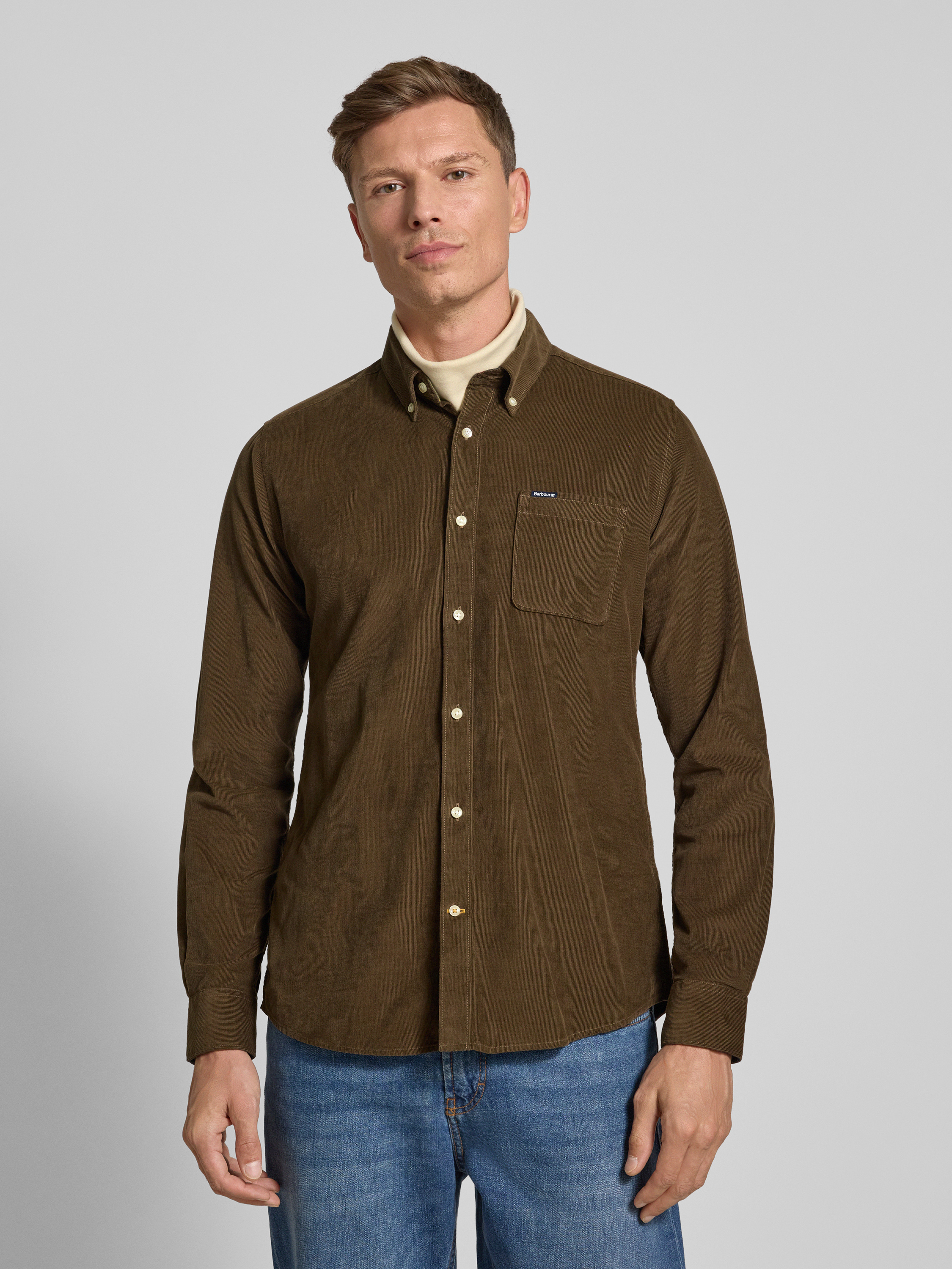 Das Herrenhemd von Barbour mit schmaler Schnittführung legt sich angenehm an den Körper und bringt durch die Verarbeitung aus reiner Baumwolle im Cord-Stil eine markante Struktur ein. Dank des klassischen Button-Down-Kragens und langer Ärmel wirkt das Hemd vielseitig kombinierbar. Die dezente Brusttasche ergänzt den lässigen Charakter.