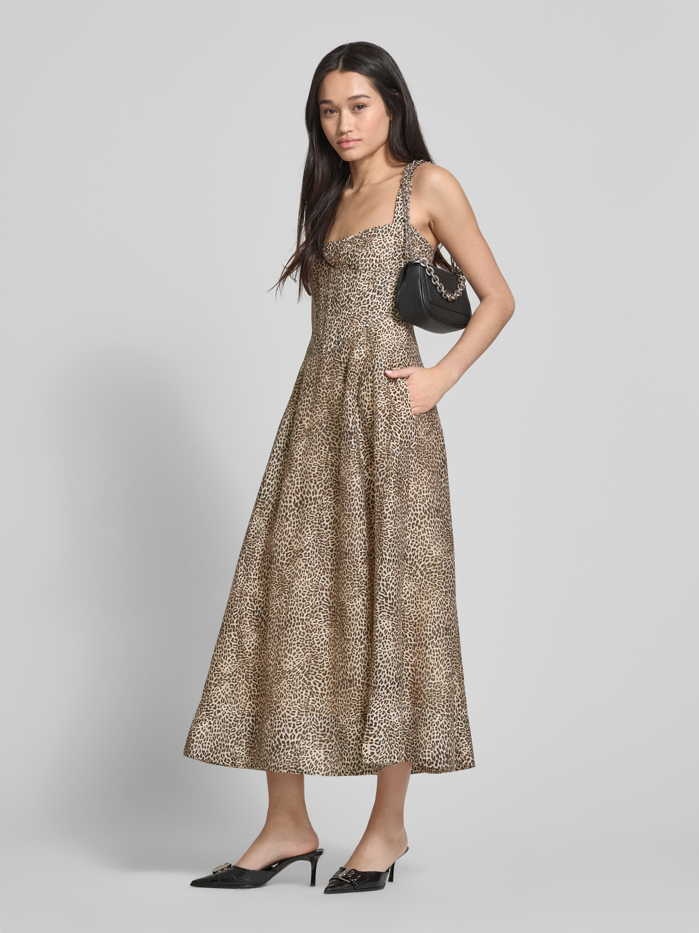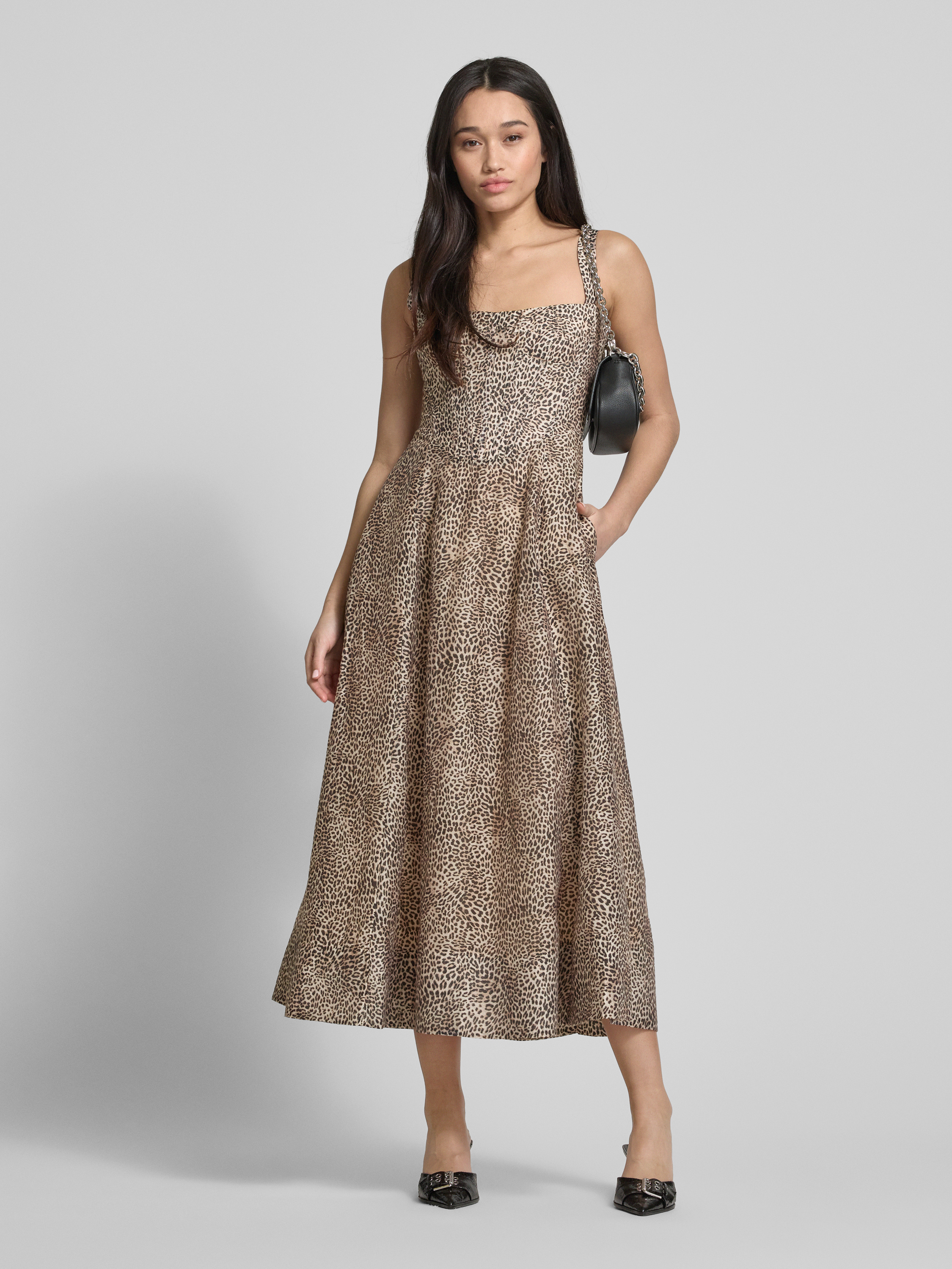 BardotCocktailkleid aus Lyocell-Mix mit Leinen-Anteil Modell 'LILAH' in camel