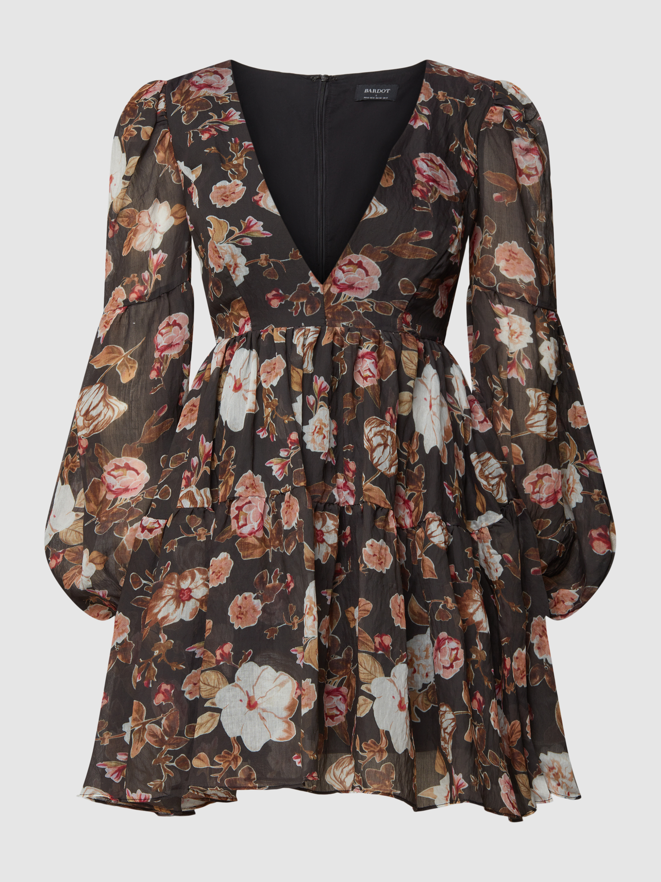 Das Damen Minikleid von Bardot, Modell 'REIGN', vereint einen eleganten V-Ausschnitt mit einem leicht ausgestellten Schnitt, der sich ideal für sommerliche Anlässe eignet. Der Lyocell-Mix sorgt für ein angenehmes Tragegefühl. Das florale Muster setzt zudem verspielte Akzente.