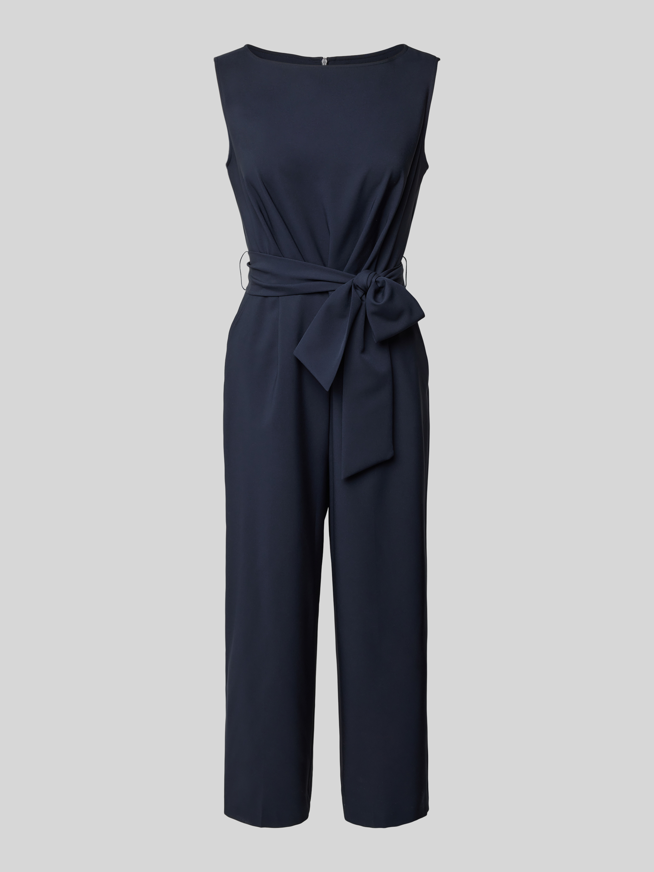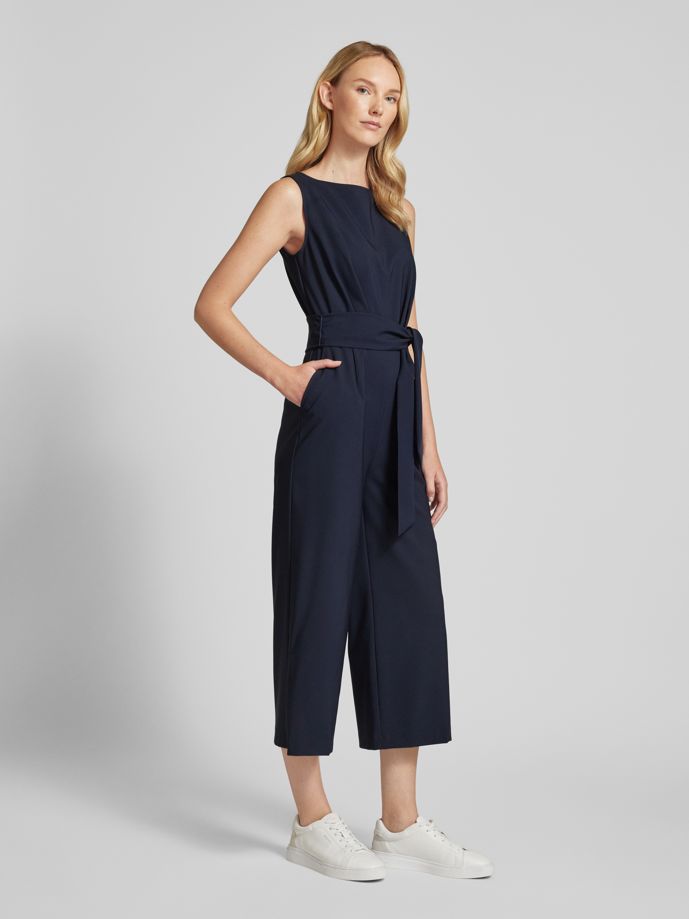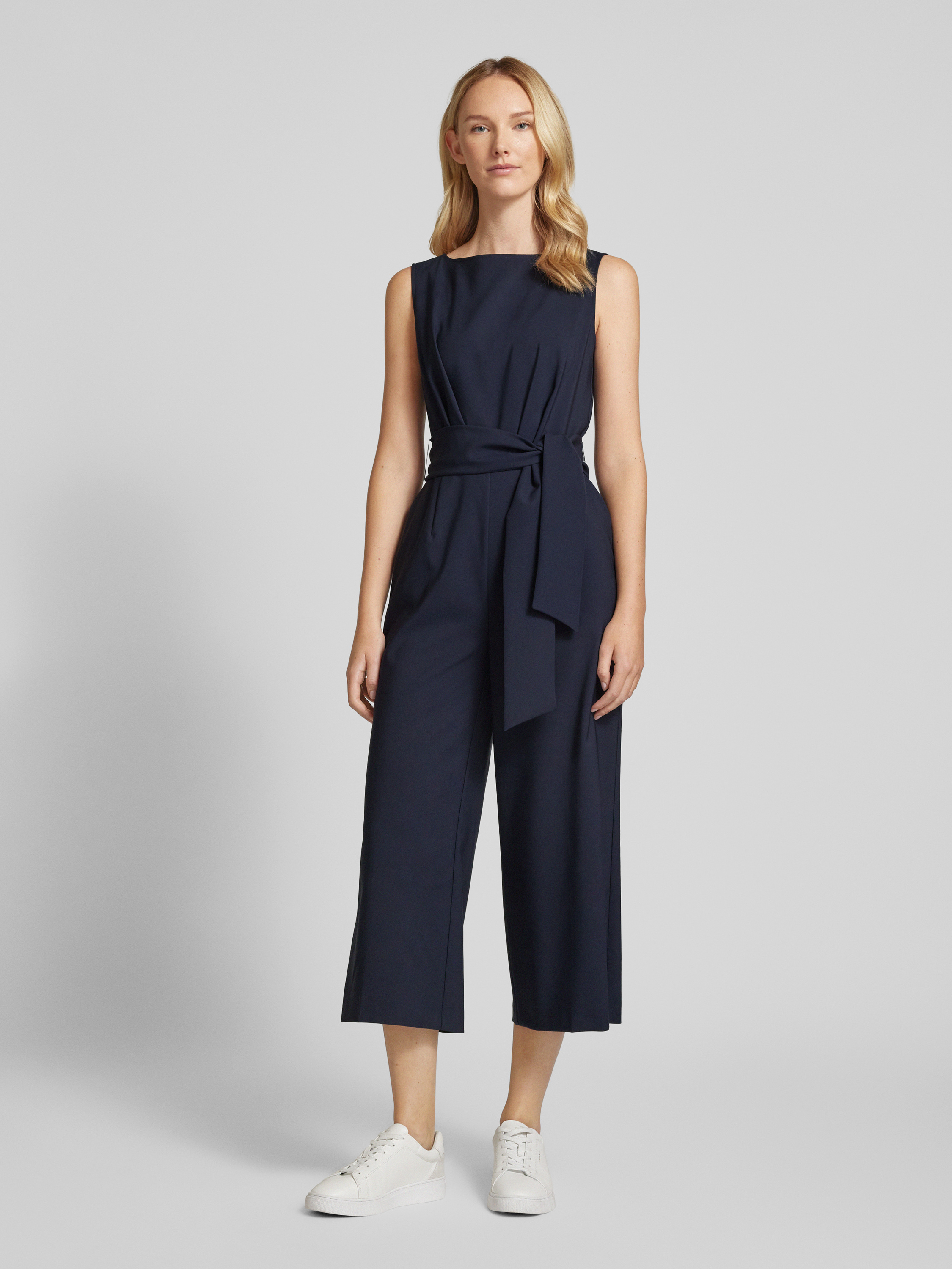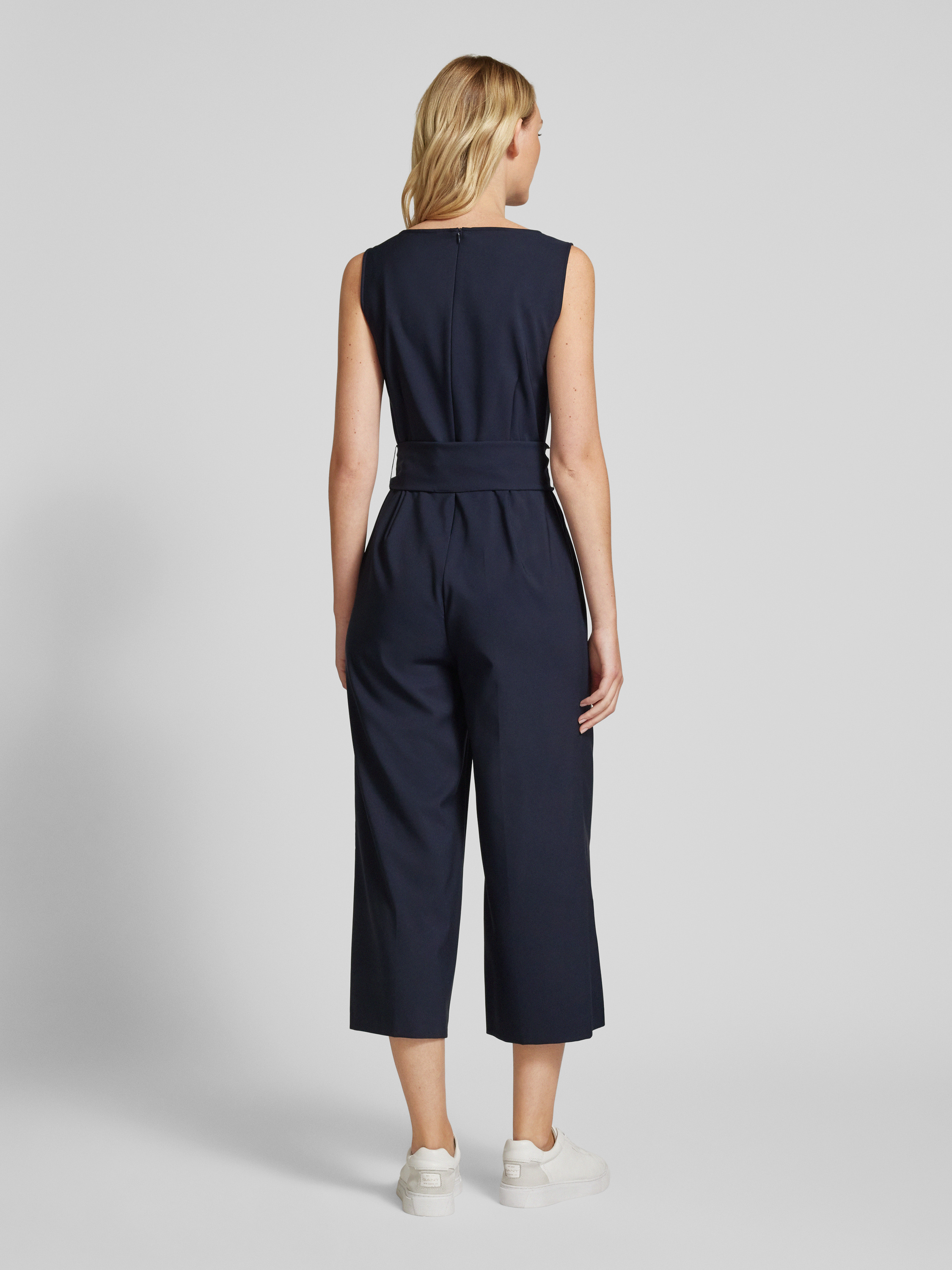 Der Jumpsuit von Betty Barclay kombiniert geschickt einen Material-Mix mit Stretch-Anteil, was Bewegungsfreiheit und Komfort gewährleistet. Der taillierte Schnitt und der Bindegürtel betonen die Figur auf dezente Weise. Das ärmellose Design und der Rundhalsausschnitt verleihen dem Outfit eine zeitlose Eleganz.
