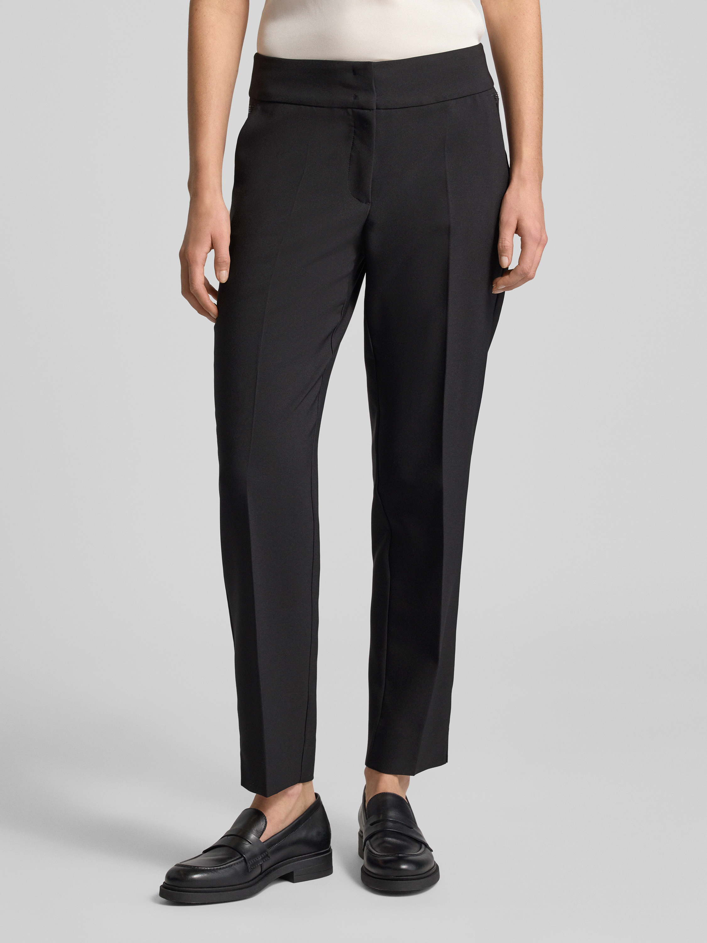 Die Stoffhose von Betty Barclay zeigt sich im Regular Fit, der für eine bequeme und zeitlose Silhouette sorgt. Dank des Material-Mix mit Stretch-Anteil bleibt die Hose angenehm flexibel und passt sich den Bewegungen an. Mit Bügelfalten und Paspeltaschen am Gesäß lässt sich ein gepflegter Look unkompliziert umsetzen.