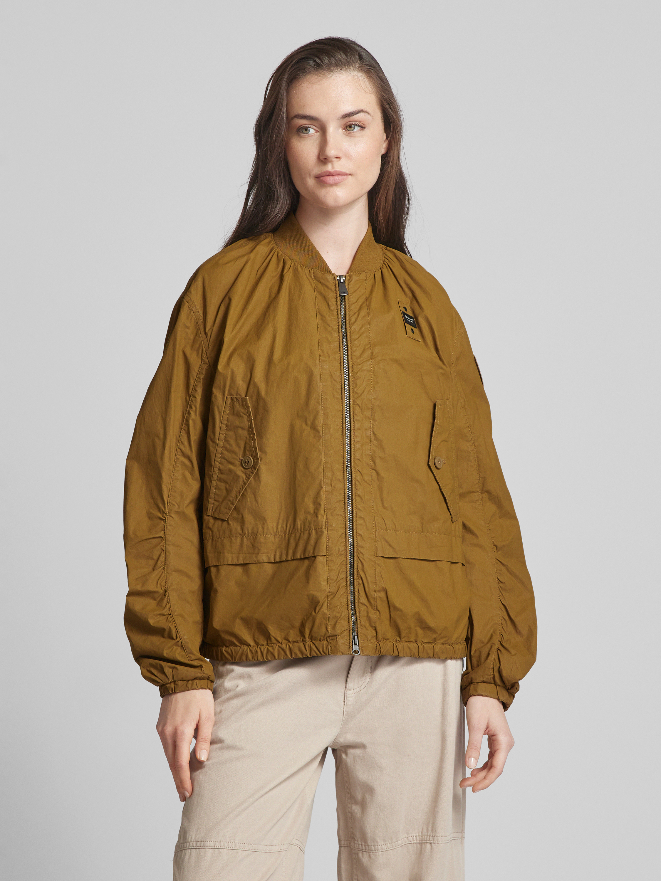 Blauer UsaJacke mit Label-Detail in khaki