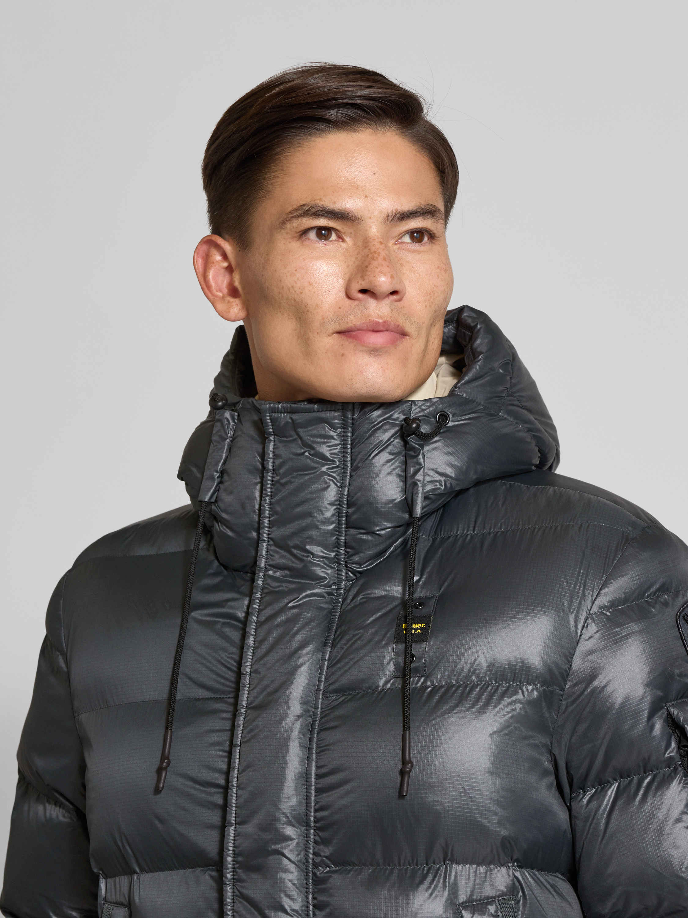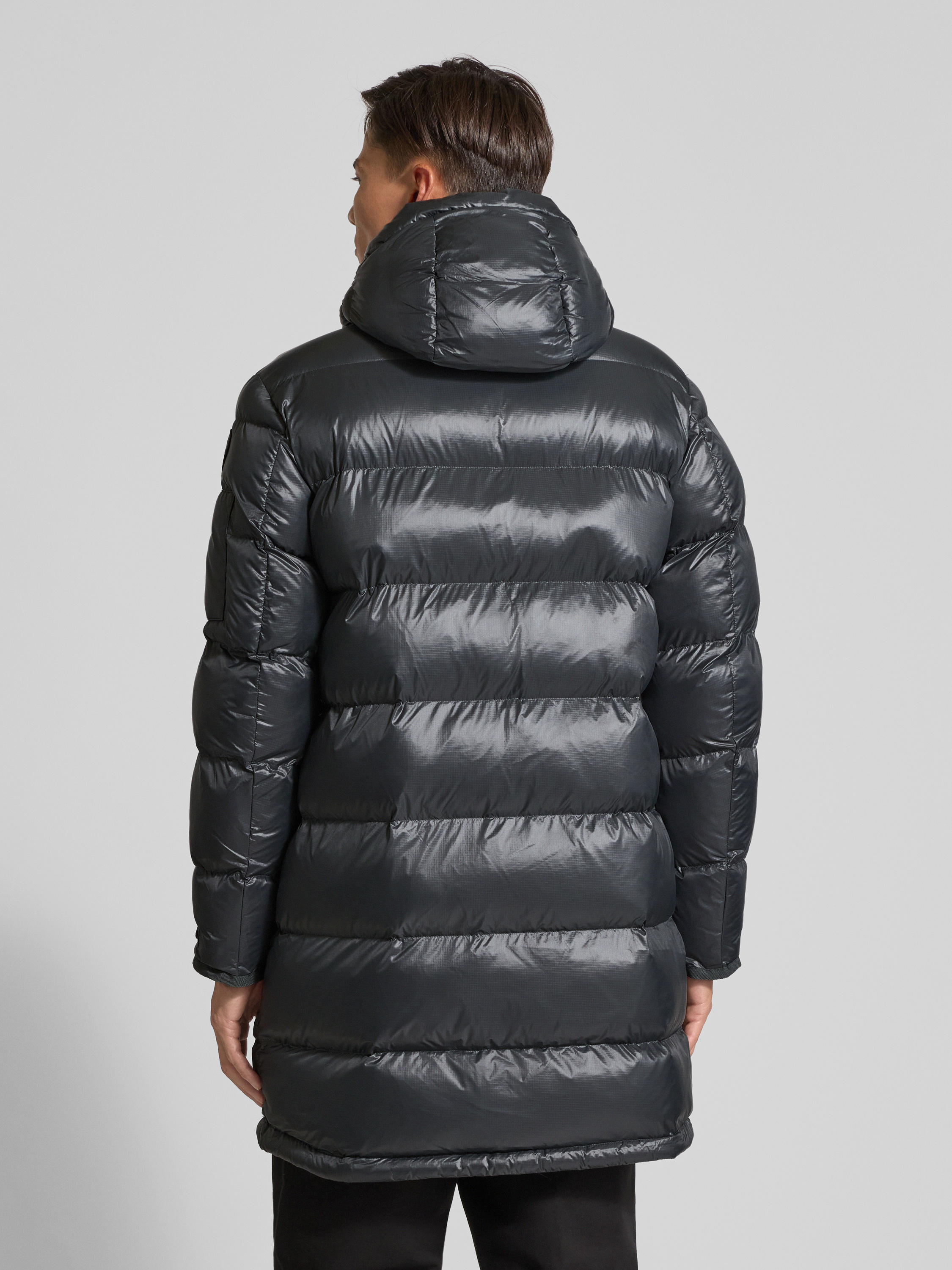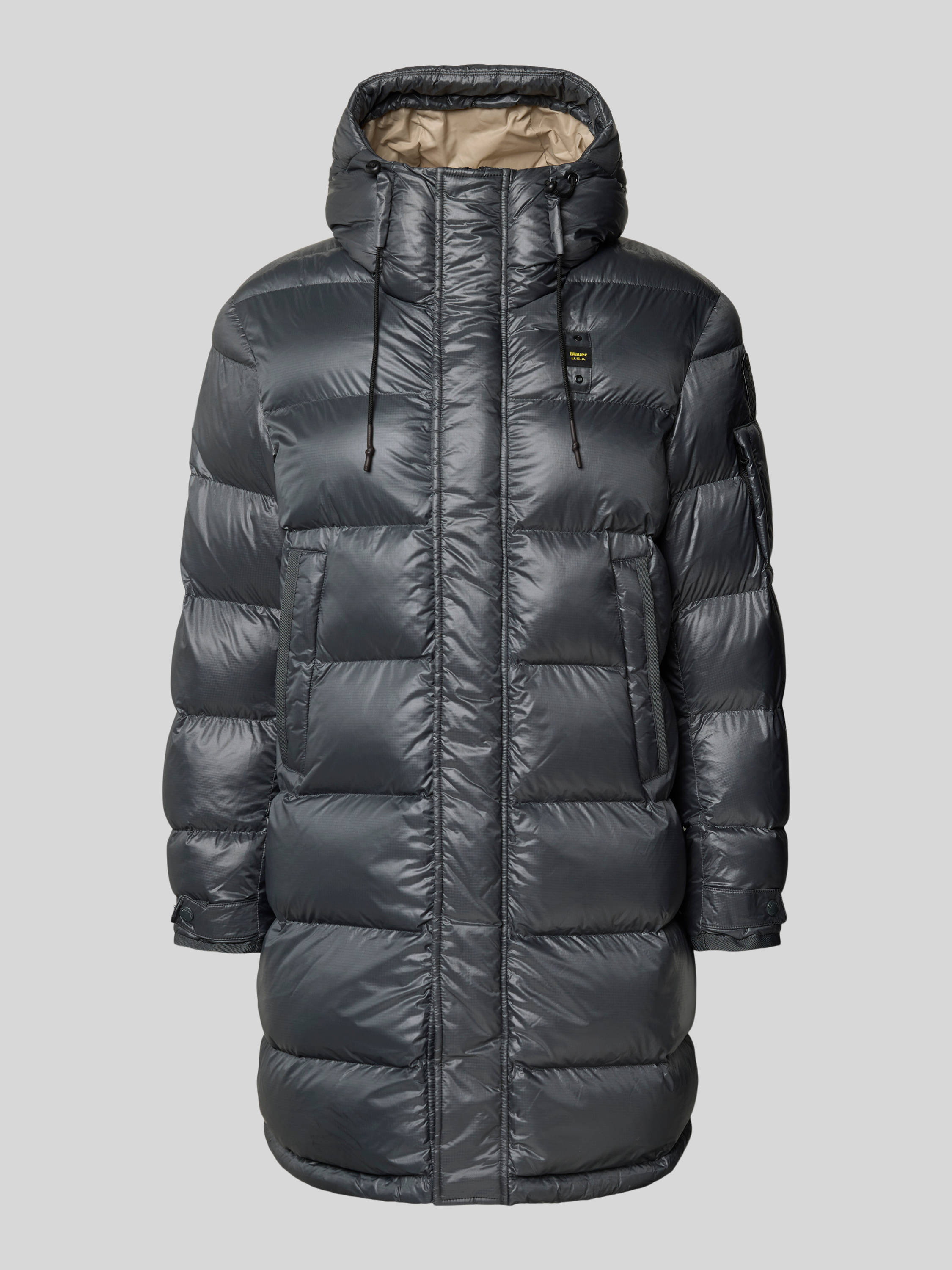 Blauer UsaRegular Fit Steppmantel mit Logo-Applikation Modell 'Aldrich' in graphit