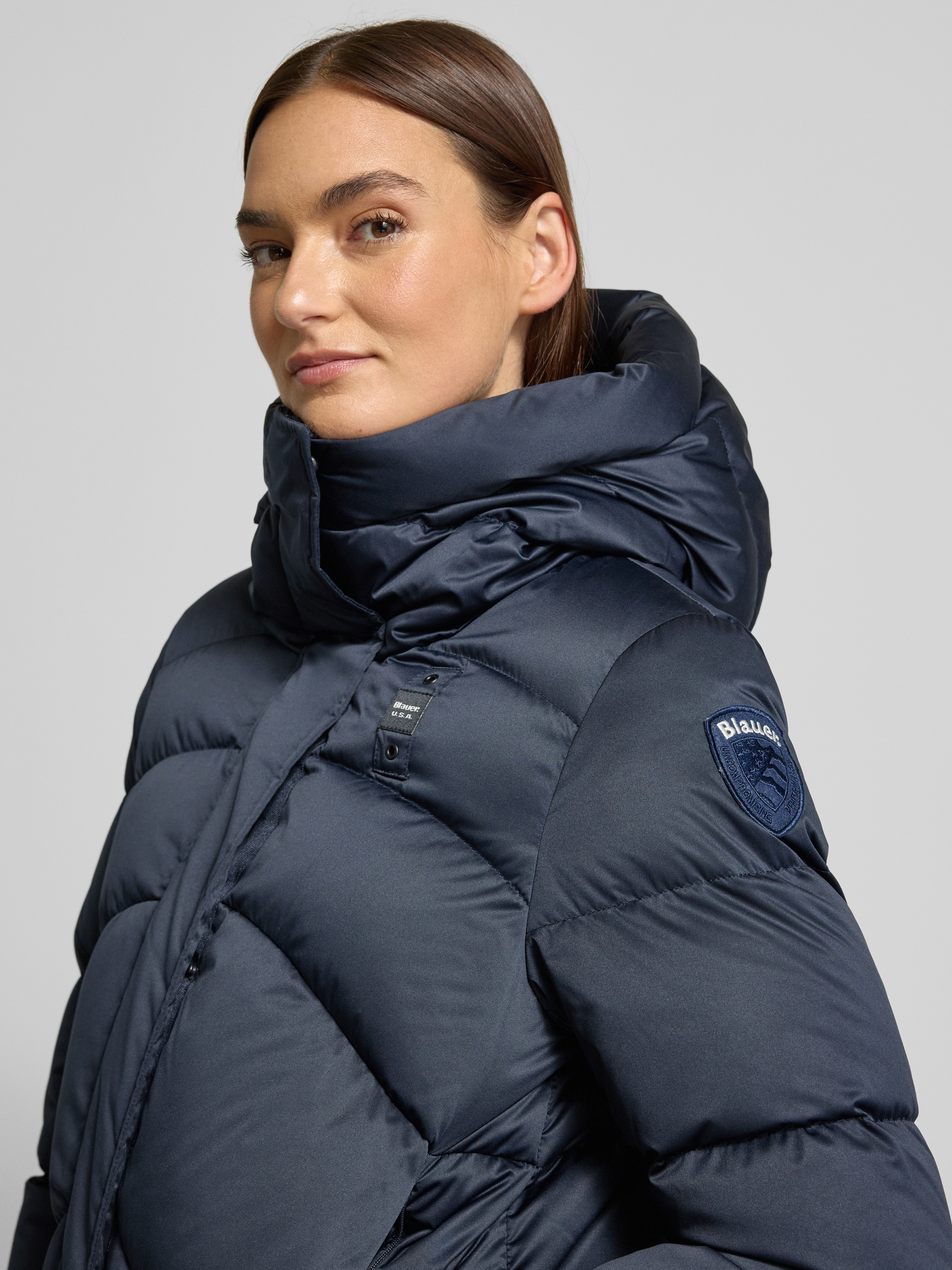 Blauer UsaSteppmantel mit Kapuze Modell 'OPERA' in dunkelblau
