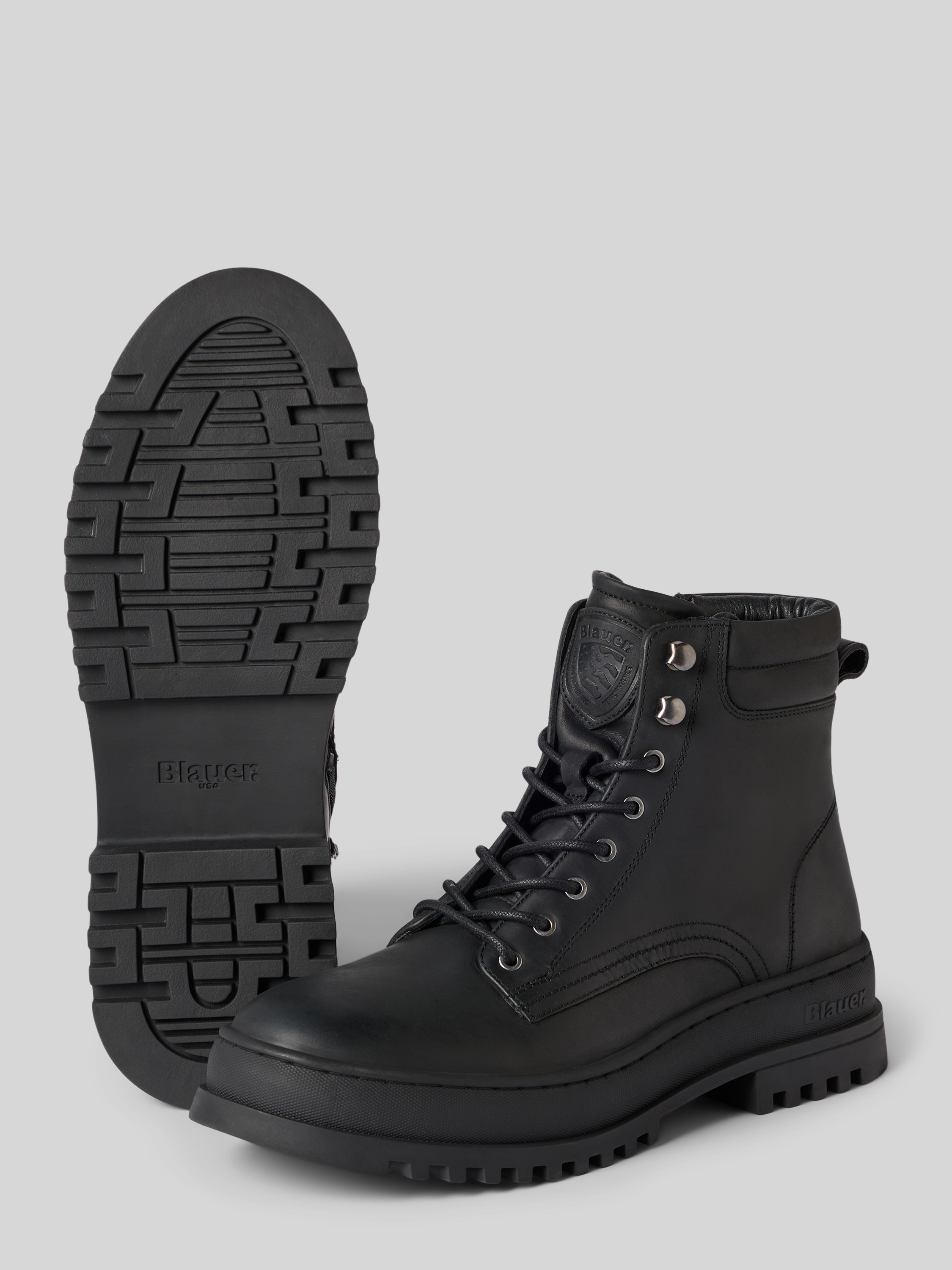 Der Herren Schnürstiefel IUKA von Blauer USA verbindet eine abgerundete Spitze mit einem markanten Label-Detail und unterstreicht so einen maskulinen Look. Durch die strukturierte Sohle erhält man zuverlässigen Halt, während der Schaft angenehm am Fuß anliegt. Das Modell eignet sich besonders für vielseitige Outfits im Alltag.
