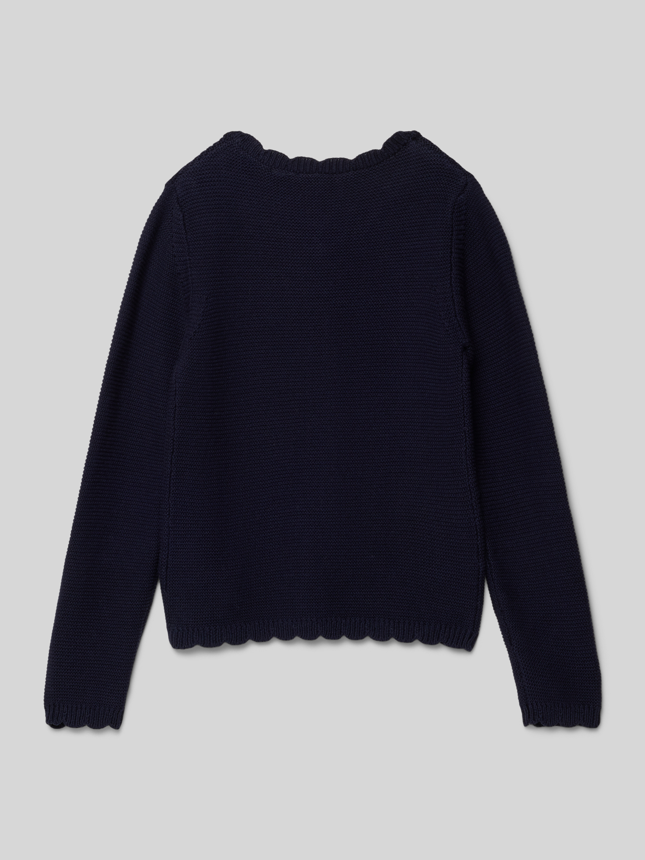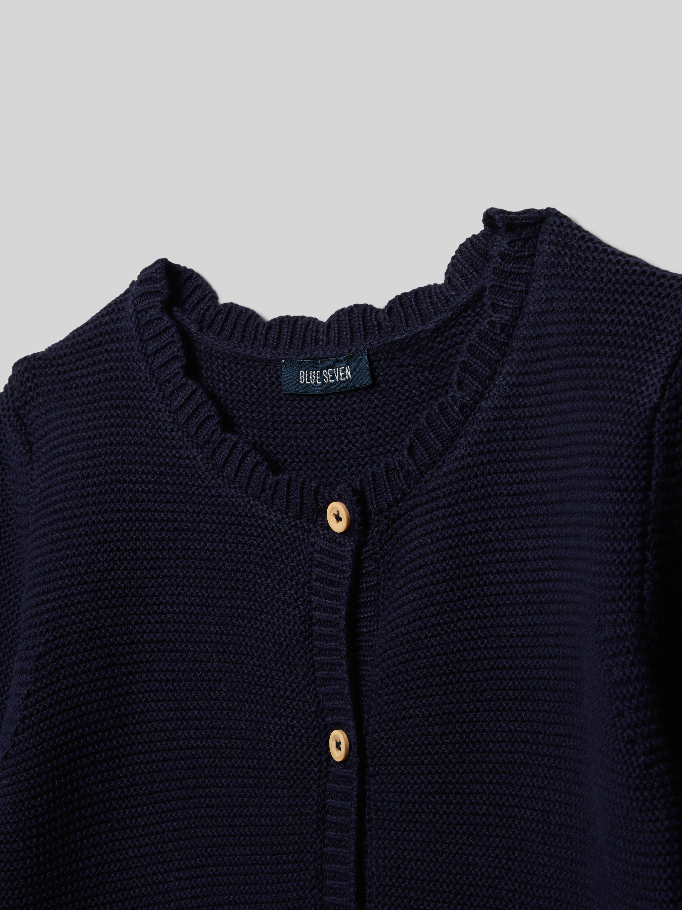 Die Kinderjacke von Blue Seven mit regulärer Passform legt sich angenehm an den Körper und sorgt durch die Strick-Optik für eine dezente Struktur im Alltag. Dank des Rundhalsausschnitts entsteht ein unkomplizierter Look, der vielseitig kombiniert werden kann. Durchdachte Abschlüsse am Ärmel unterstützen den angenehmen Sitz über den Tag hinweg.