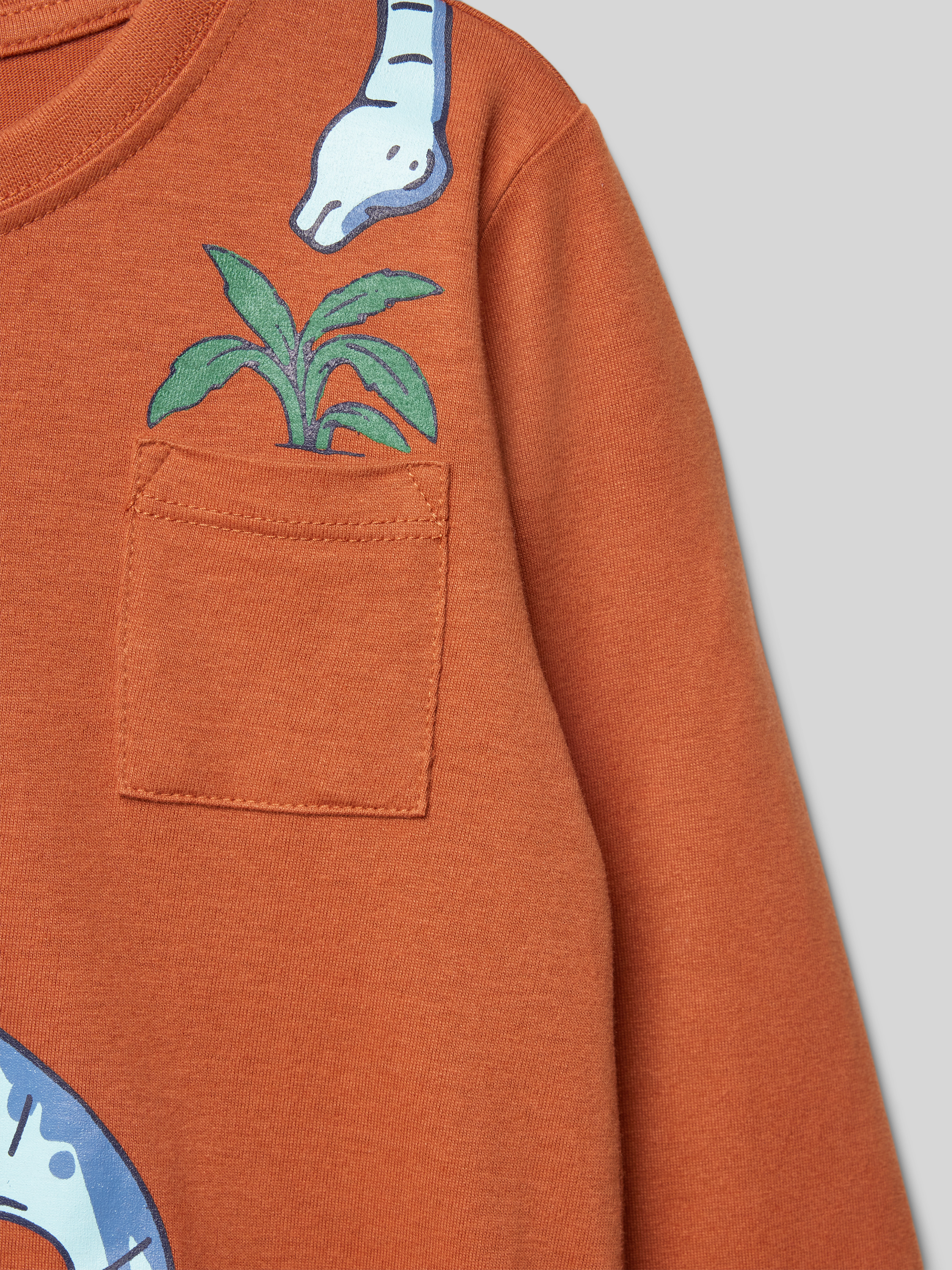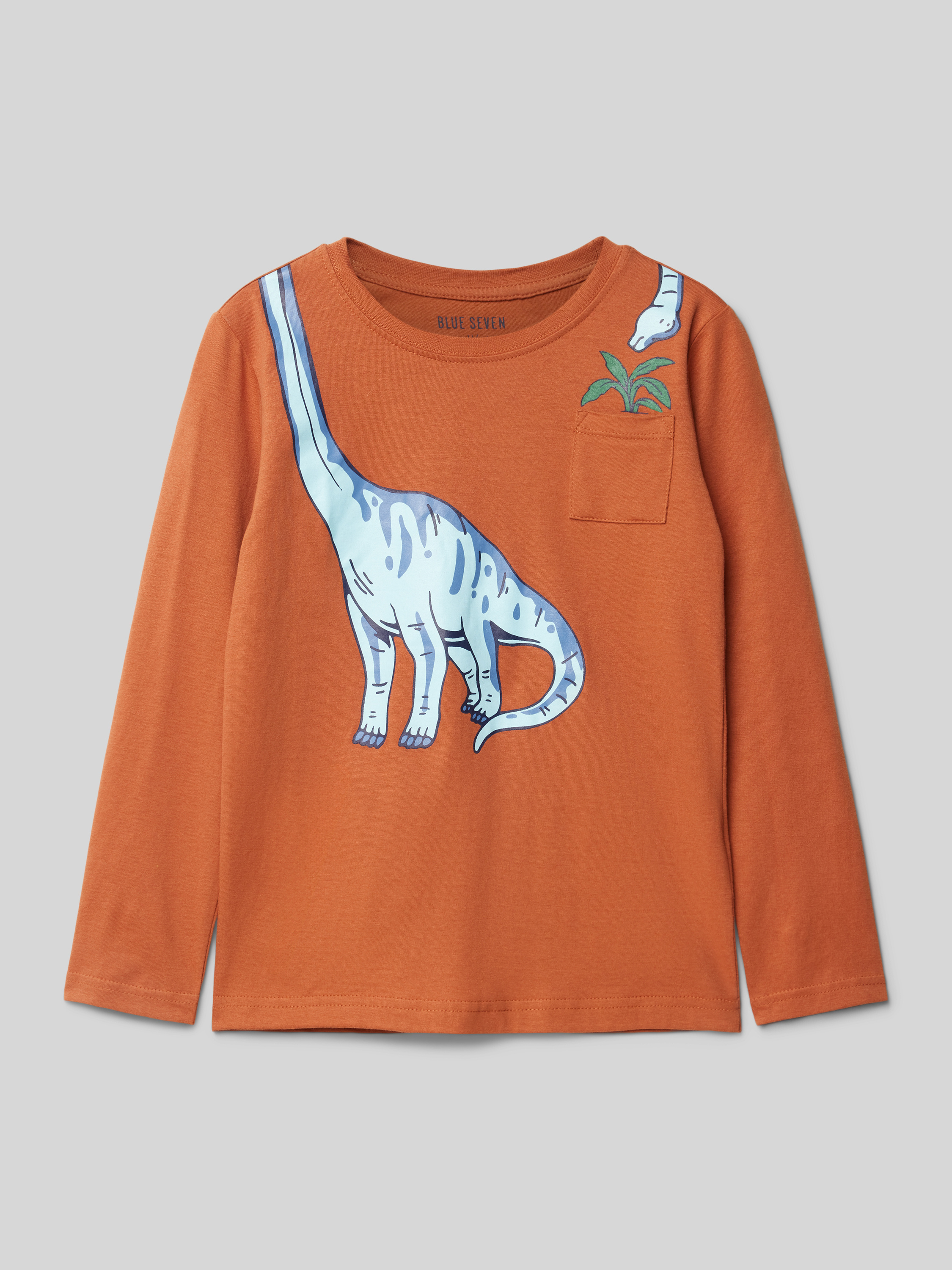 Blue SevenRegular Fit Langarmshirt mit Motiv-Print in cognac