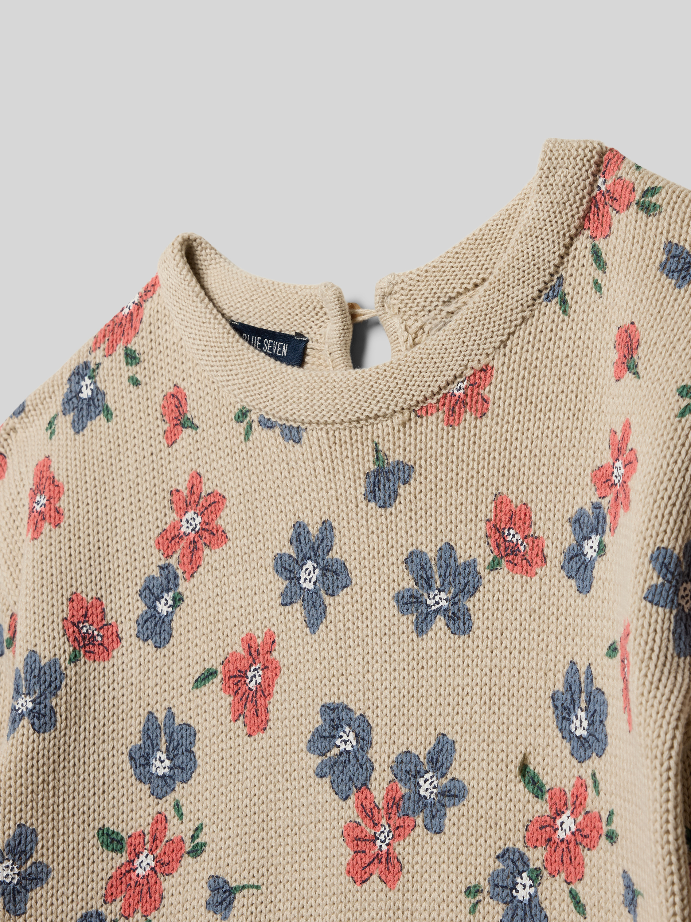 Der Kinderpullover von Blue Seven kommt in regulärer Passform und fühlt sich durch die reine Baumwolle angenehm weich auf der Haut an. Der florale Allover-Print sorgt für eine verspielte Note, während die Strick-Optik dem Modell eine klassische Ausstrahlung verleiht. Elastische Abschlüsse runden das Gesamtbild praktisch ab.
