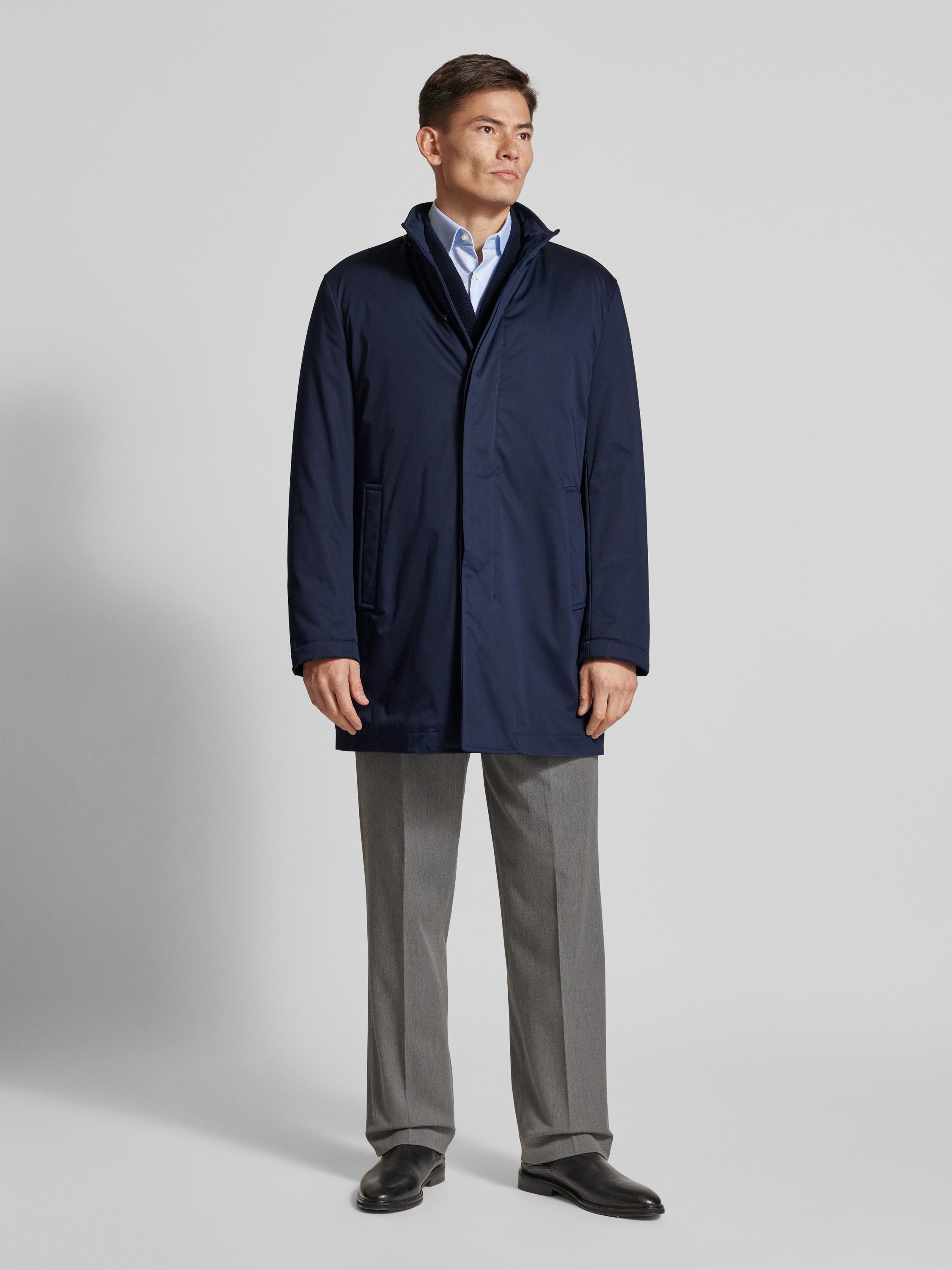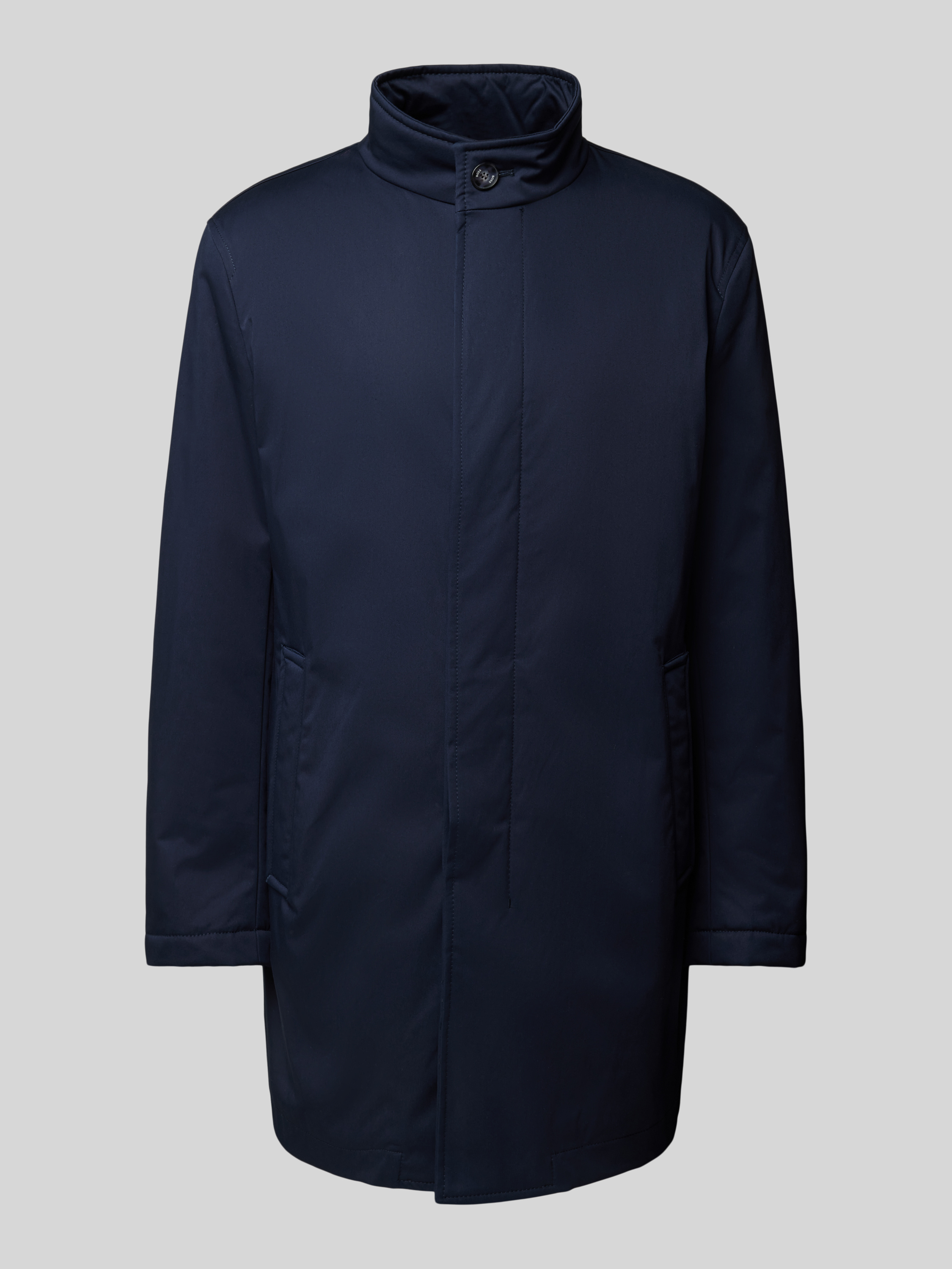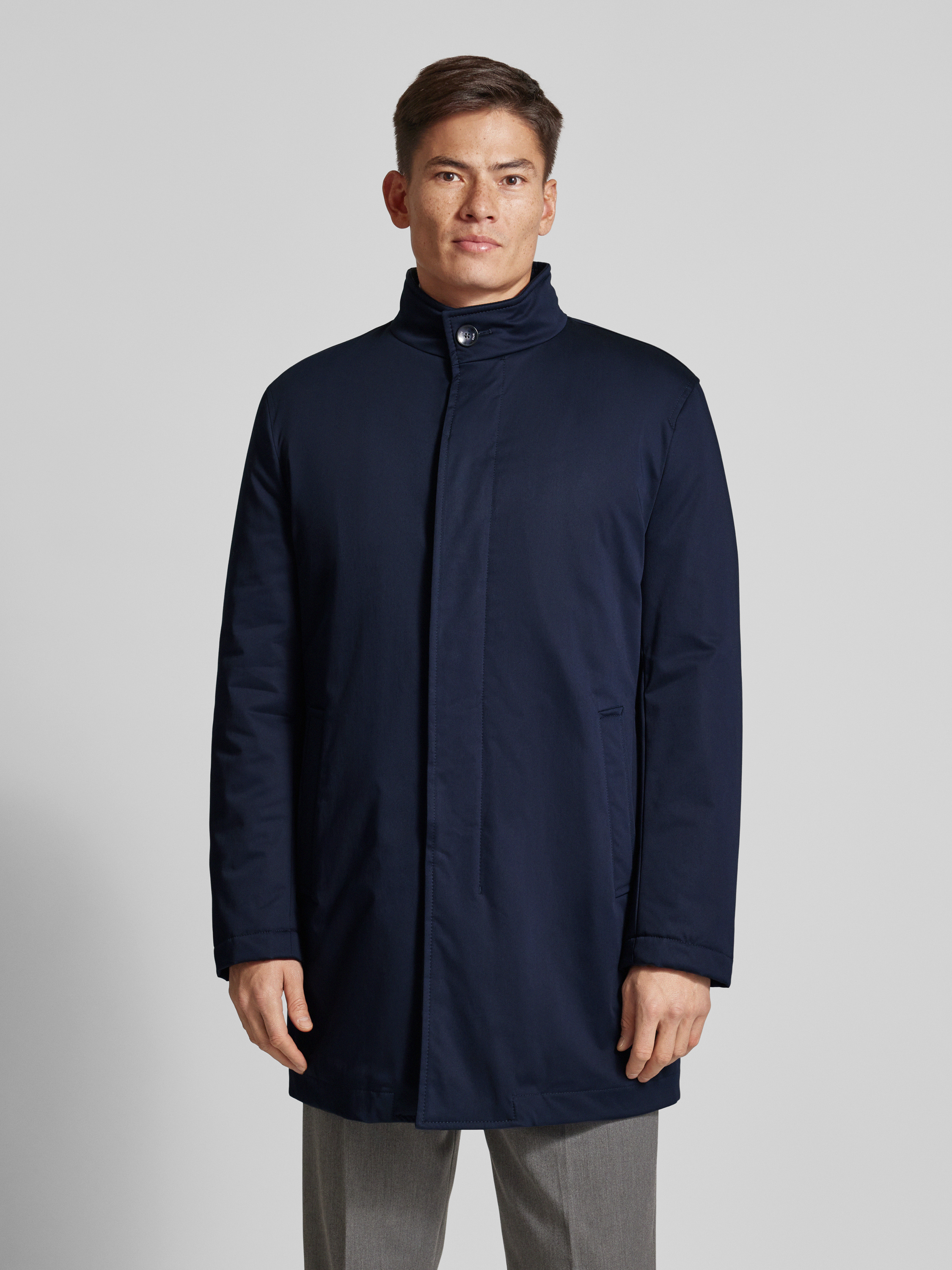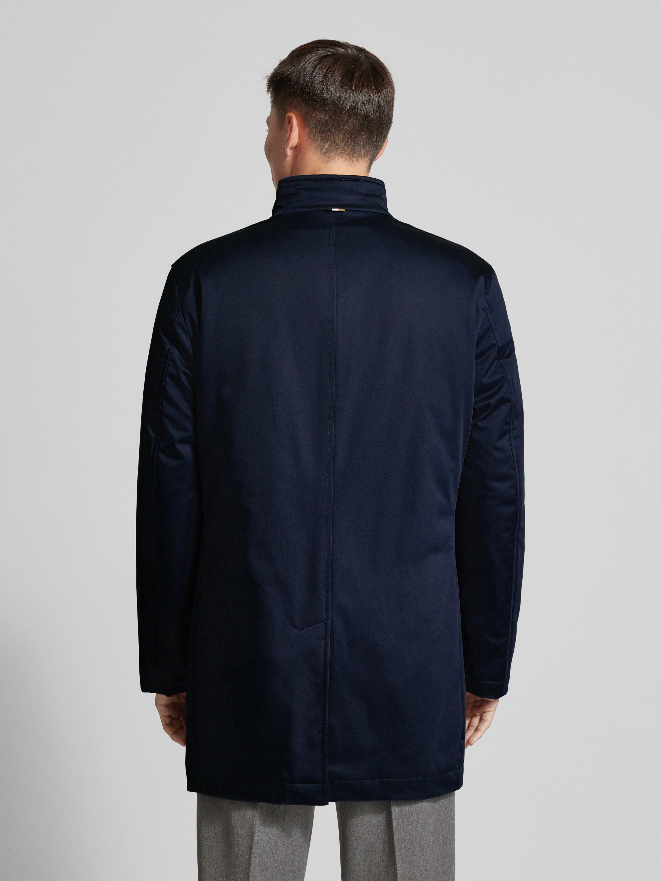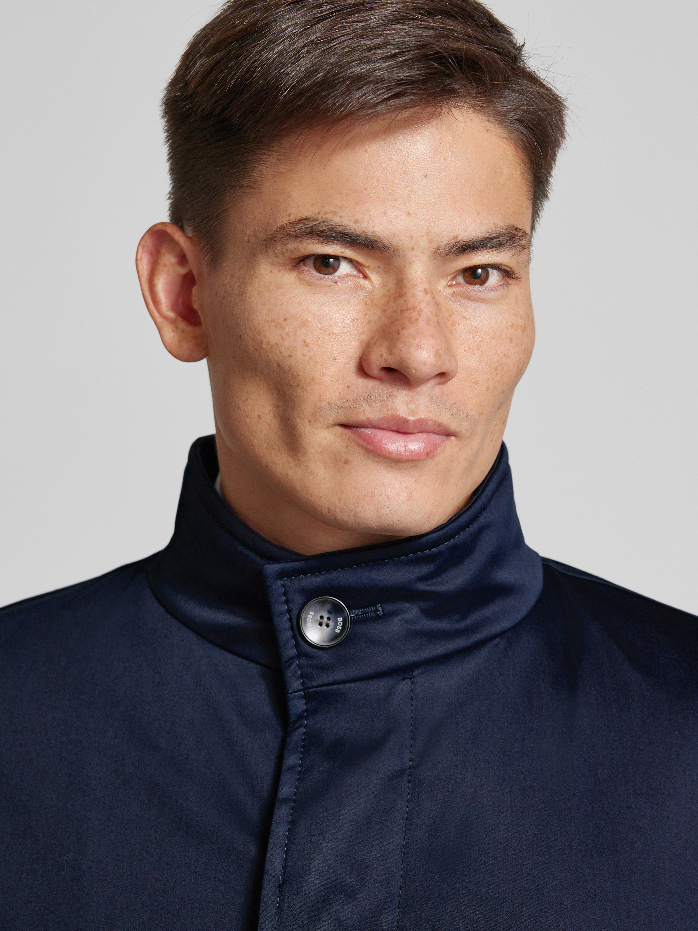 Die Herrenjacke von BOSS BLACK, Modell Jared, kombiniert einen Baumwoll-Mix mit Stretch-Anteil für angenehmen Tragekomfort und Bewegungsfreiheit. Ein gerader Schnitt sorgt für eine klassische Silhouette, während der Stehkragen und die seitlichen Taschen praktische Akzente im Alltag setzen.