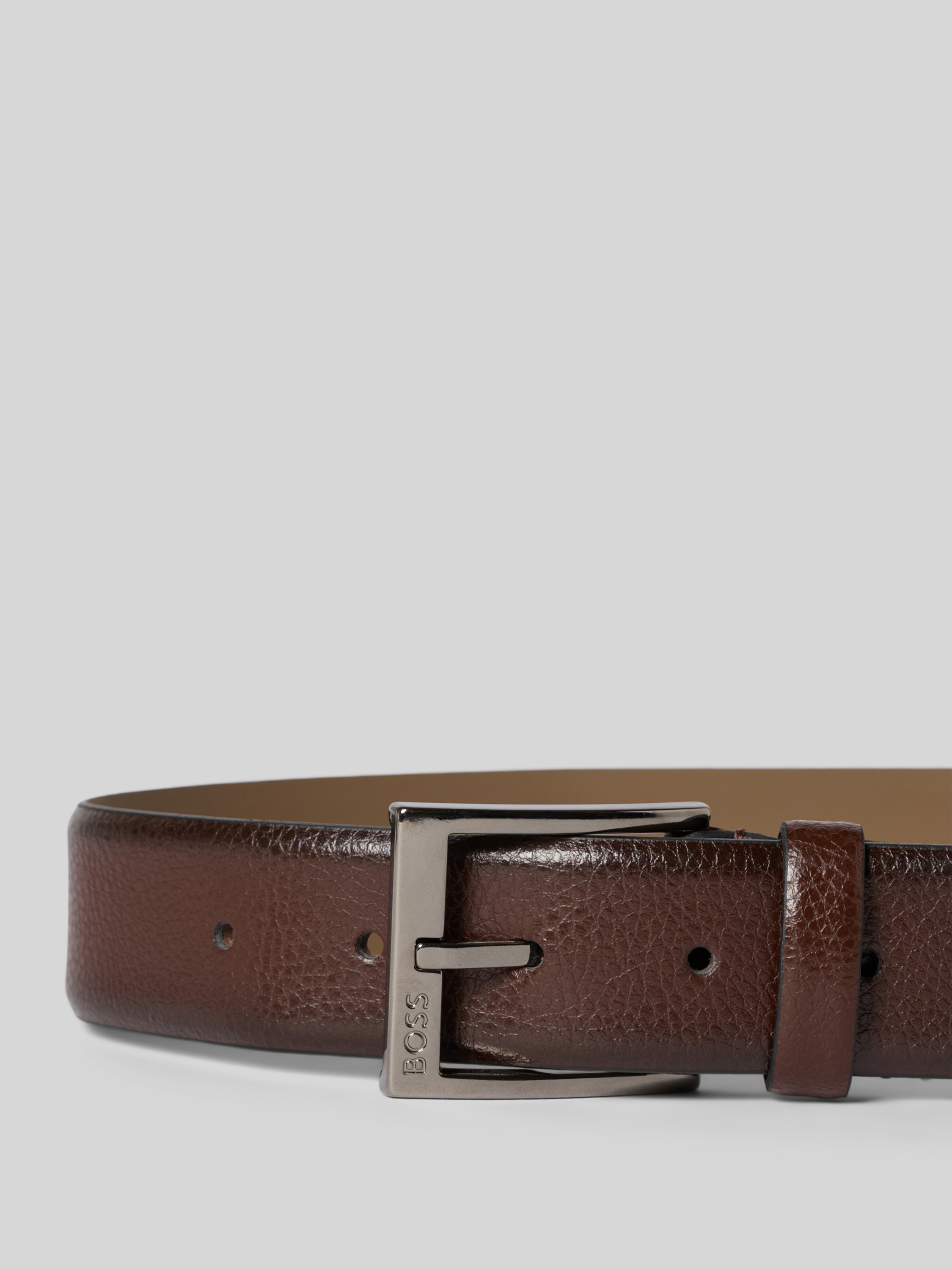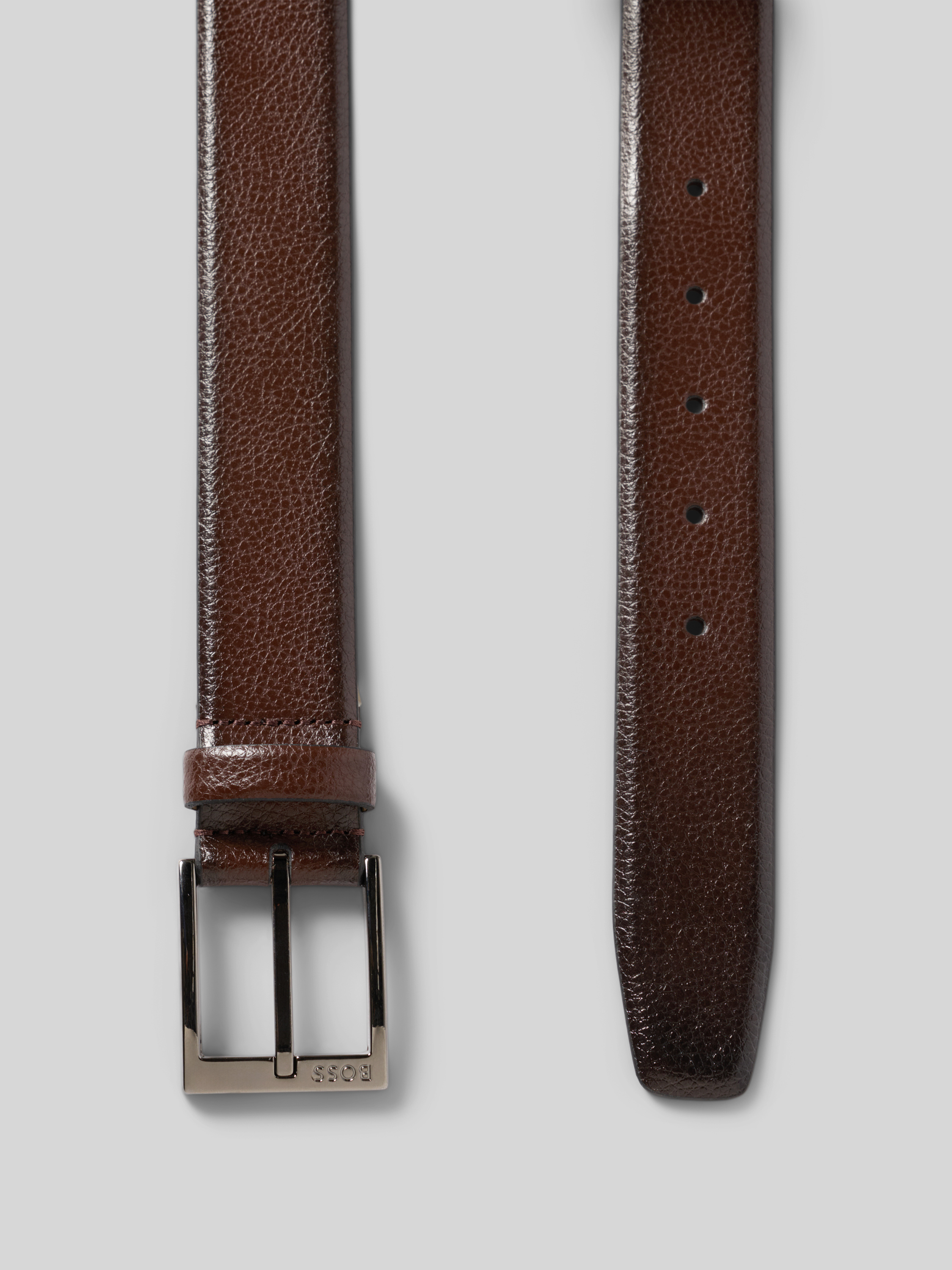 Der Herrengürtel von BOSS, Modell Elloy, besteht aus echtem Rindsleder und zeichnet sich durch eine fein genarbte Oberfläche aus. Der dezente Farbverlauf sorgt für einen vielseitigen Look, der sich unkompliziert kombinieren lässt. Mit seiner klassischen Dornschließe eignet er sich für unterschiedliche Anlässe.