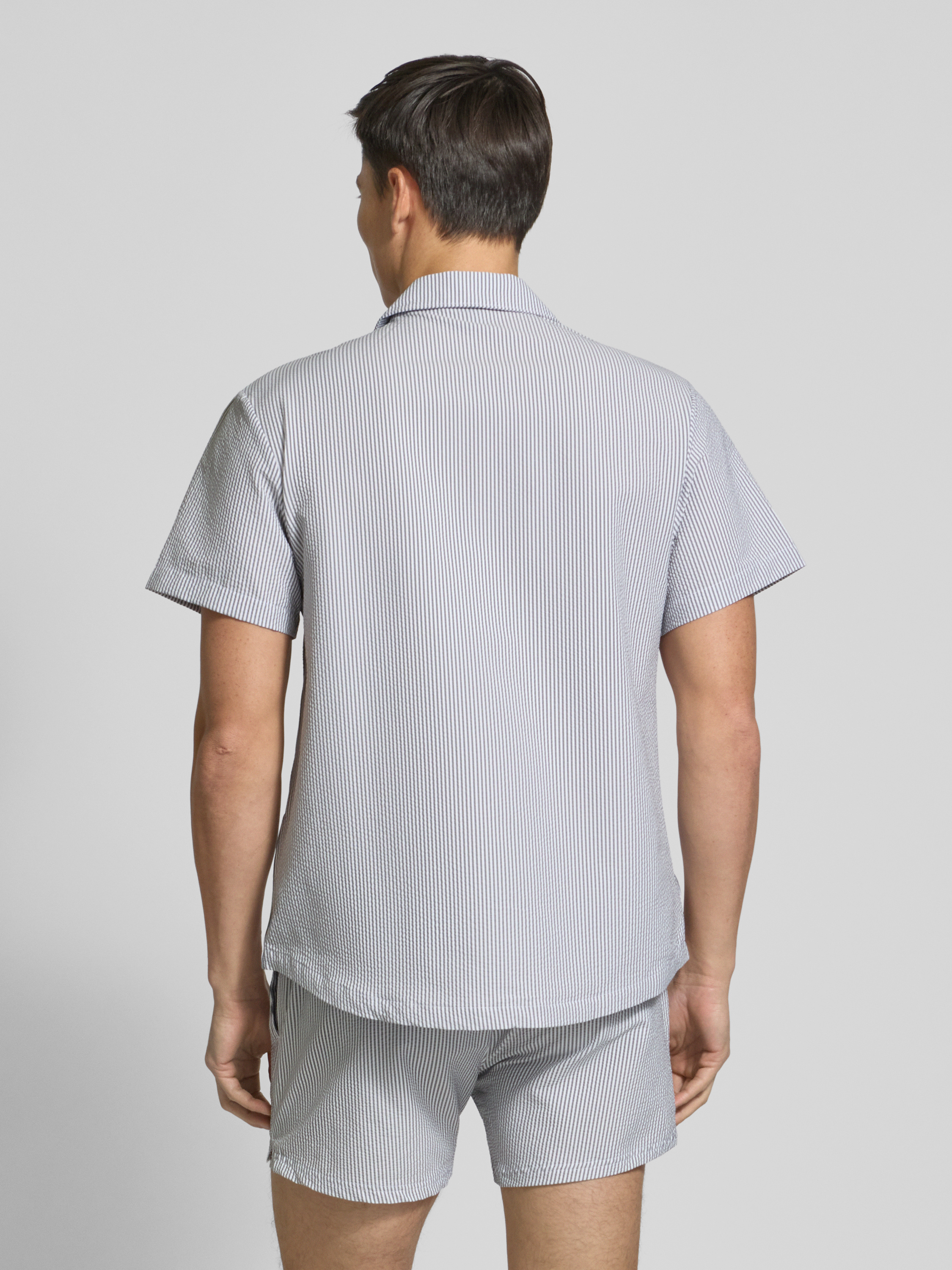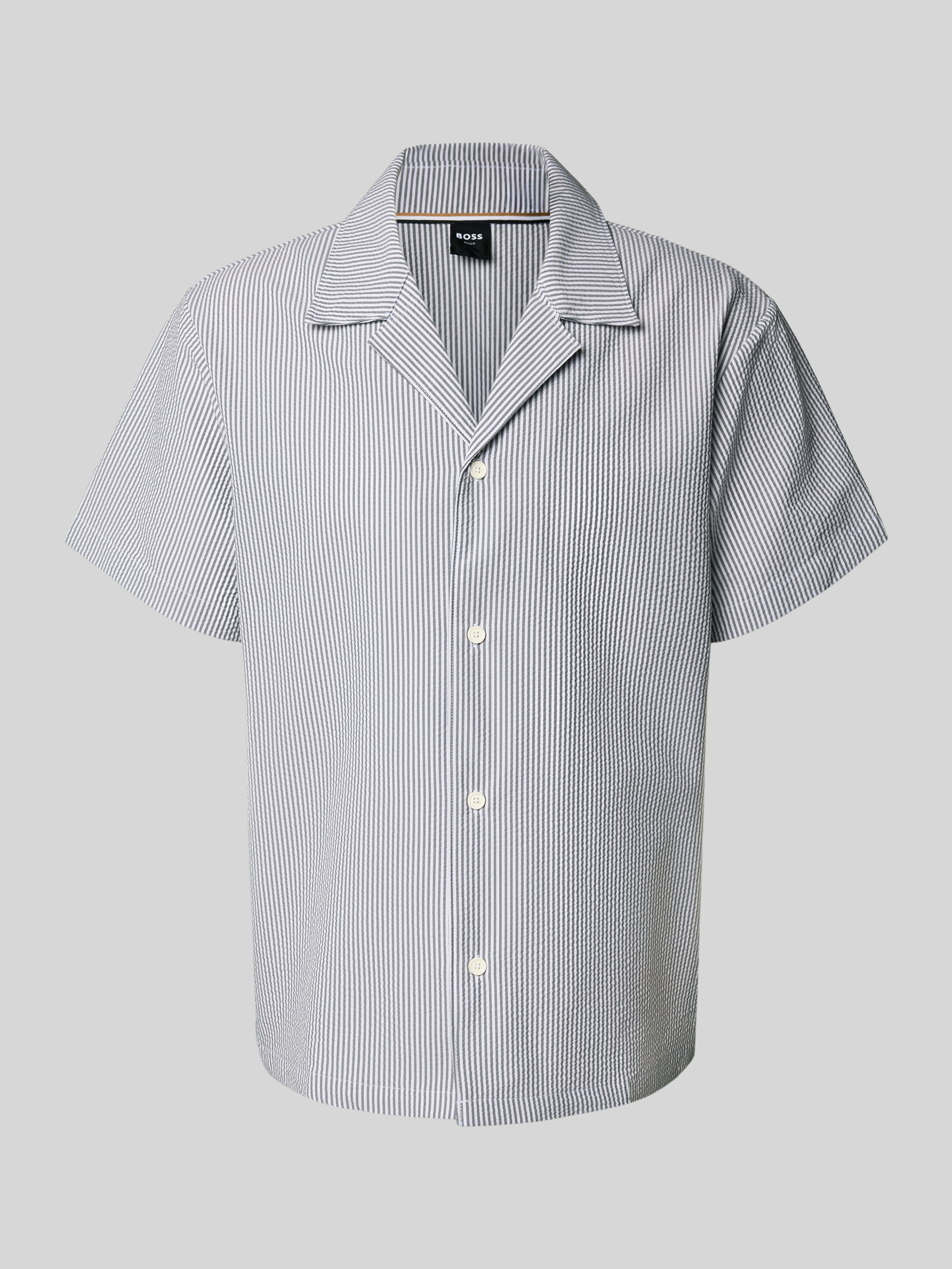 Das Herren Freizeithemd von BOSS, Modell 'Velvetfish', kombiniert lässigen Stil mit angenehmem Tragekomfort. Der Regular Fit und der markante Resortkragen machen es zu einer vielseitigen Wahl für entspannte Anlässe. Die halblangen Ärmel bieten Bewegungsfreiheit und sind ideal für warme Tage.